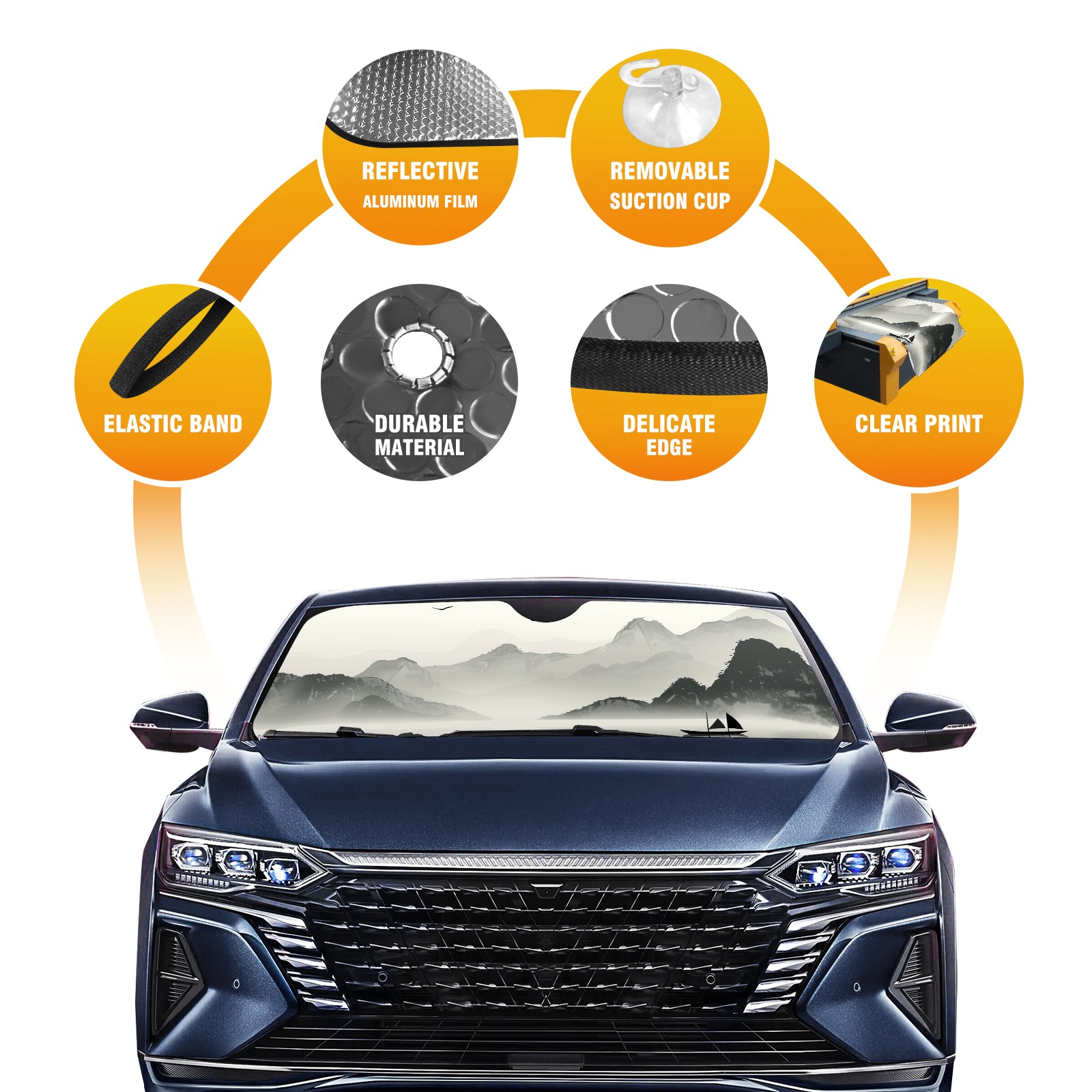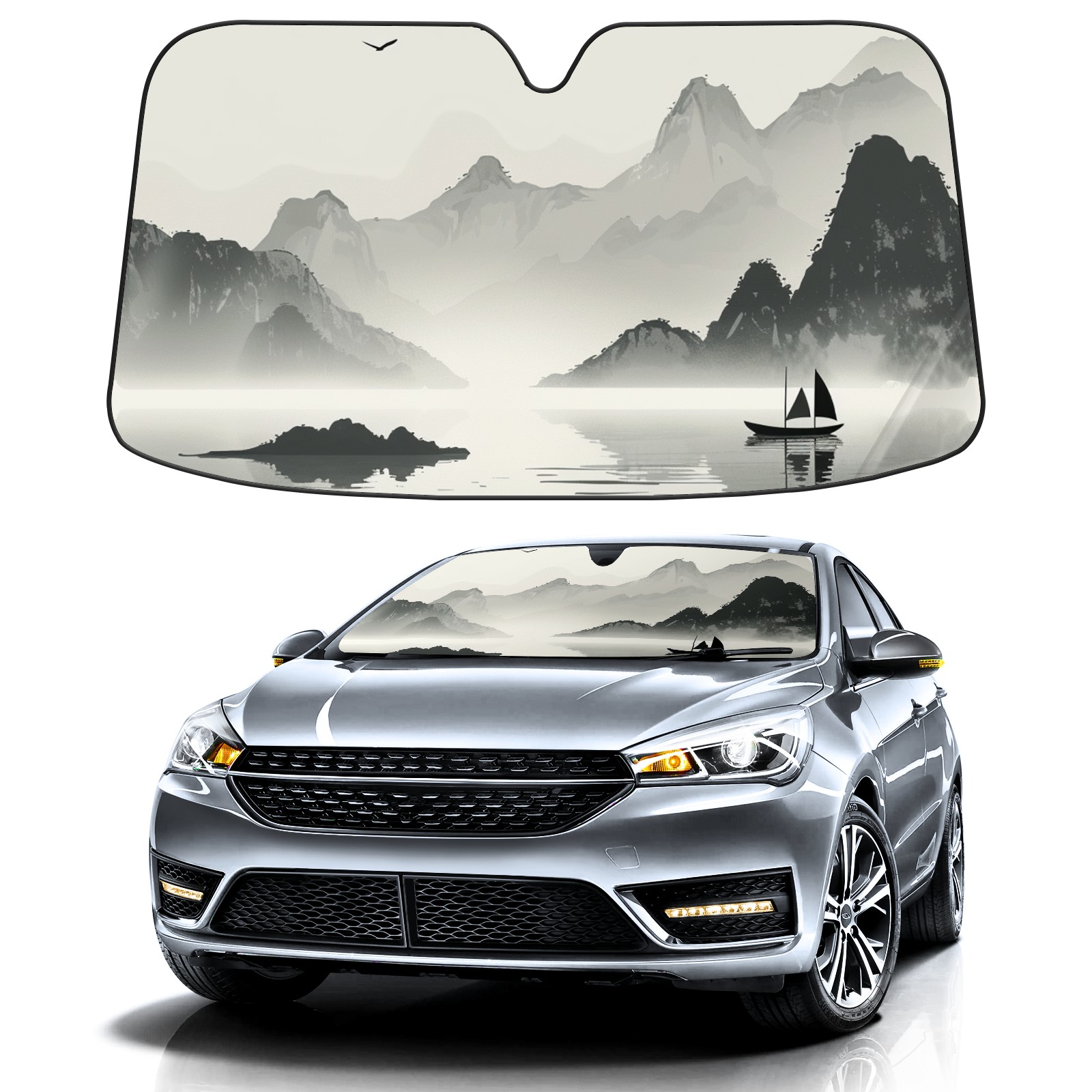 Car Windshield Sun Shade For Front Window Chinese Style Painting (1) Foldable Vehicle Windshield Car Sun Visor Covers Automotive Window Protector Car Camping Privacy Sun Blocker