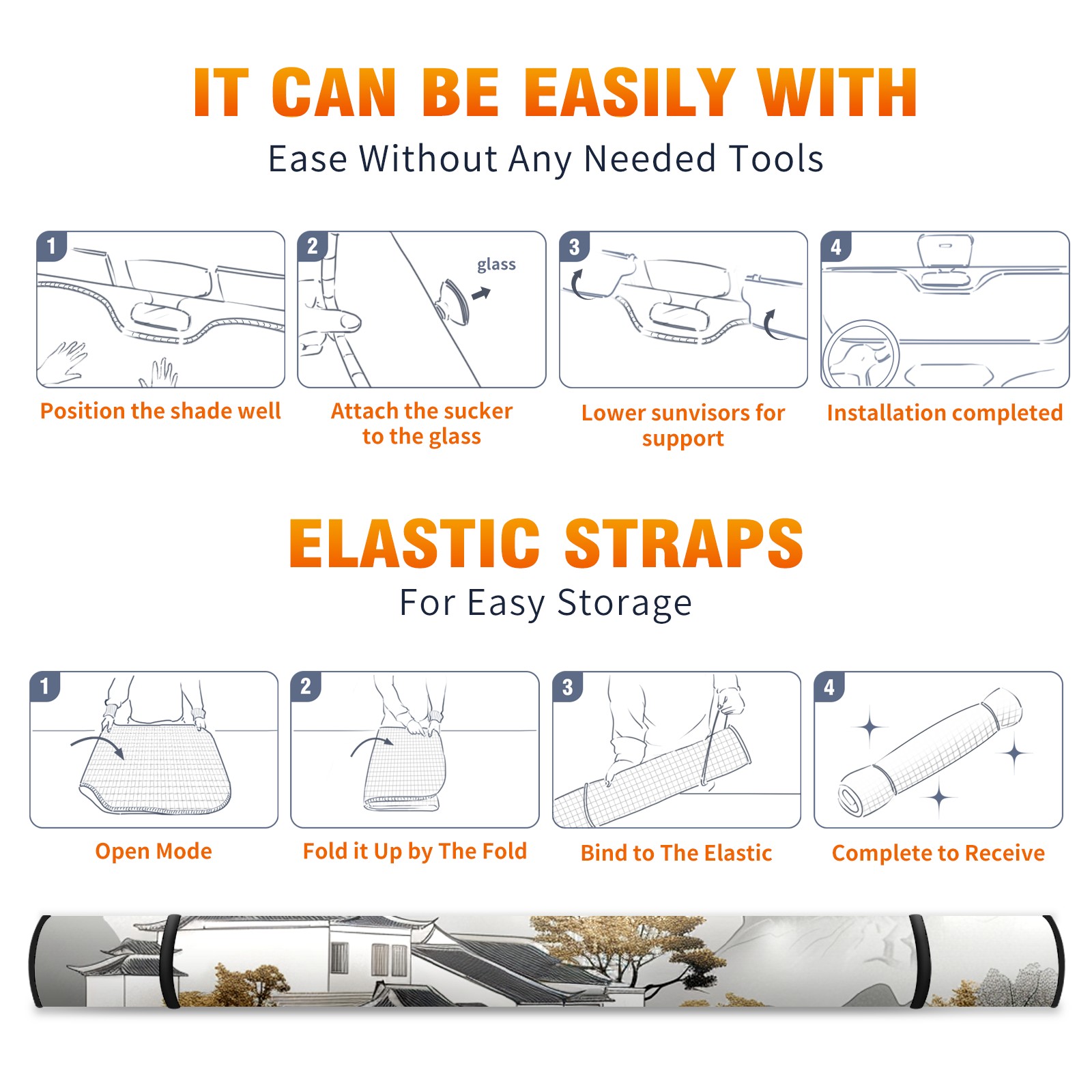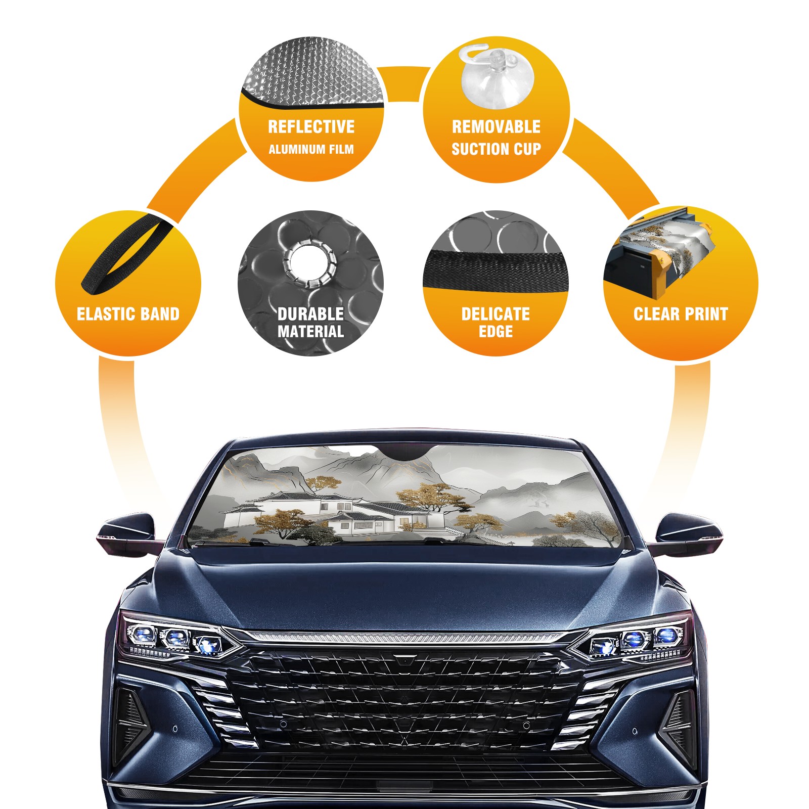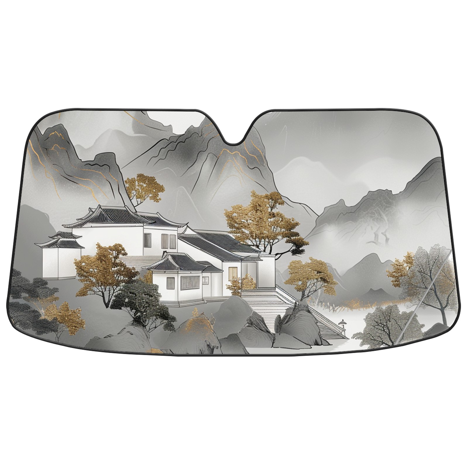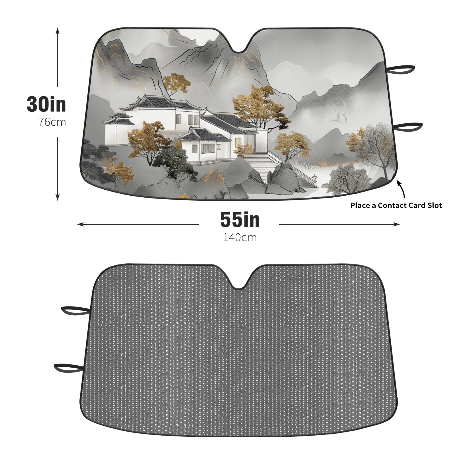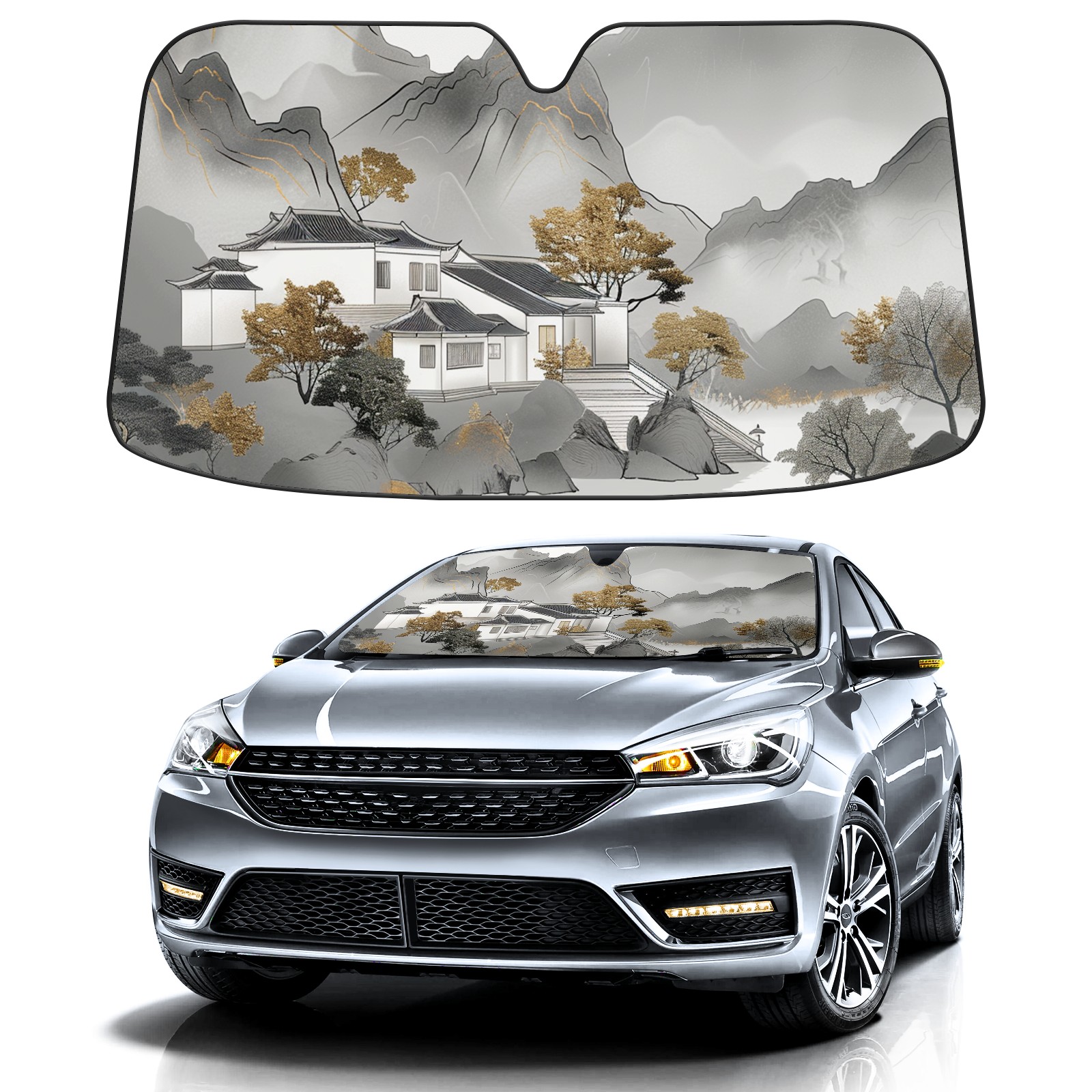 Car Windshield Sun Shade For Front Window Chinese Landscape Painting (2) Foldable Vehicle Windshield Car Sun Visor Covers Automotive Window Protector Car Camping Privacy Sun Blocker