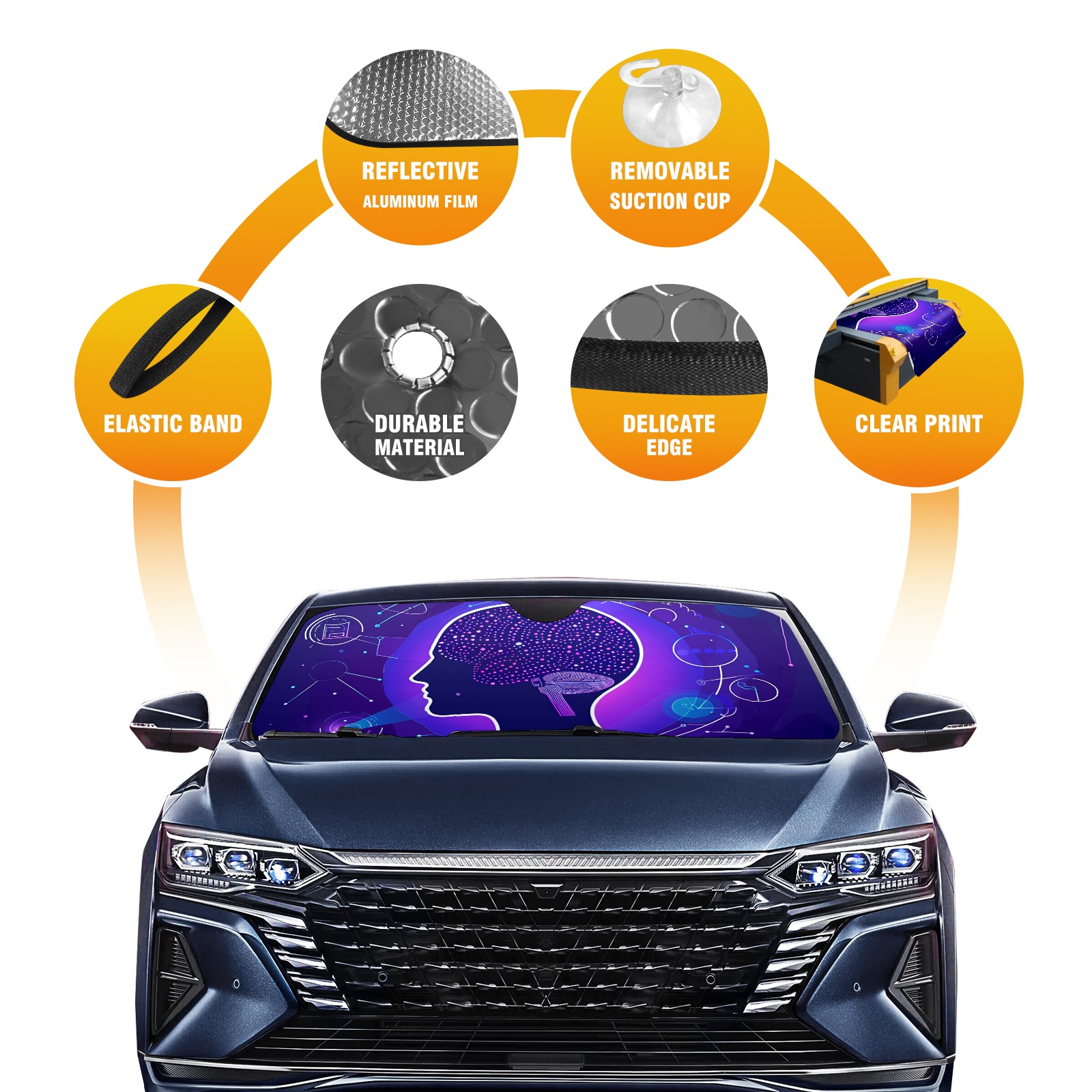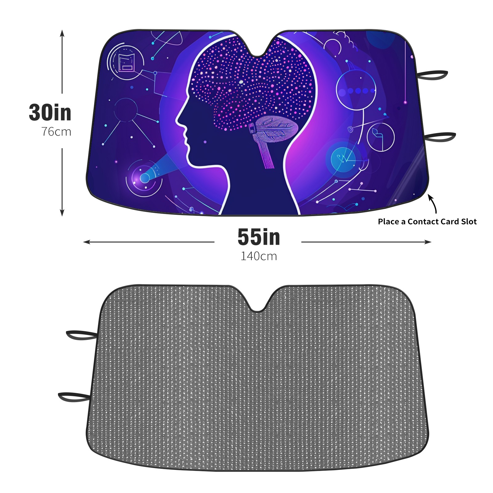 Diameter /Size 63"L x 33.5"W Made from excellent materials which makes it sturdy and protects the car from the sun. Easy to use and pack. Makes the interior of the car cooler.You can easily stash the sunshade in the storage bag or store long term.It open and closes easy. Also the leather storage bag is durable and easy to put the umbrella back into.This windshield sunshade provides complete coverage and keeps your car interior cool under direct sun. It is easy to open and position under the windshield and around the rear-view mirror. Makes Your Car Easy To Identify, Perfect For Finding Your Car In Crowded Parking Lots And Garages.Great Choice: It Is A Great Gift For Dad, Boyfriend, Brother, Brother And Uncle, Friends, Classmates, Family And So On. Notice: Due To Difference Computer Monitors, The Color Maybe Slightly Different From Picture. As Different Measurement Methods, Measurement Data Will Float Within 2%.I Hope You Understand. If You Have Any Question About The Item Please Do Not Hesitate To Contact Us Immediately And We Will Give You A Satisfactory Reply Within 24 Hours.