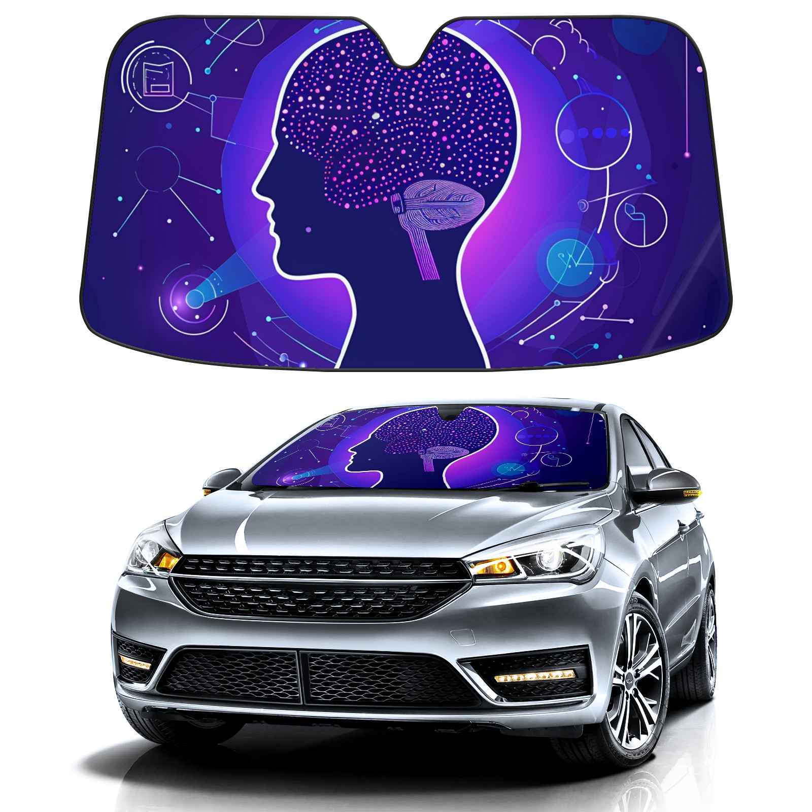 • Diameter /Size 63"L x 33.5"W Made from excellent materials which makes it sturdy and protects the car from the sun. Easy to use and pack. Makes the interior of the car cooler.You can easily stash the sunshade in the storage bag or store long term.It open and closes easy. Also the leather storage bag is durable and easy to put the umbrella back into.This windshield sunshade provides complete coverage and keeps your car interior cool under direct sun. It is easy to open and position under the windshield and around the rear-view mirror. Makes Your Car Easy To Identify, Perfect For Finding Your Car In Crowded Parking Lots And Garages.Great Choice: It Is A Great Gift For Dad, Boyfriend, Brother, Brother And Uncle, Friends, Classmates, Family And So On. Notice: Due To Difference Computer Monitors, The Color Maybe Slightly Different From Picture. As Different Measurement Methods, Measurement Data Will Float Within 2%.I Hope You Understand. If You Have Any Question About The Item Please Do Not Hesitate To Contact Us Immediately And We Will Give You A Satisfactory Reply Within 24 Hours.