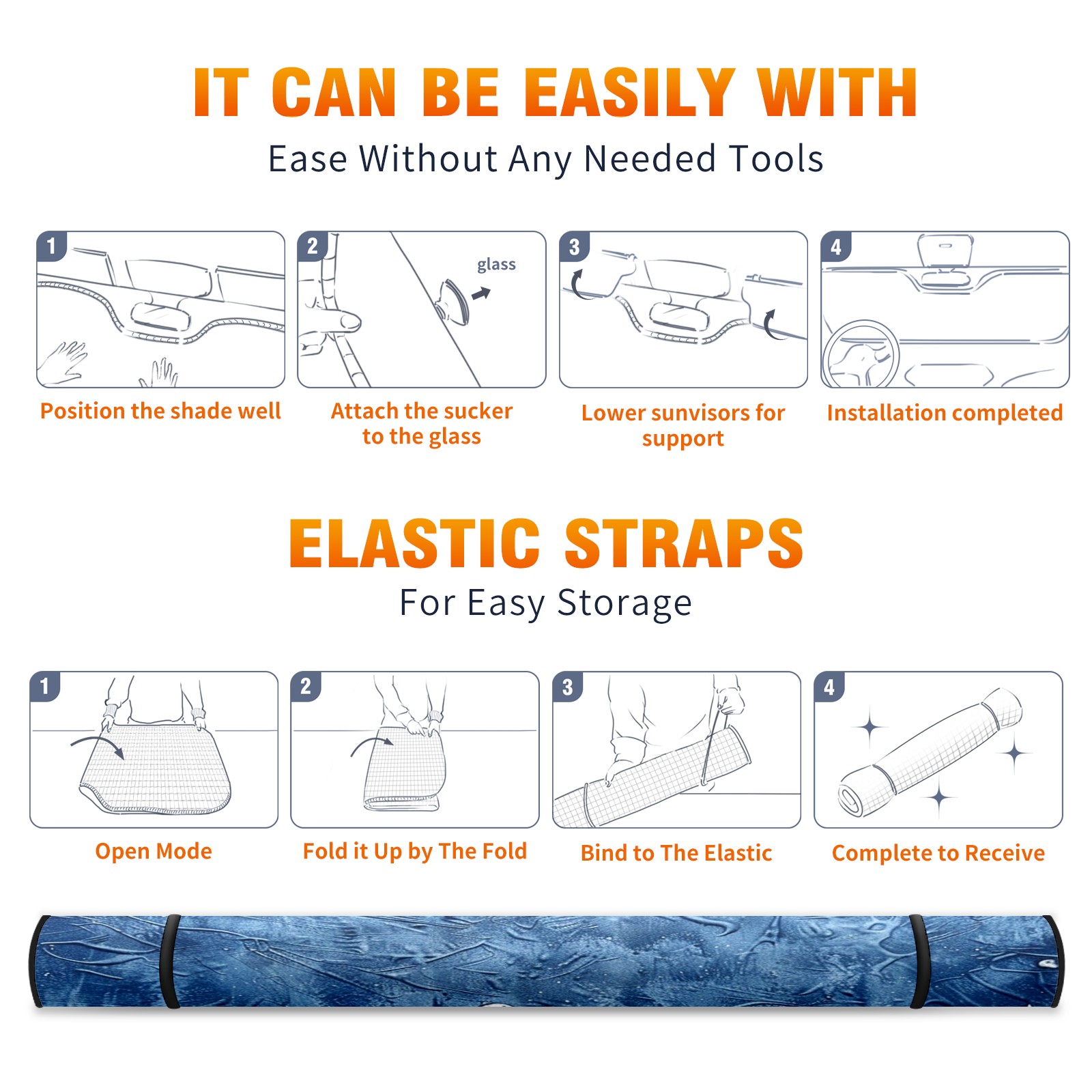 • Diameter /Size 63"L x 33.5"W Made from excellent materials which makes it sturdy and protects the car from the sun. Easy to use and pack. Makes the interior of the car cooler.You can easily stash the sunshade in the storage bag or store long term.It open and closes easy. Also the leather storage bag is durable and easy to put the umbrella back into.This windshield sunshade provides complete coverage and keeps your car interior cool under direct sun. It is easy to open and position under the windshield and around the rear-view mirror. Makes Your Car Easy To Identify, Perfect For Finding Your Car In Crowded Parking Lots And Garages.Great Choice: It Is A Great Gift For Dad, Boyfriend, Brother, Brother And Uncle, Friends, Classmates, Family And So On. Notice: Due To Difference Computer Monitors, The Color Maybe Slightly Different From Picture. As Different Measurement Methods, Measurement Data Will Float Within 2%.I Hope You Understand. If You Have Any Question About The Item Please Do Not Hesitate To Contact Us Immediately And We Will Give You A Satisfactory Reply Within 24 Hours.
