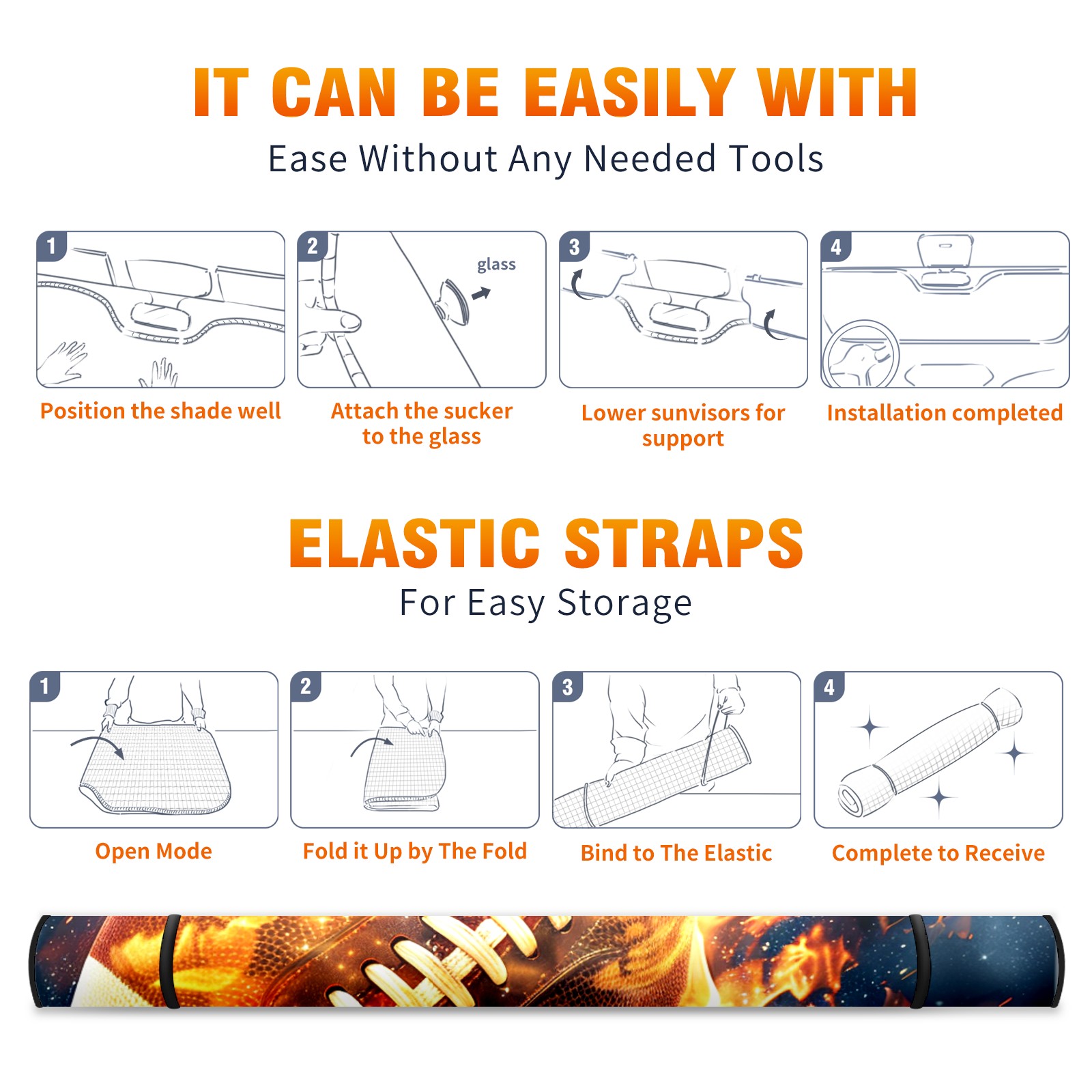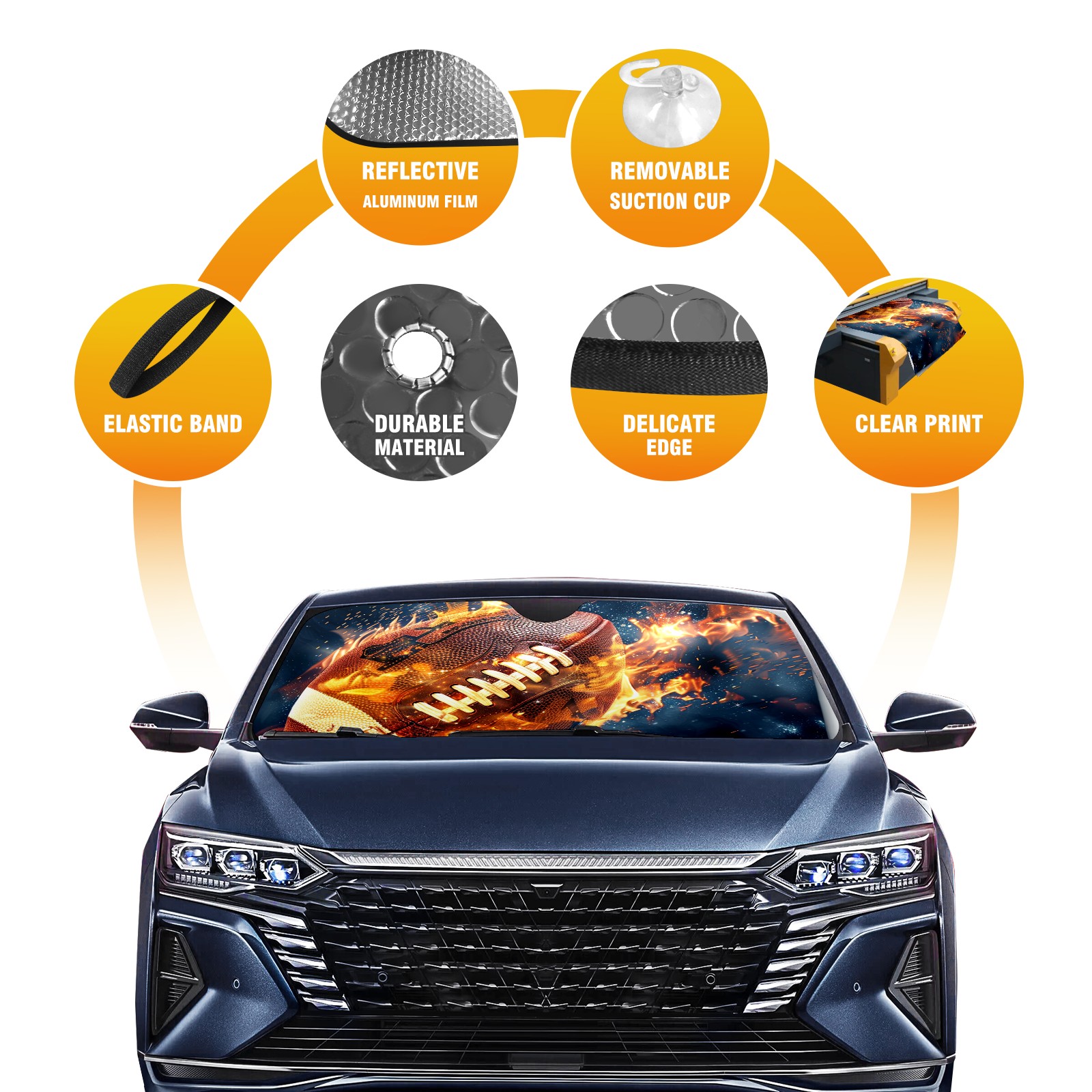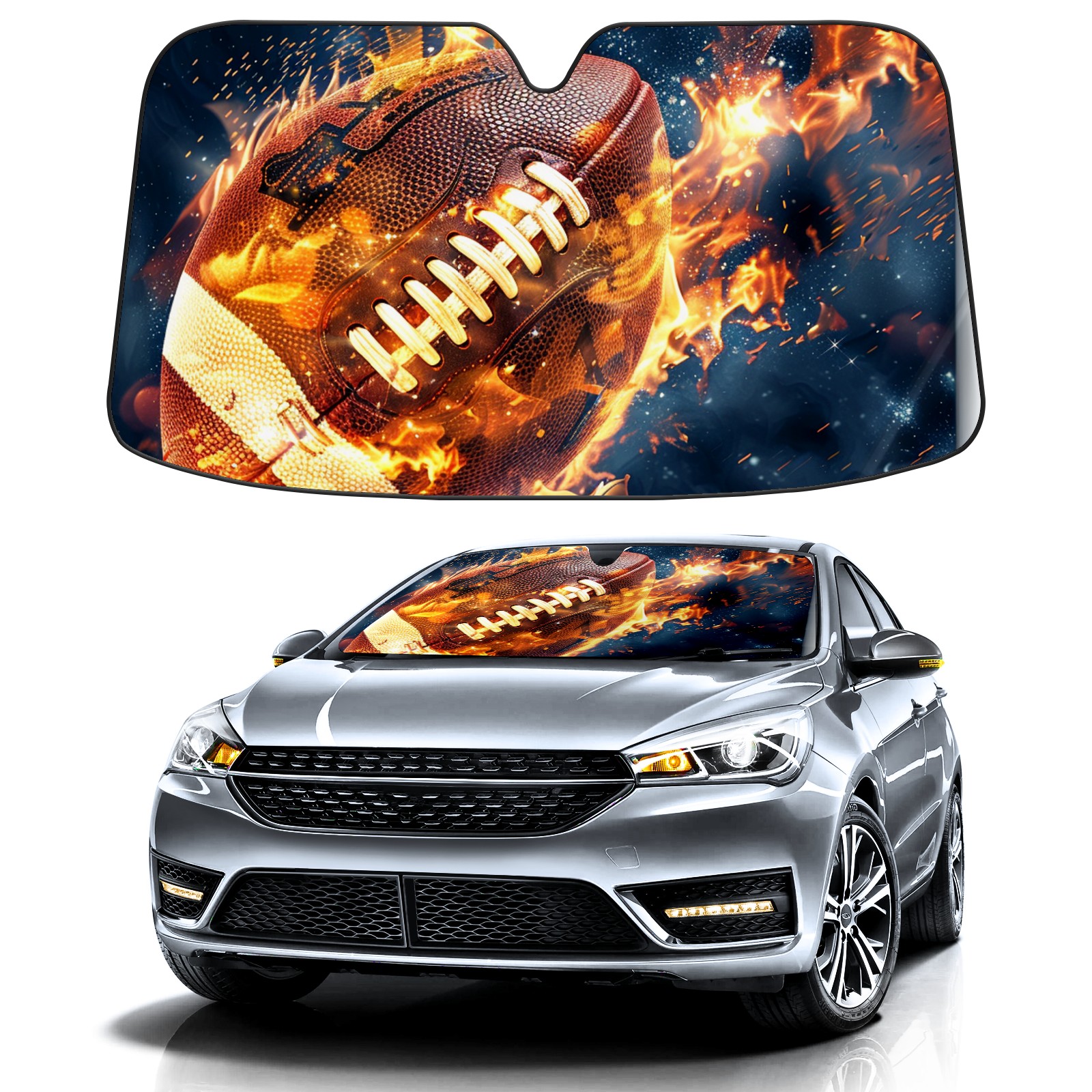 Car Windshield Sun Shade For Front Window American Football In Flames (2) Foldable Vehicle Windshield Car Sun Visor Covers Automotive Window Protector Car Camping Privacy Sun Blocker