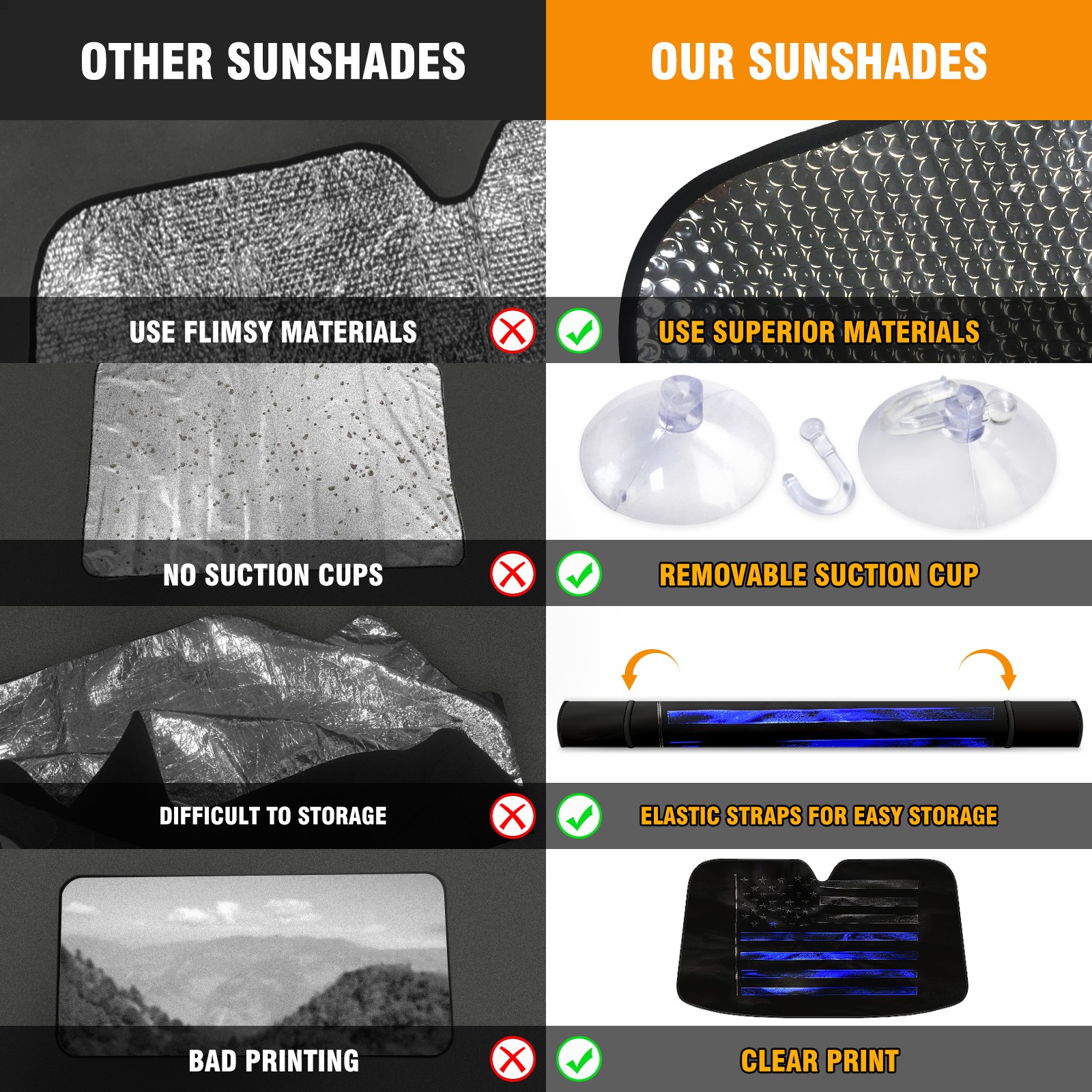 Car Windshield Sun Shade For Front Window American Flag (4) Foldable Vehicle Windshield Car Sun Visor Covers Automotive Window Protector Car Camping Privacy Sun Blocker