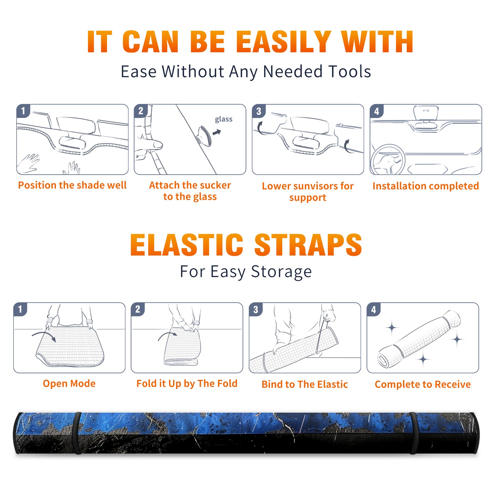 • Diameter /Size 63"L x 33.5"W Made from excellent materials which makes it sturdy and protects the car from the sun. Easy to use and pack. Makes the interior of the car cooler.You can easily stash the sunshade in the storage bag or store long term.It open and closes easy. Also the leather storage bag is durable and easy to put the umbrella back into.This windshield sunshade provides complete coverage and keeps your car interior cool under direct sun. It is easy to open and position under the windshield and around the rear-view mirror. Makes Your Car Easy To Identify, Perfect For Finding Your Car In Crowded Parking Lots And Garages.Great Choice: It Is A Great Gift For Dad, Boyfriend, Brother, Brother And Uncle, Friends, Classmates, Family And So On. Notice: Due To Difference Computer Monitors, The Color Maybe Slightly Different From Picture. As Different Measurement Methods, Measurement Data Will Float Within 2%.I Hope You Understand. If You Have Any Question About The Item Please Do Not Hesitate To Contact Us Immediately And We Will Give You A Satisfactory Reply Within 24 Hours.