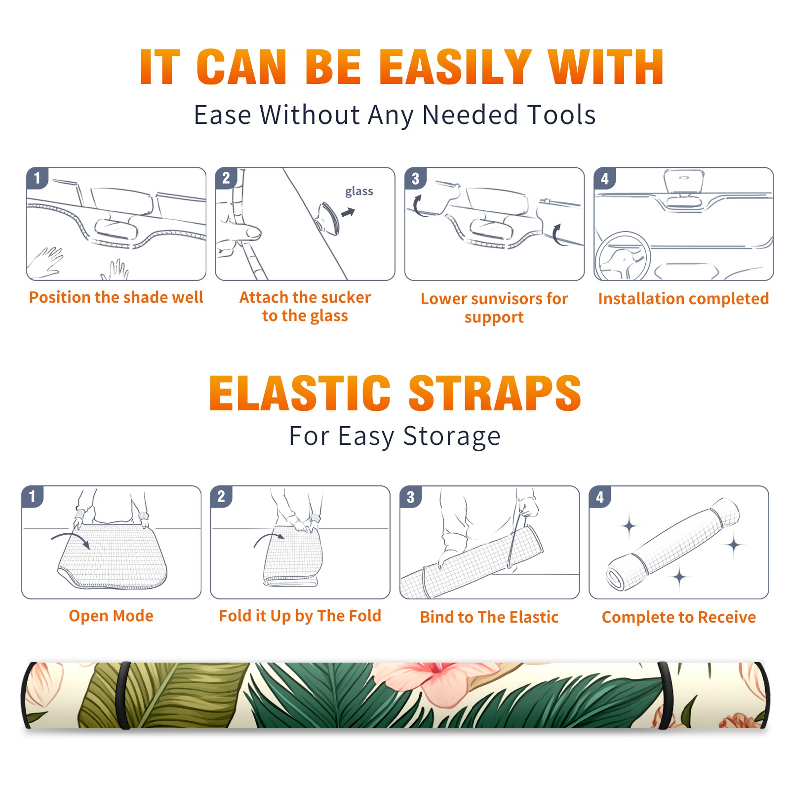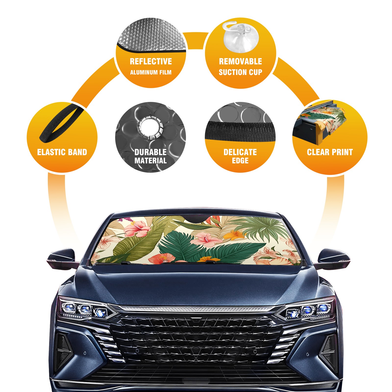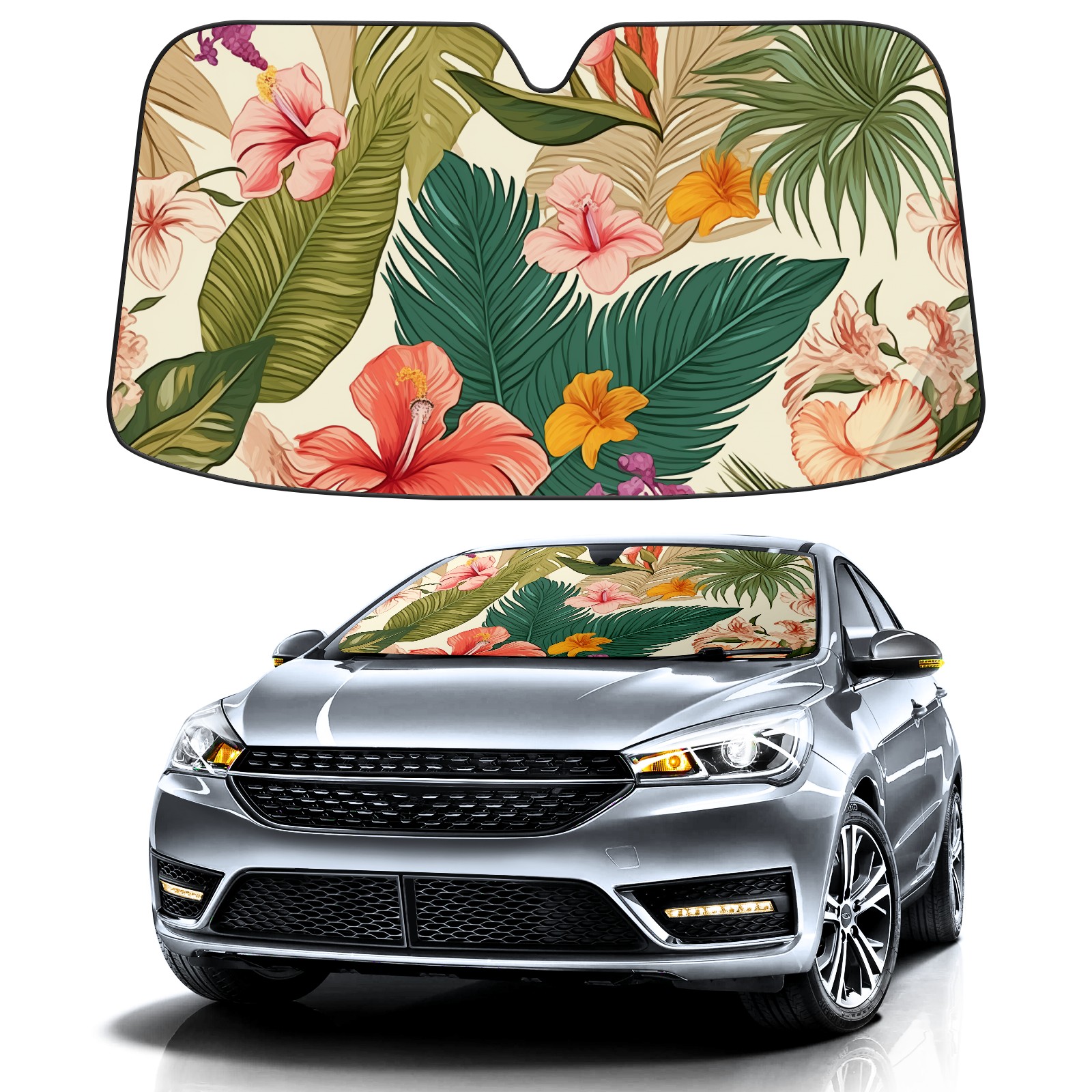 Car Windshield Sun Shade For Front Window Vibrant Flowers And Birds (5) Foldable Vehicle Windshield Car Sun Visor Covers Automotive Window Protector Car Camping Privacy Sun Blocker