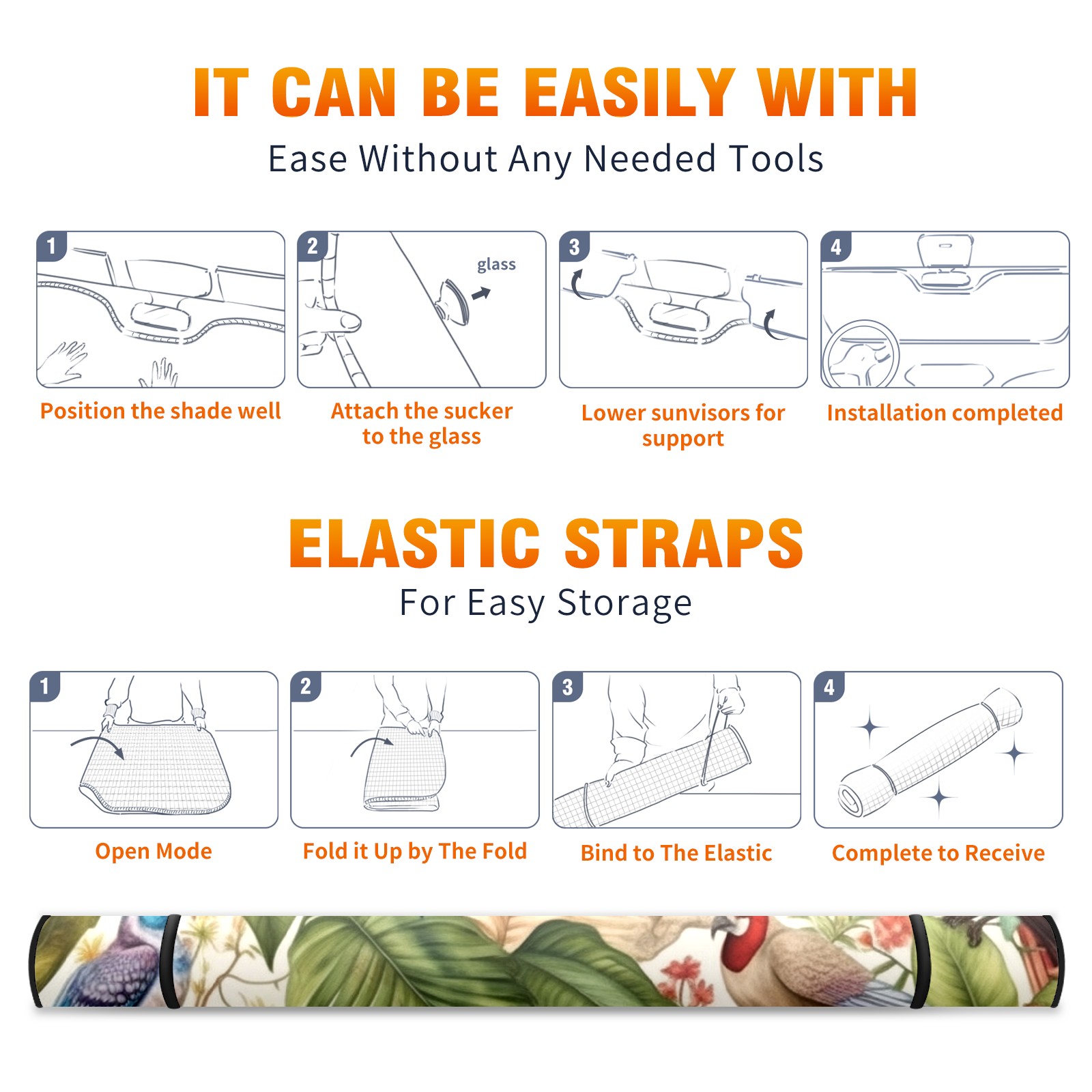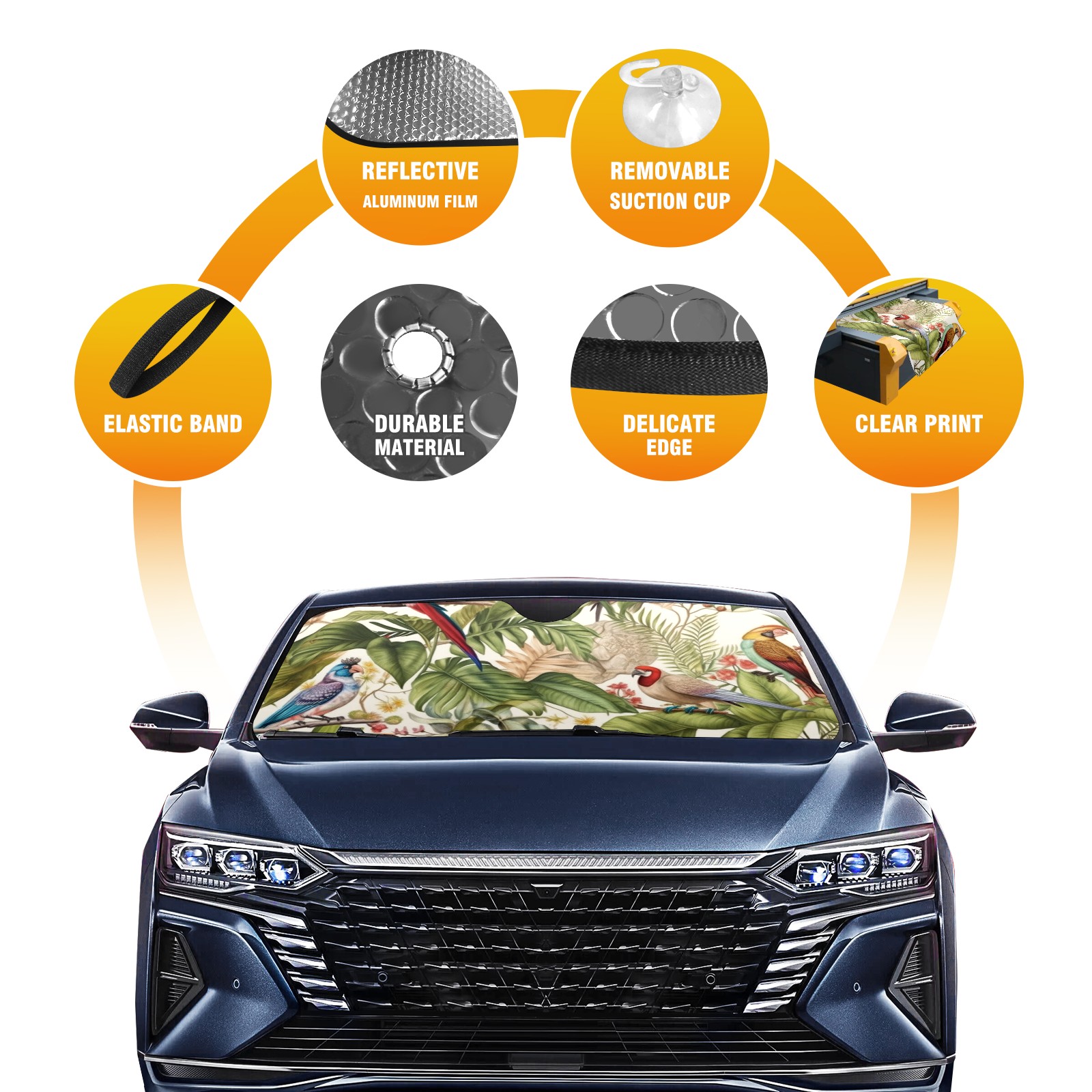Car Windshield Sun Shade For Front Window Vibrant Flowers And Birds (6) Foldable Vehicle Windshield Car Sun Visor Covers Automotive Window Protector Car Camping Privacy Sun Blocker