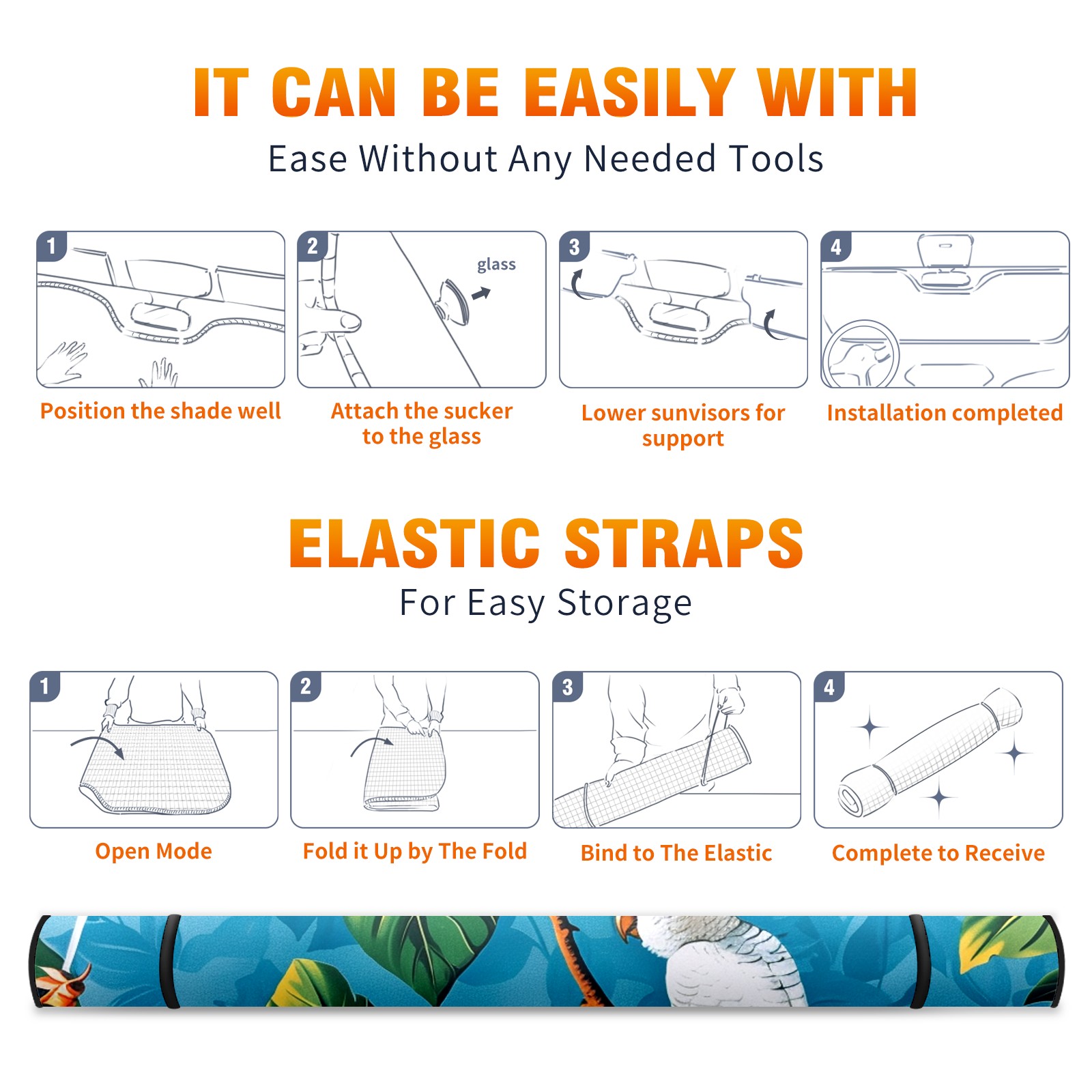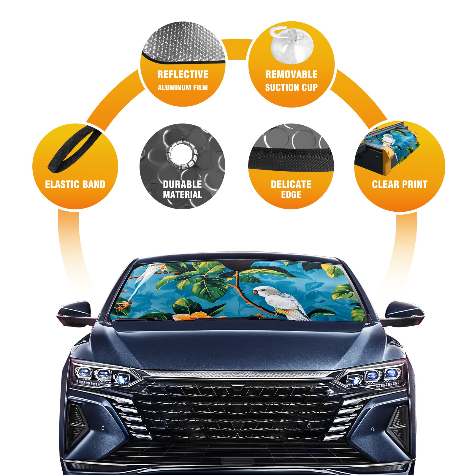 Car Windshield Sun Shade For Front Window Vibrant Flowers And Birds (1) Foldable Vehicle Windshield Car Sun Visor Covers Automotive Window Protector Car Camping Privacy Sun Blocker