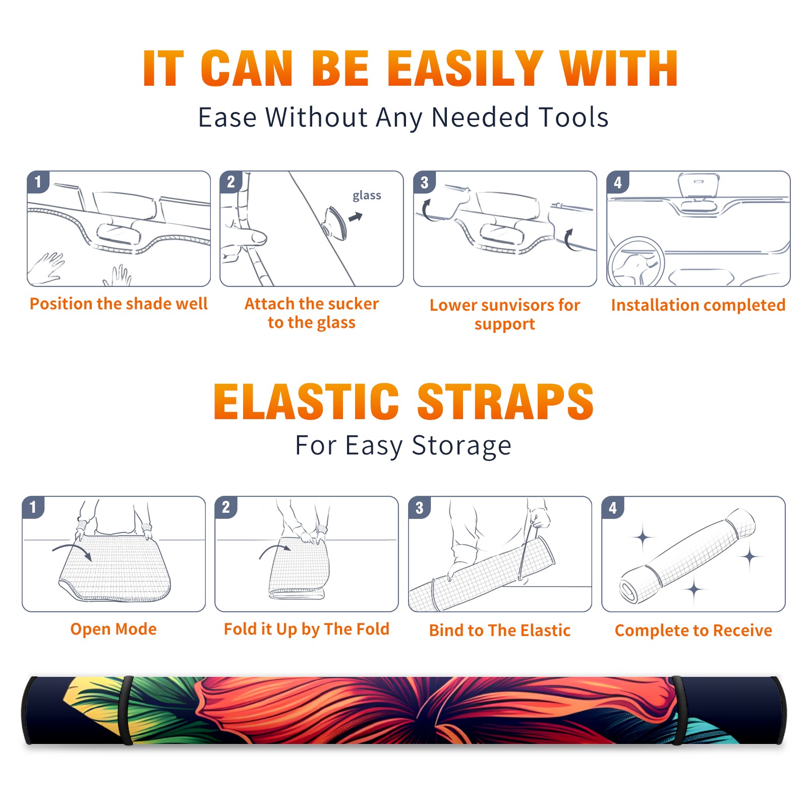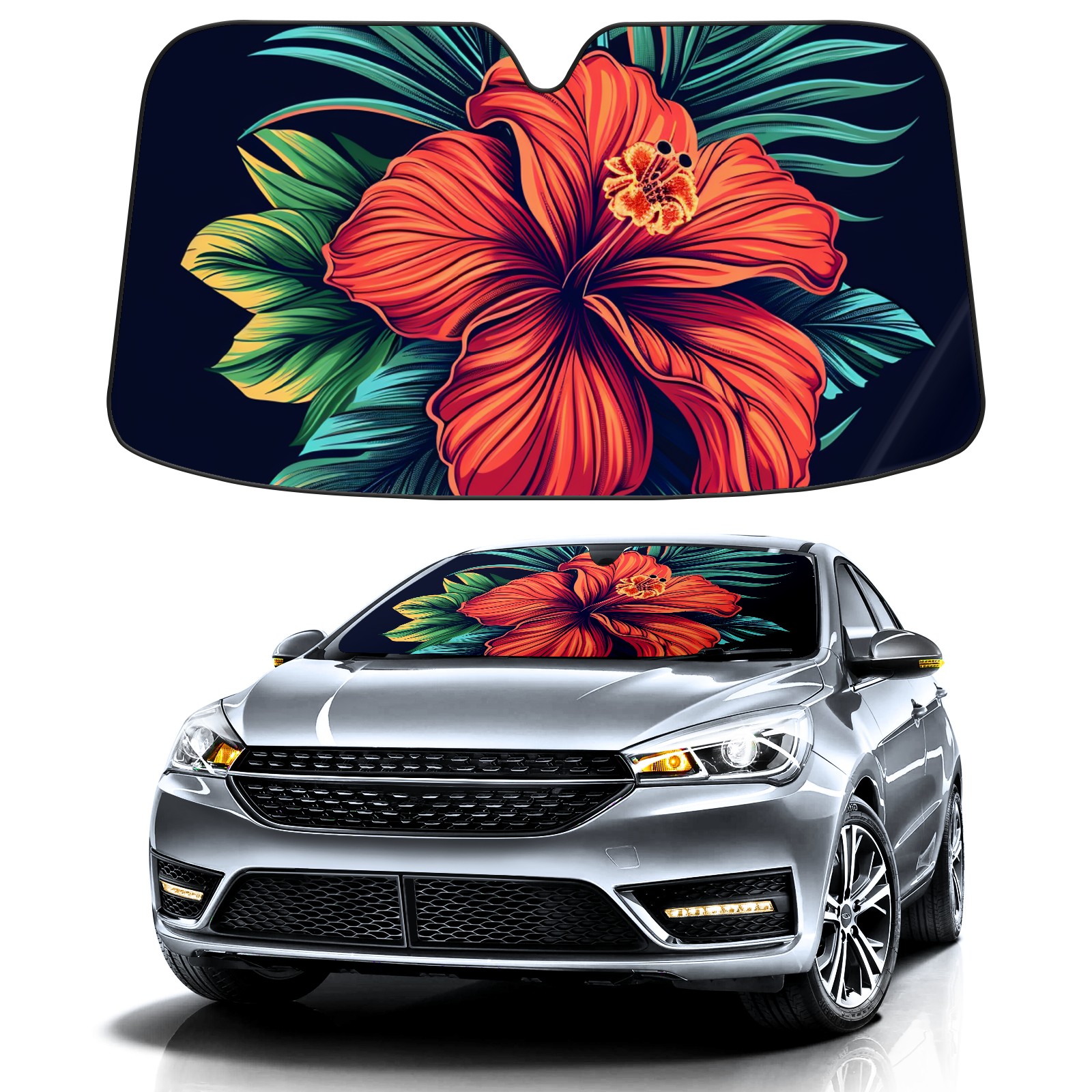 Car Windshield Sun Shade For Front Window Tropic FLOWERS (2) Foldable Vehicle Windshield Car Sun Visor Covers Automotive Window Protector Car Camping Privacy Sun Blocker