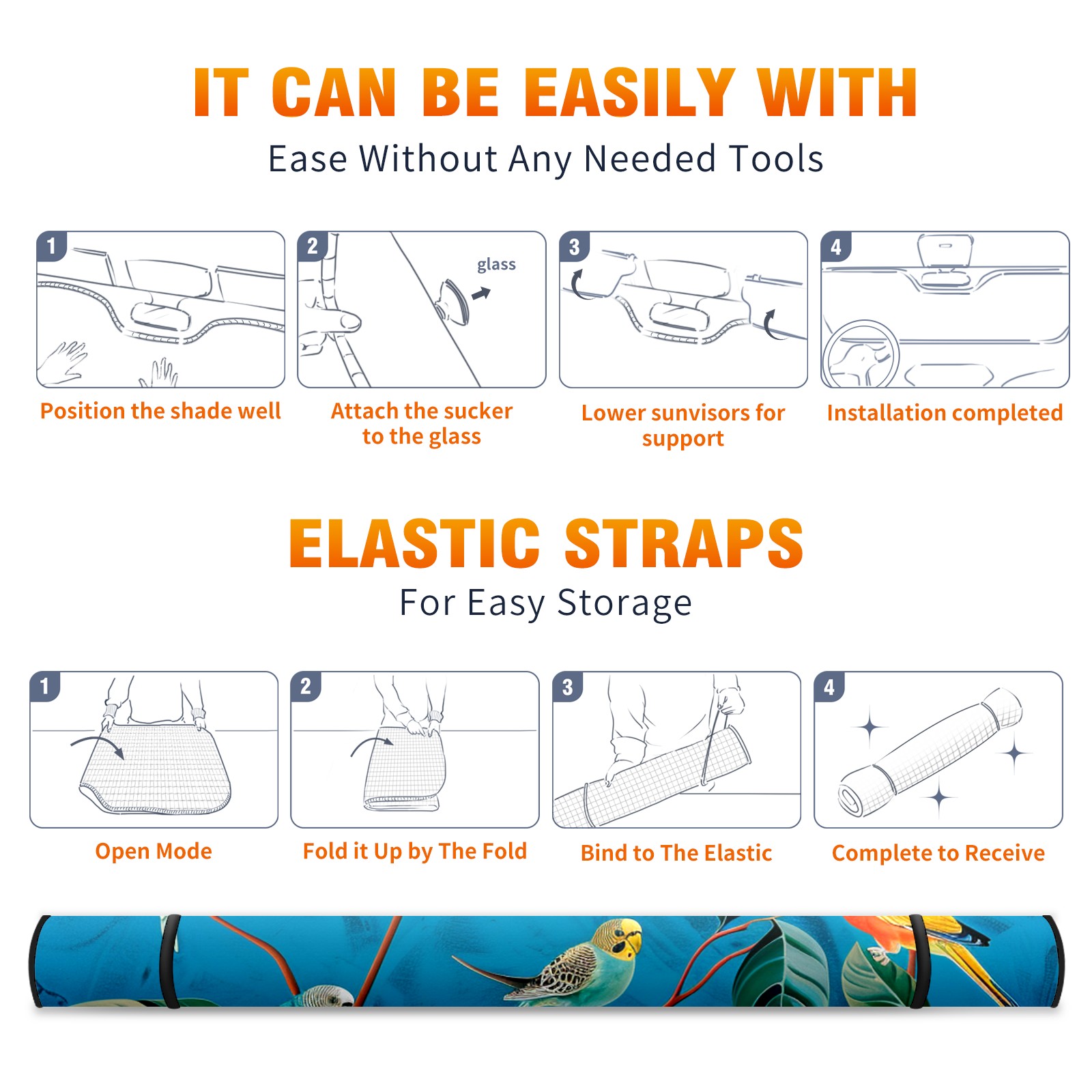 • Diameter /Size 63"L x 33.5"W Made from excellent materials which makes it sturdy and protects the car from the sun. Easy to use and pack. Makes the interior of the car cooler.You can easily stash the sunshade in the storage bag or store long term.It open and closes easy. Also the leather storage bag is durable and easy to put the umbrella back into.This windshield sunshade provides complete coverage and keeps your car interior cool under direct sun. It is easy to open and position under the windshield and around the rear-view mirror. Makes Your Car Easy To Identify, Perfect For Finding Your Car In Crowded Parking Lots And Garages.Great Choice: It Is A Great Gift For Dad, Boyfriend, Brother, Brother And Uncle, Friends, Classmates, Family And So On. Notice: Due To Difference Computer Monitors, The Color Maybe Slightly Different From Picture. As Different Measurement Methods, Measurement Data Will Float Within 2%.I Hope You Understand. If You Have Any Question About The Item Please Do Not Hesitate To Contact Us Immediately And We Will Give You A Satisfactory Reply Within 24 Hours.