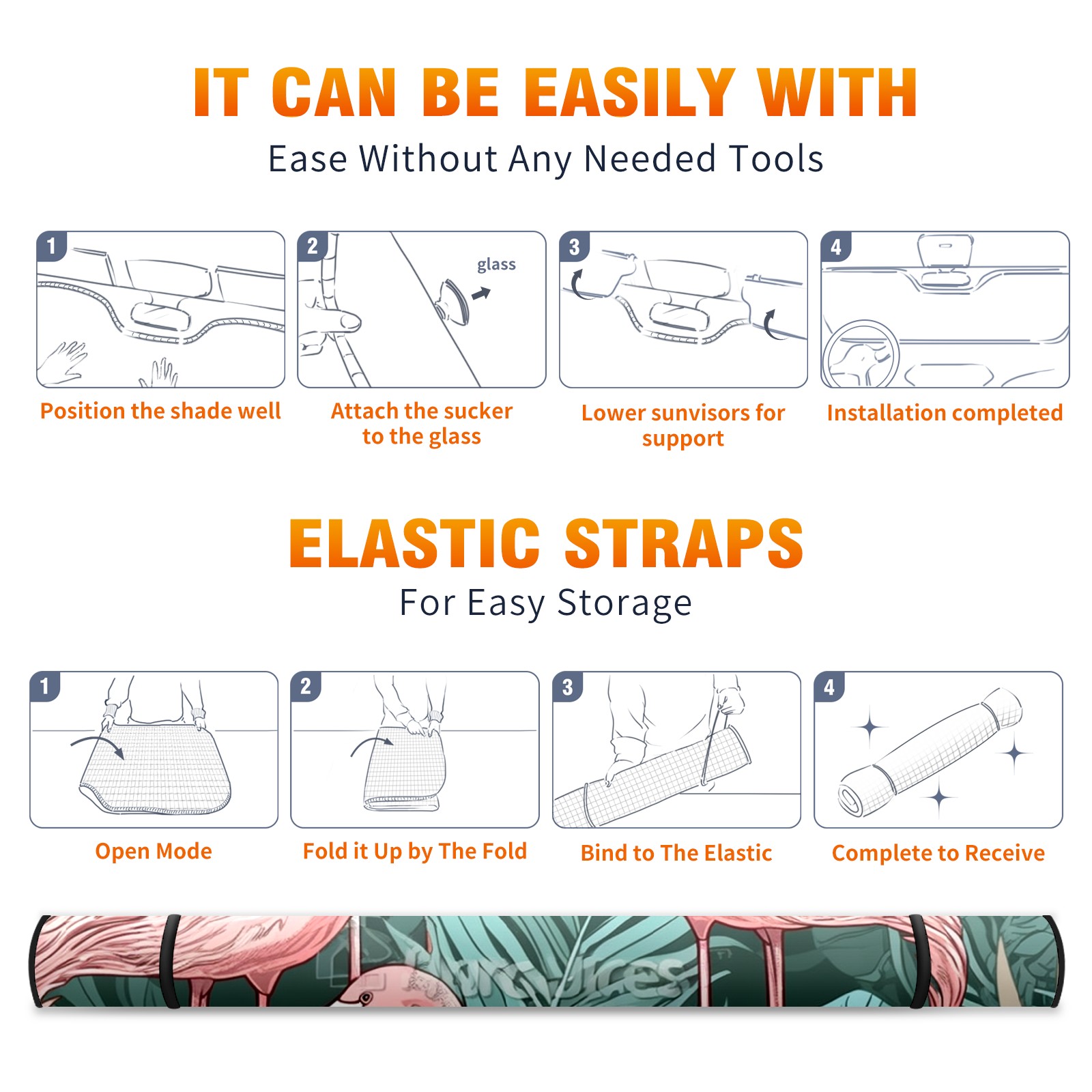 • Diameter /Size 63"L x 33.5"W Made from excellent materials which makes it sturdy and protects the car from the sun. Easy to use and pack. Makes the interior of the car cooler.You can easily stash the sunshade in the storage bag or store long term.It open and closes easy. Also the leather storage bag is durable and easy to put the umbrella back into.This windshield sunshade provides complete coverage and keeps your car interior cool under direct sun. It is easy to open and position under the windshield and around the rear-view mirror. Makes Your Car Easy To Identify, Perfect For Finding Your Car In Crowded Parking Lots And Garages.Great Choice: It Is A Great Gift For Dad, Boyfriend, Brother, Brother And Uncle, Friends, Classmates, Family And So On. Notice: Due To Difference Computer Monitors, The Color Maybe Slightly Different From Picture. As Different Measurement Methods, Measurement Data Will Float Within 2%.I Hope You Understand. If You Have Any Question About The Item Please Do Not Hesitate To Contact Us Immediately And We Will Give You A Satisfactory Reply Within 24 Hours.