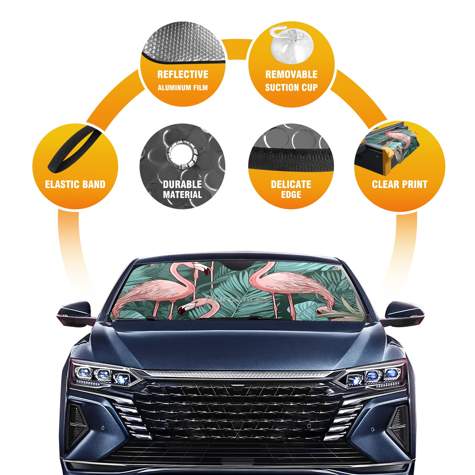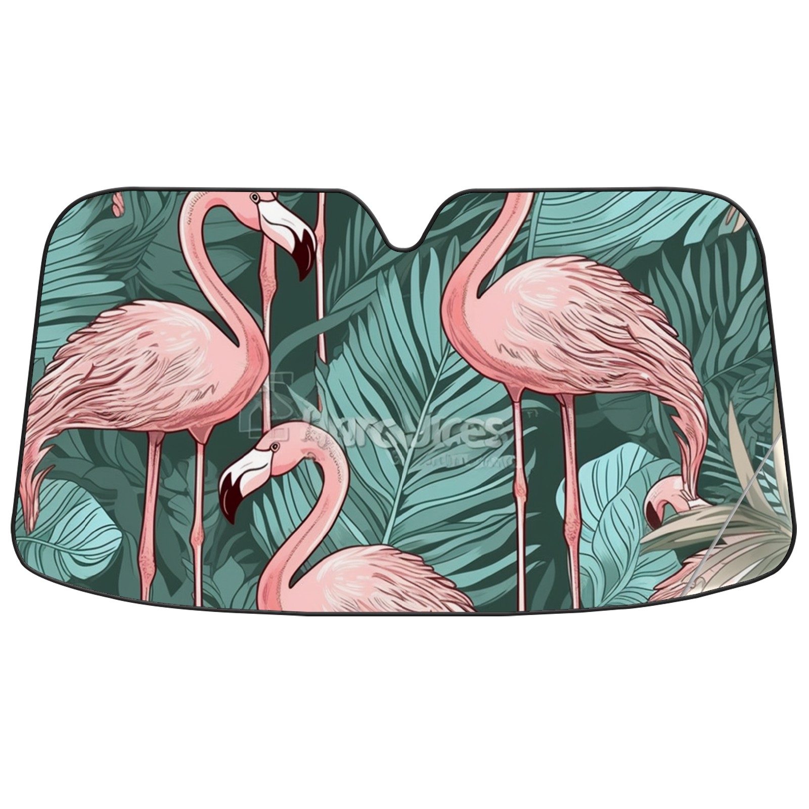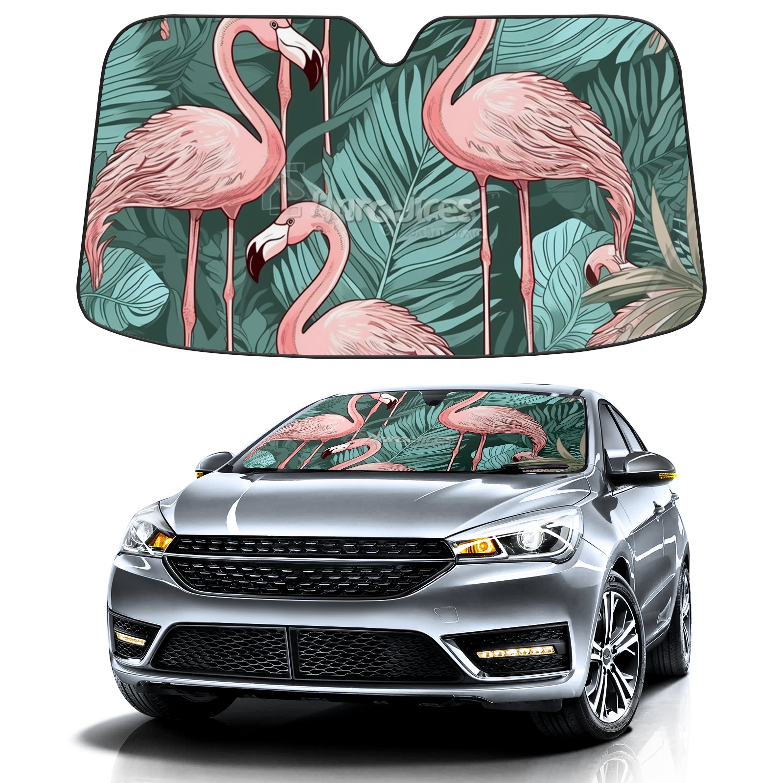 Car Windshield Sun Shade For Front Window Pink Flamingos Among Foldable Vehicle Windshield Car Sun Visor Covers Automotive Window Protector Car Camping Privacy Sun Blocker