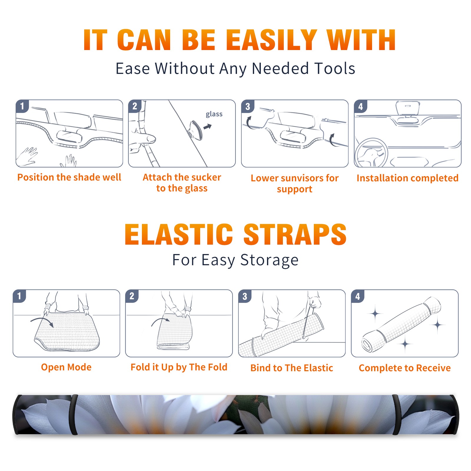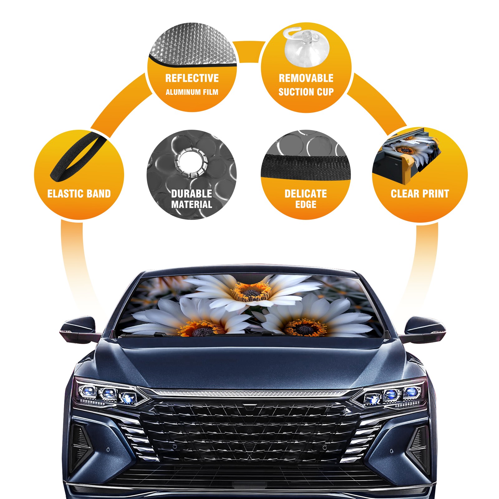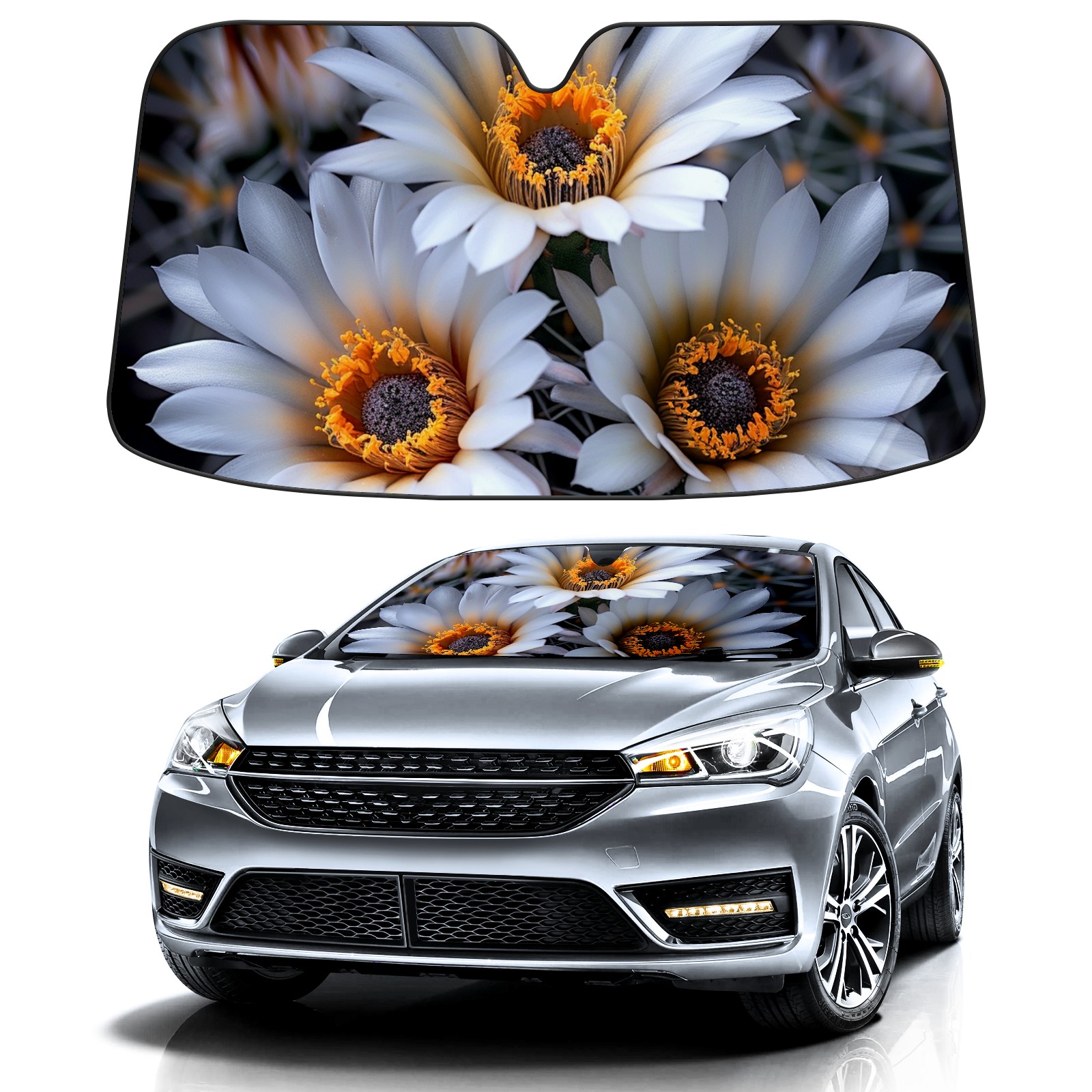 Car Windshield Sun Shade For Front Window Daisies (4) Foldable Vehicle Windshield Car Sun Visor Covers Automotive Window Protector Car Camping Privacy Sun Blocker