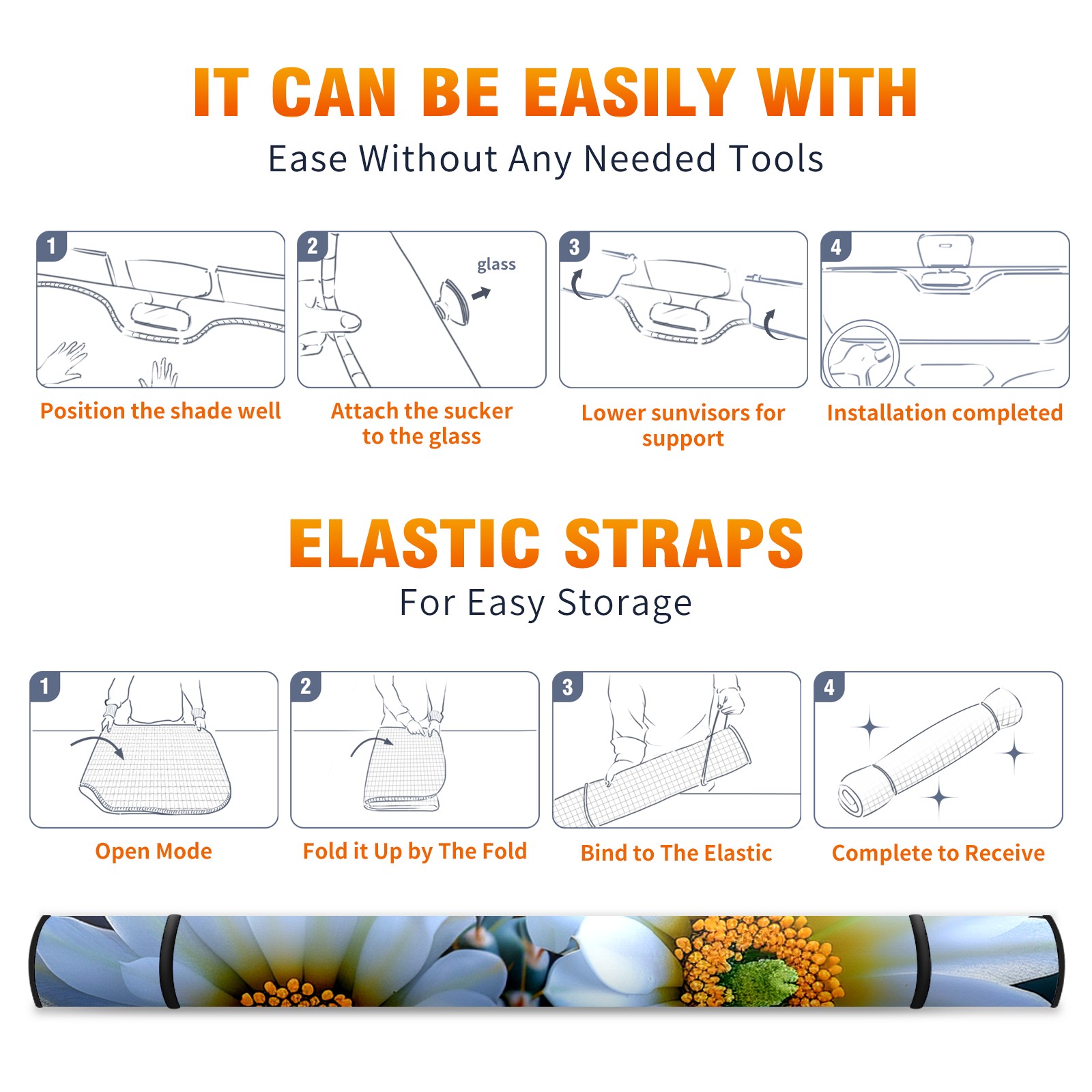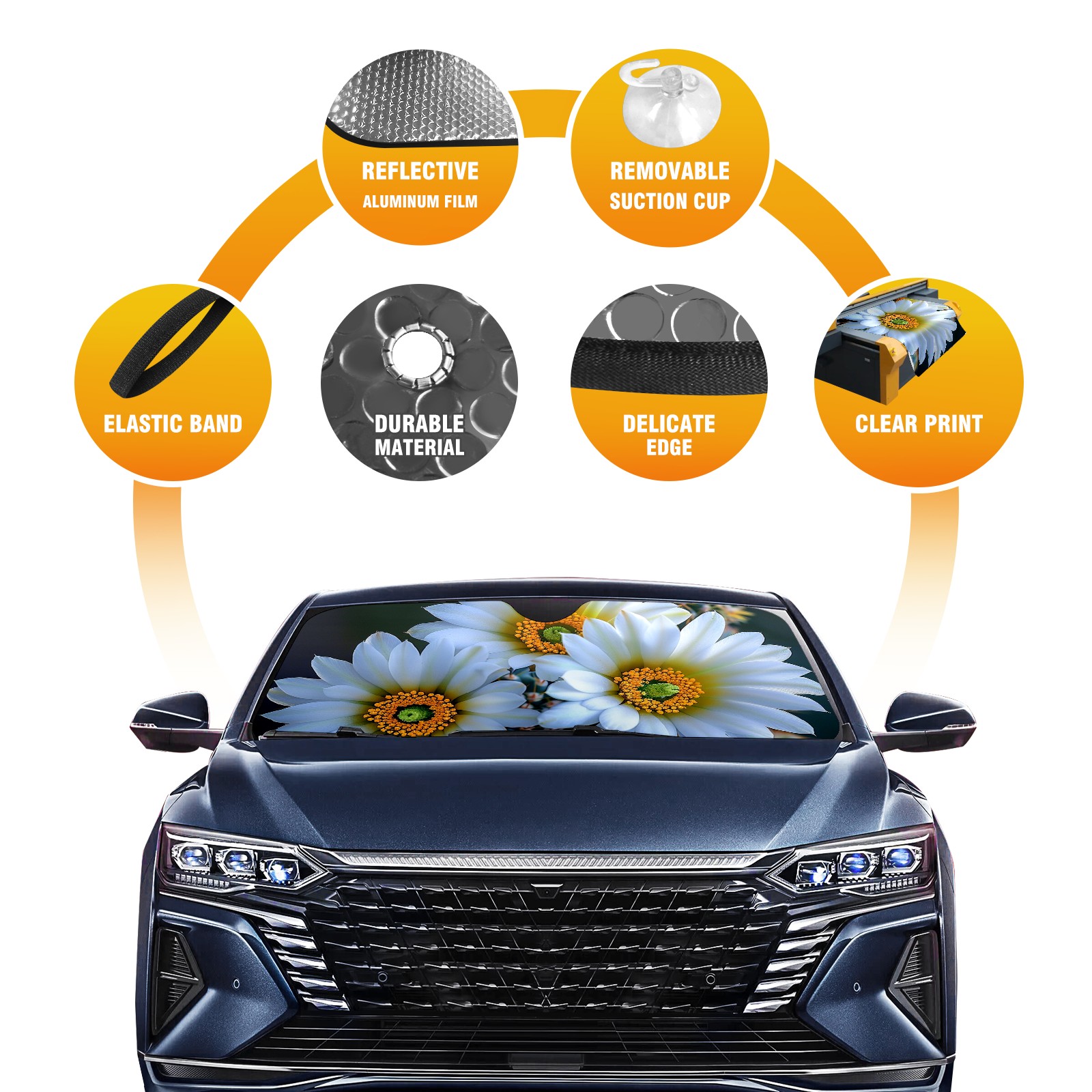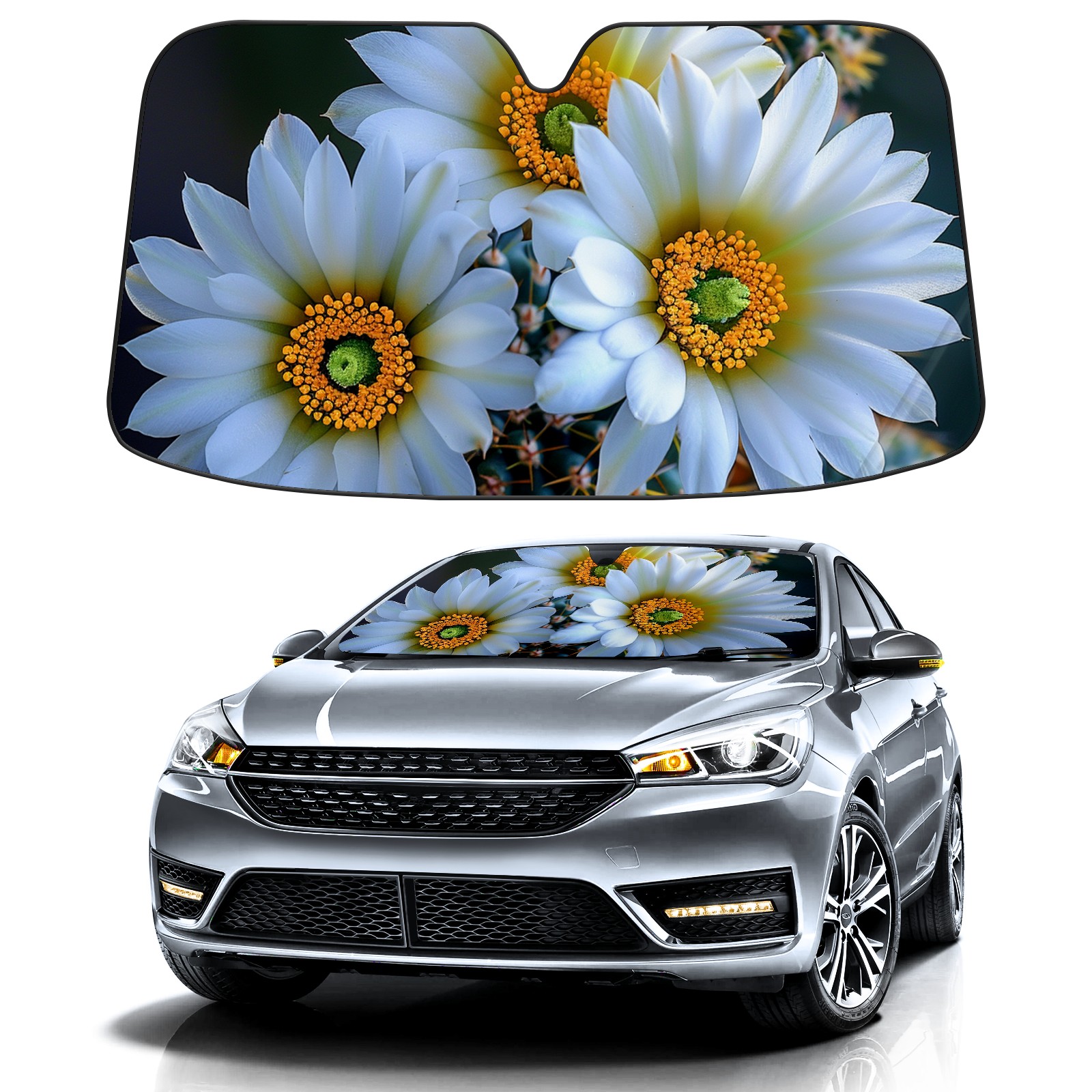 Car Windshield Sun Shade For Front Window Daisies (2) Foldable Vehicle Windshield Car Sun Visor Covers Automotive Window Protector Car Camping Privacy Sun Blocker