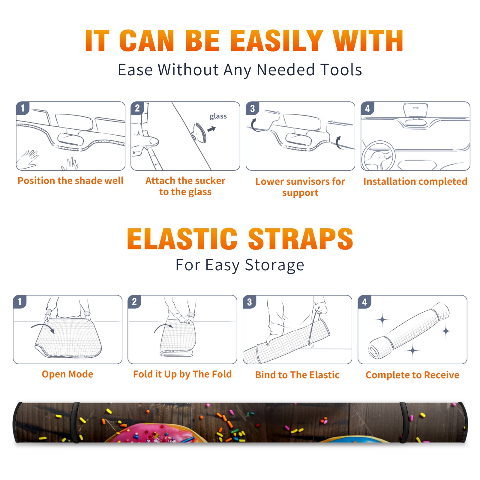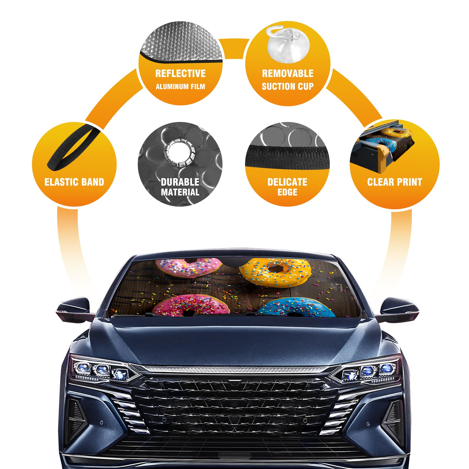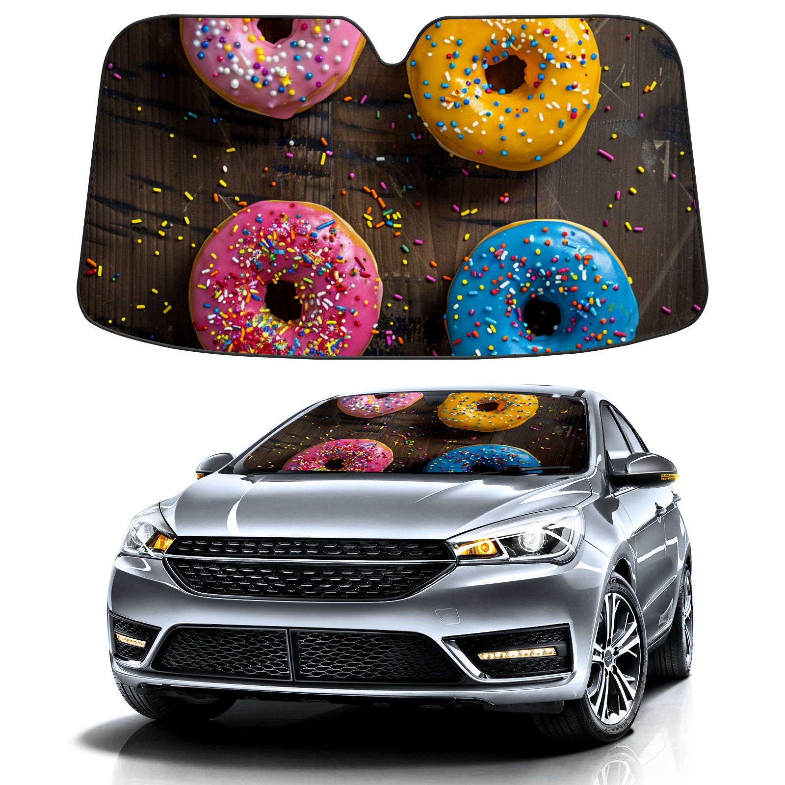Car Windshield Sun Shade For Front Window Colorful Sprinkled Donuts (1) Foldable Vehicle Windshield Car Sun Visor Covers Automotive Window Protector Car Camping Privacy Sun Blocker