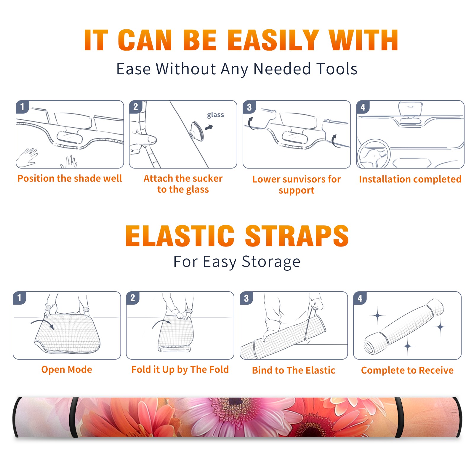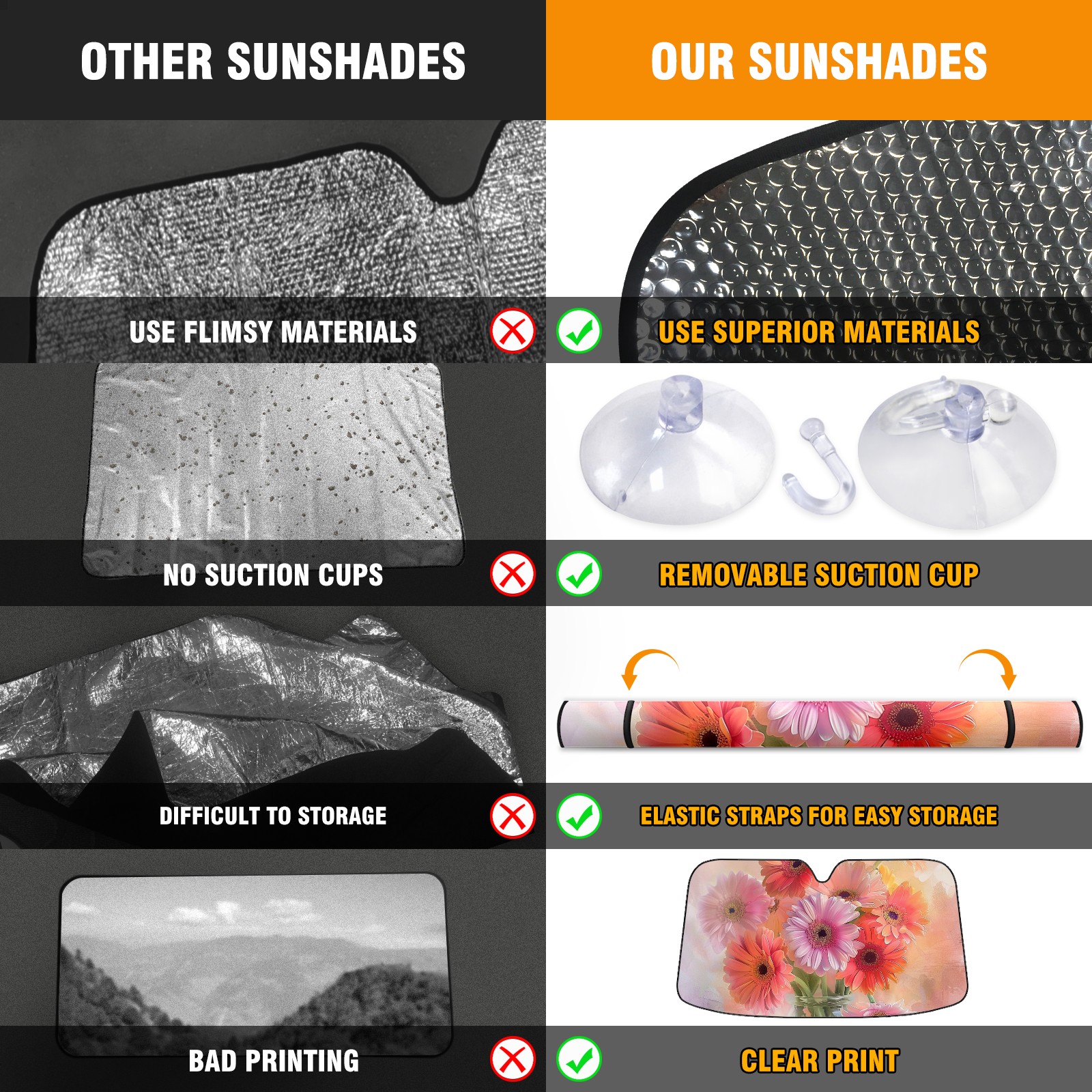 Car Windshield Sun Shade For Front Window Colorful Gerbera Daisies (7) Foldable Vehicle Windshield Car Sun Visor Covers Automotive Window Protector Car Camping Privacy Sun Blocker
