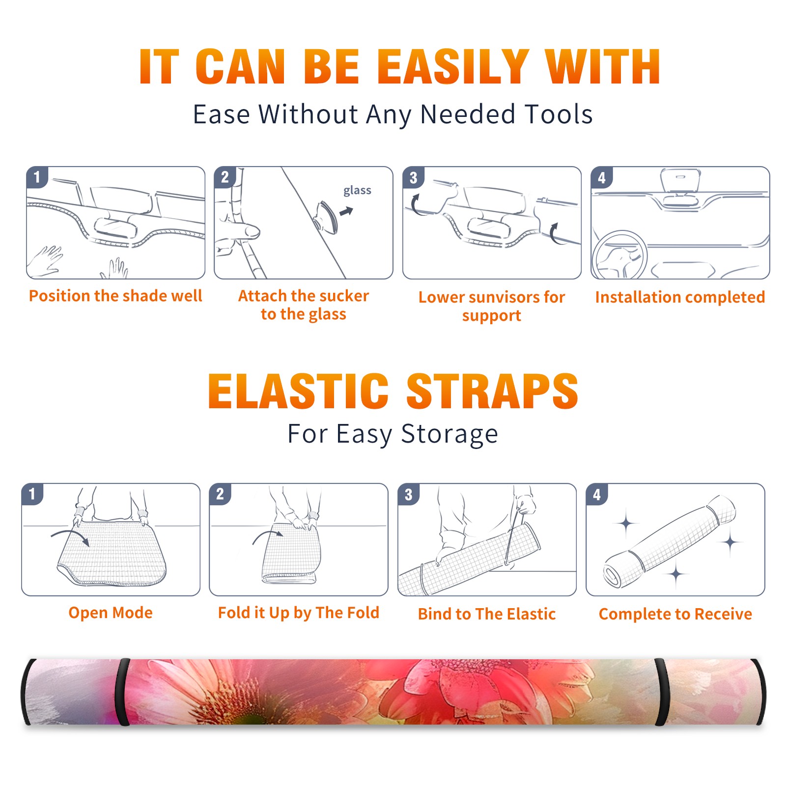 • Diameter /Size 63"L x 33.5"W Made from excellent materials which makes it sturdy and protects the car from the sun. Easy to use and pack. Makes the interior of the car cooler.You can easily stash the sunshade in the storage bag or store long term.It open and closes easy. Also the leather storage bag is durable and easy to put the umbrella back into.This windshield sunshade provides complete coverage and keeps your car interior cool under direct sun. It is easy to open and position under the windshield and around the rear-view mirror. Makes Your Car Easy To Identify, Perfect For Finding Your Car In Crowded Parking Lots And Garages.Great Choice: It Is A Great Gift For Dad, Boyfriend, Brother, Brother And Uncle, Friends, Classmates, Family And So On. Notice: Due To Difference Computer Monitors, The Color Maybe Slightly Different From Picture. As Different Measurement Methods, Measurement Data Will Float Within 2%.I Hope You Understand. If You Have Any Question About The Item Please Do Not Hesitate To Contact Us Immediately And We Will Give You A Satisfactory Reply Within 24 Hours.