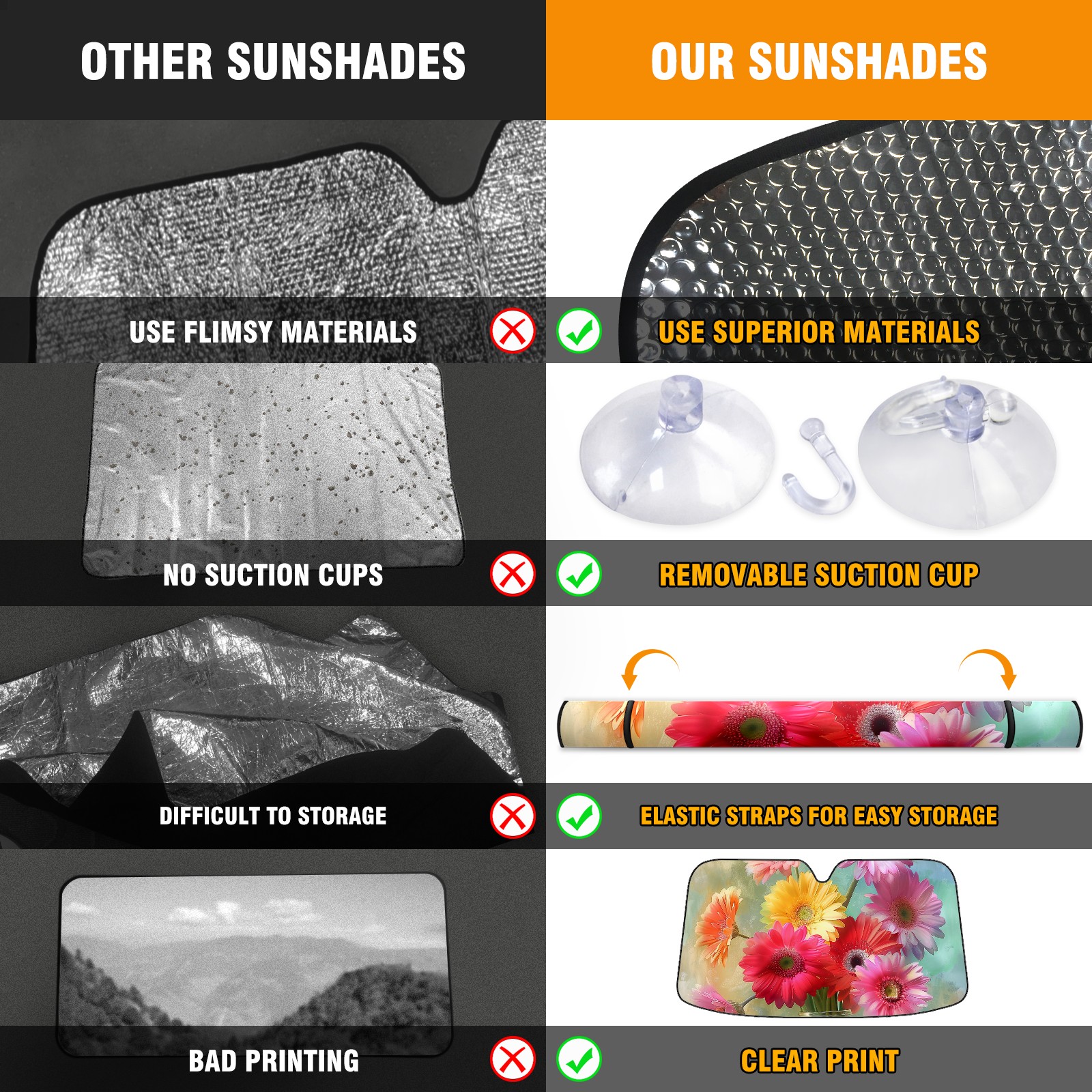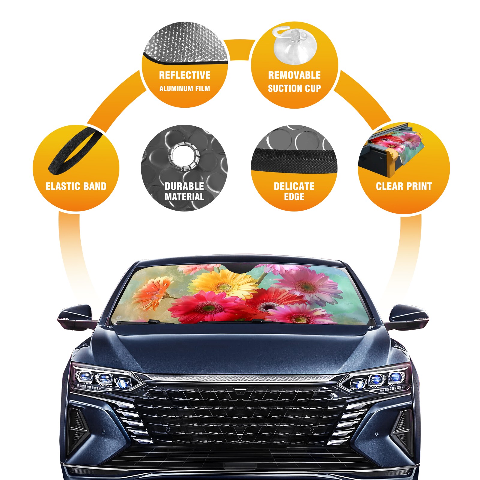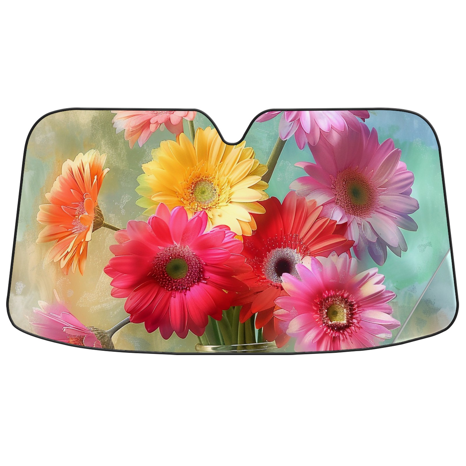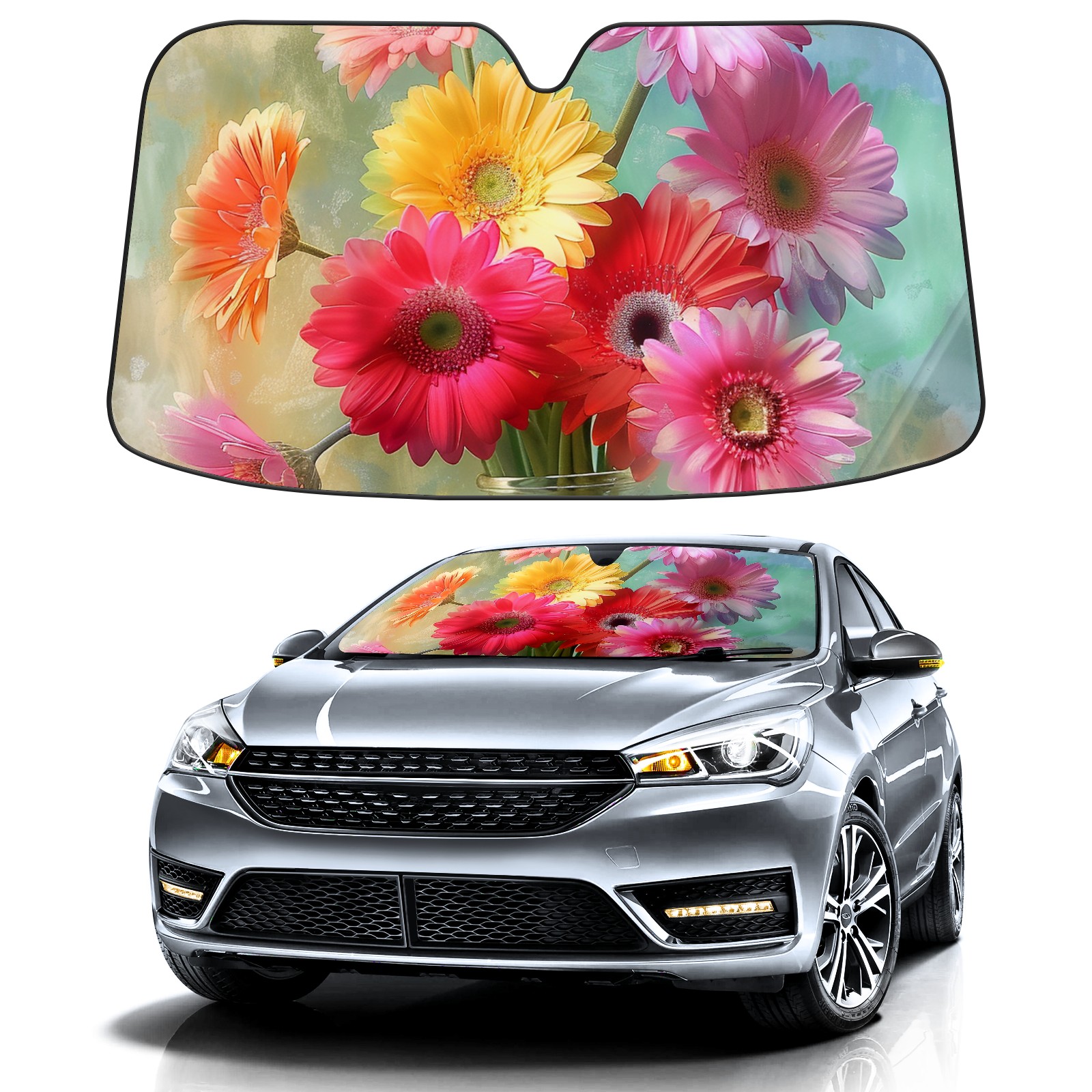 Car Windshield Sun Shade For Front Window Colorful Gerbera Daisies (5) Foldable Vehicle Windshield Car Sun Visor Covers Automotive Window Protector Car Camping Privacy Sun Blocker
