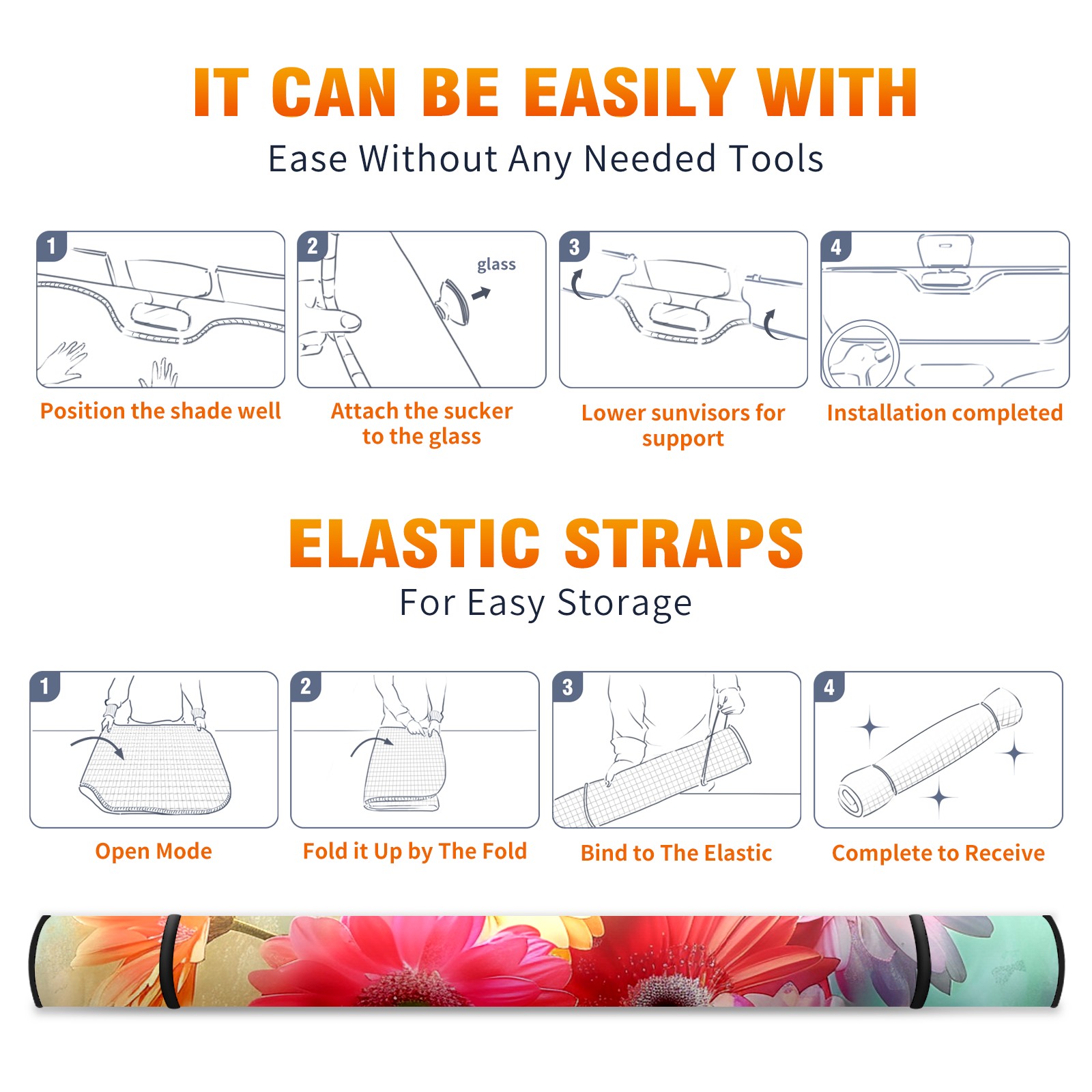 • Diameter /Size 63"L x 33.5"W Made from excellent materials which makes it sturdy and protects the car from the sun. Easy to use and pack. Makes the interior of the car cooler.You can easily stash the sunshade in the storage bag or store long term.It open and closes easy. Also the leather storage bag is durable and easy to put the umbrella back into.This windshield sunshade provides complete coverage and keeps your car interior cool under direct sun. It is easy to open and position under the windshield and around the rear-view mirror. Makes Your Car Easy To Identify, Perfect For Finding Your Car In Crowded Parking Lots And Garages.Great Choice: It Is A Great Gift For Dad, Boyfriend, Brother, Brother And Uncle, Friends, Classmates, Family And So On. Notice: Due To Difference Computer Monitors, The Color Maybe Slightly Different From Picture. As Different Measurement Methods, Measurement Data Will Float Within 2%.I Hope You Understand. If You Have Any Question About The Item Please Do Not Hesitate To Contact Us Immediately And We Will Give You A Satisfactory Reply Within 24 Hours.