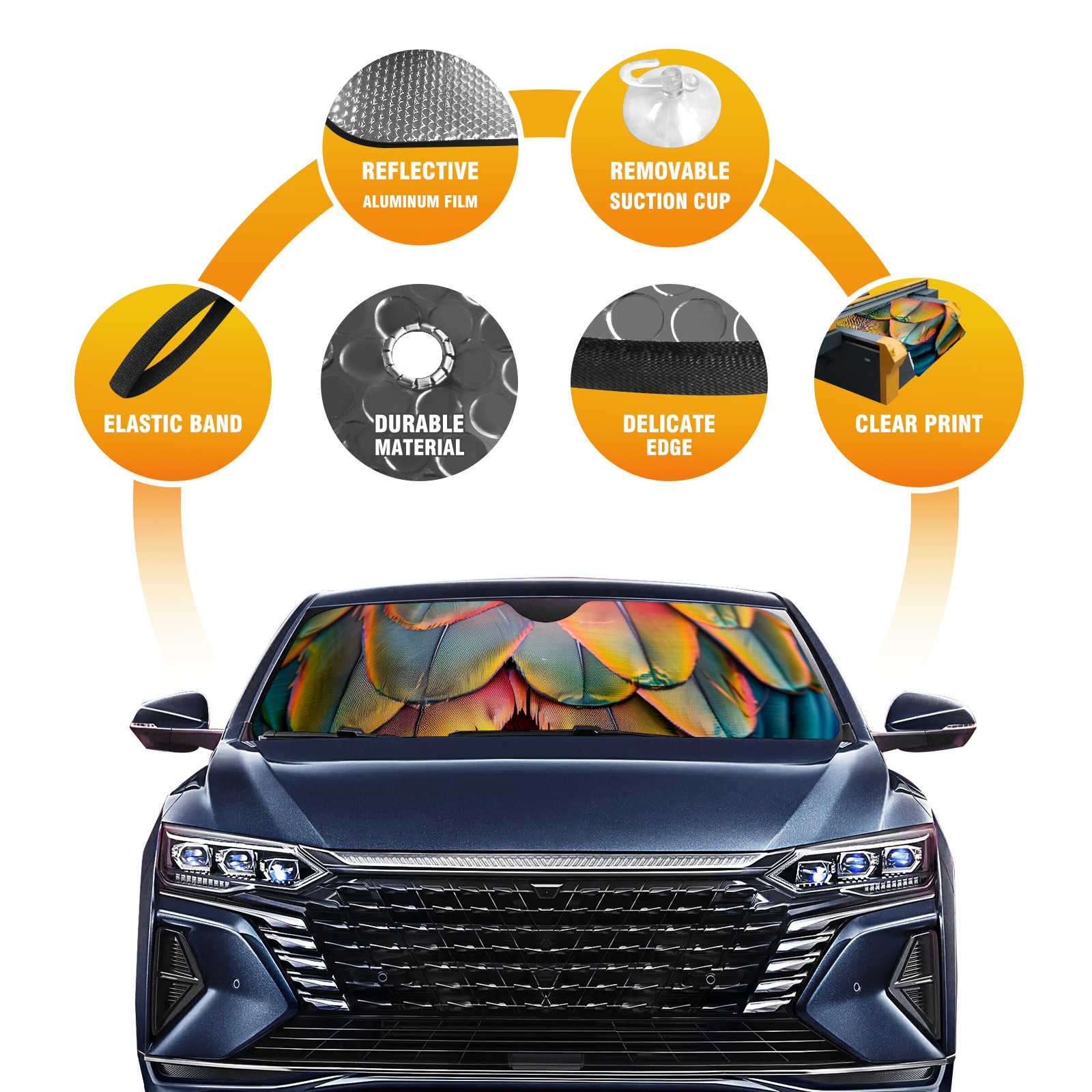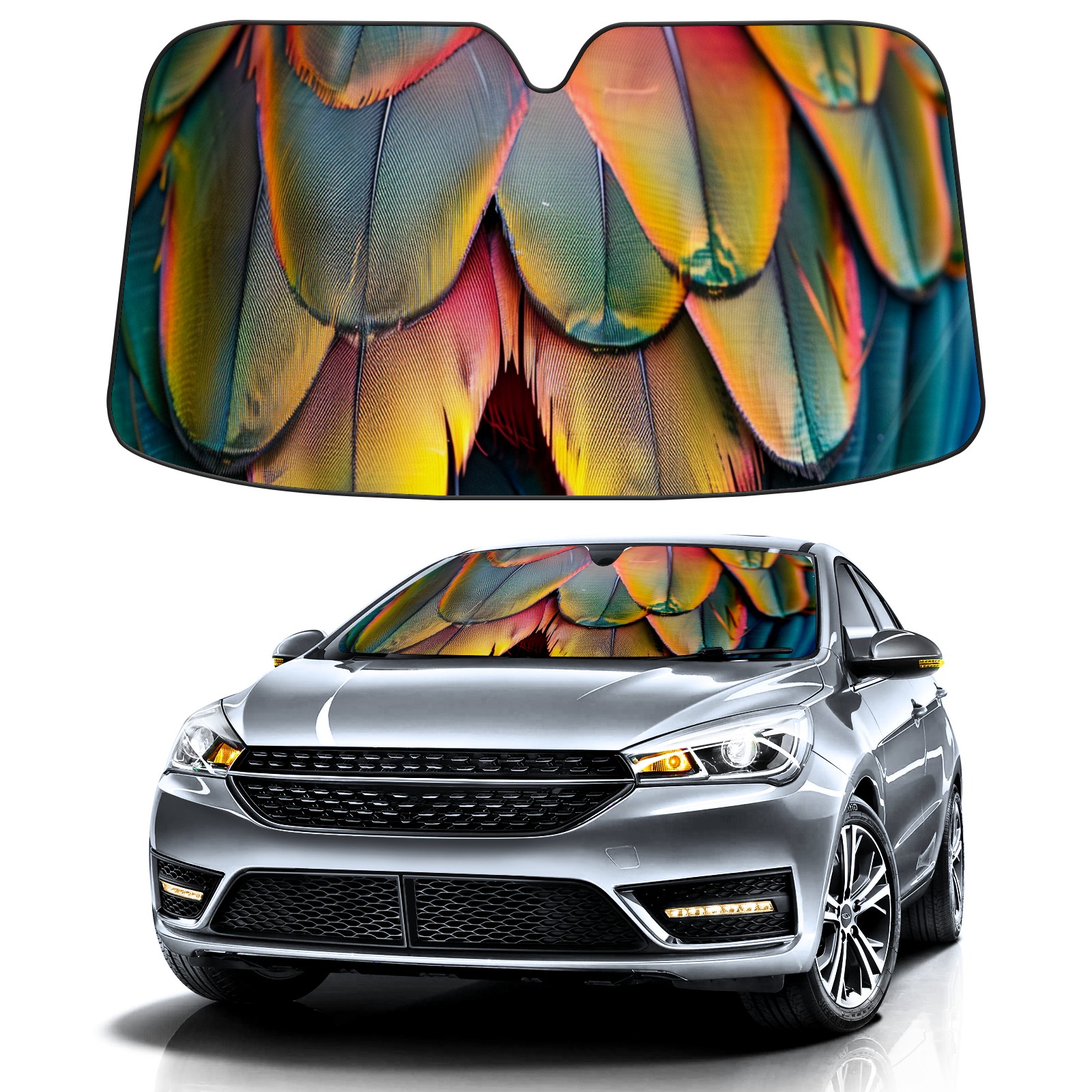 Car Windshield Sun Shade For Front Window Colorful Bird Feathers (3) Foldable Vehicle Windshield Car Sun Visor Covers Automotive Window Protector Car Camping Privacy Sun Blocker