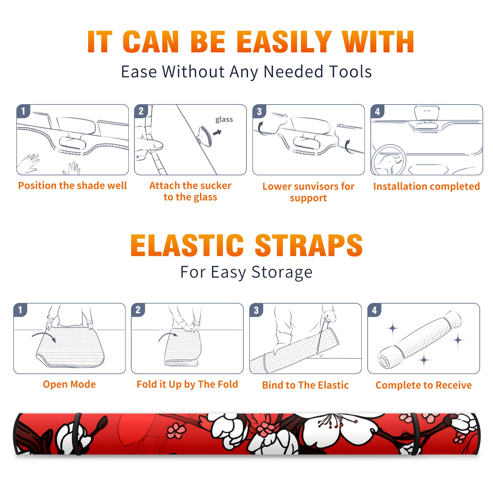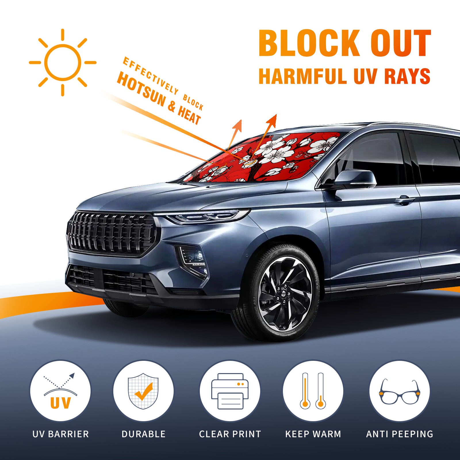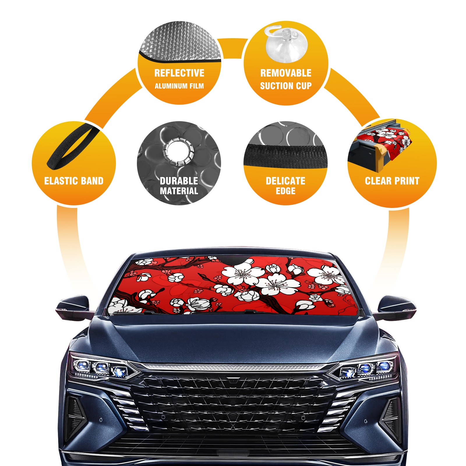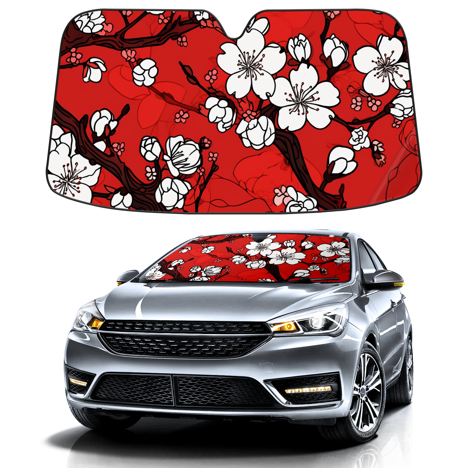 Car Windshield Sun Shade For Front Window Cherry Blossom Flowers (3) Foldable Vehicle Windshield Car Sun Visor Covers Automotive Window Protector Car Camping Privacy Sun Blocker