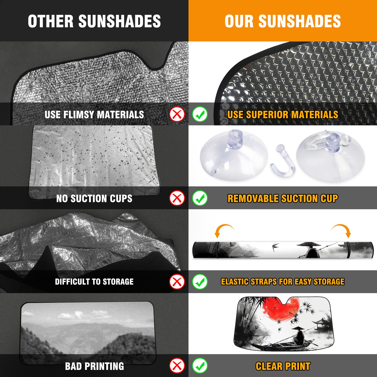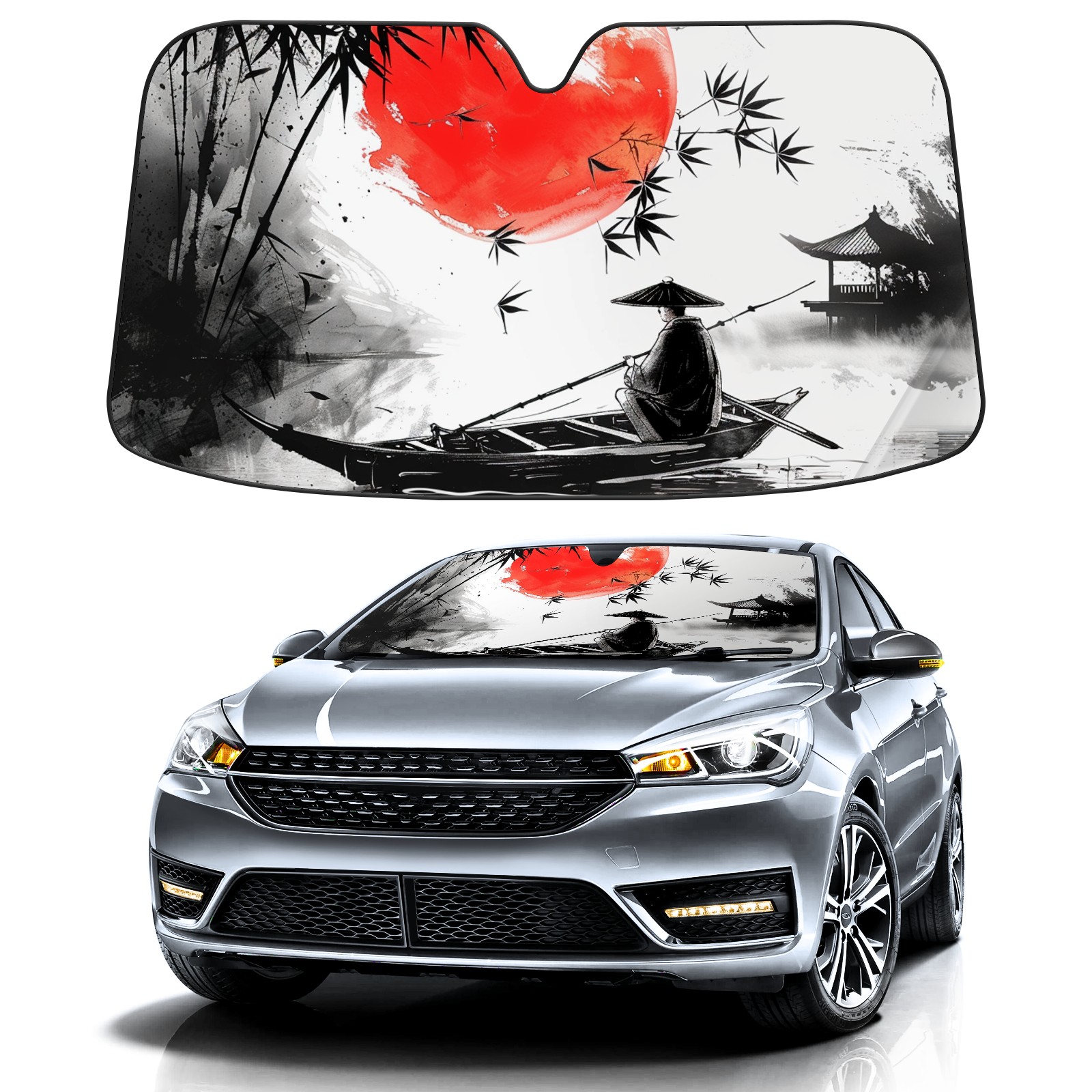 • Diameter /Size 63"L x 33.5"W Made from excellent materials which makes it sturdy and protects the car from the sun. Easy to use and pack. Makes the interior of the car cooler.You can easily stash the sunshade in the storage bag or store long term.It open and closes easy. Also the leather storage bag is durable and easy to put the umbrella back into.This windshield sunshade provides complete coverage and keeps your car interior cool under direct sun. It is easy to open and position under the windshield and around the rear-view mirror. Makes Your Car Easy To Identify, Perfect For Finding Your Car In Crowded Parking Lots And Garages.Great Choice: It Is A Great Gift For Dad, Boyfriend, Brother, Brother And Uncle, Friends, Classmates, Family And So On. Notice: Due To Difference Computer Monitors, The Color Maybe Slightly Different From Picture. As Different Measurement Methods, Measurement Data Will Float Within 2%.I Hope You Understand. If You Have Any Question About The Item Please Do Not Hesitate To Contact Us Immediately And We Will Give You A Satisfactory Reply Within 24 Hours.