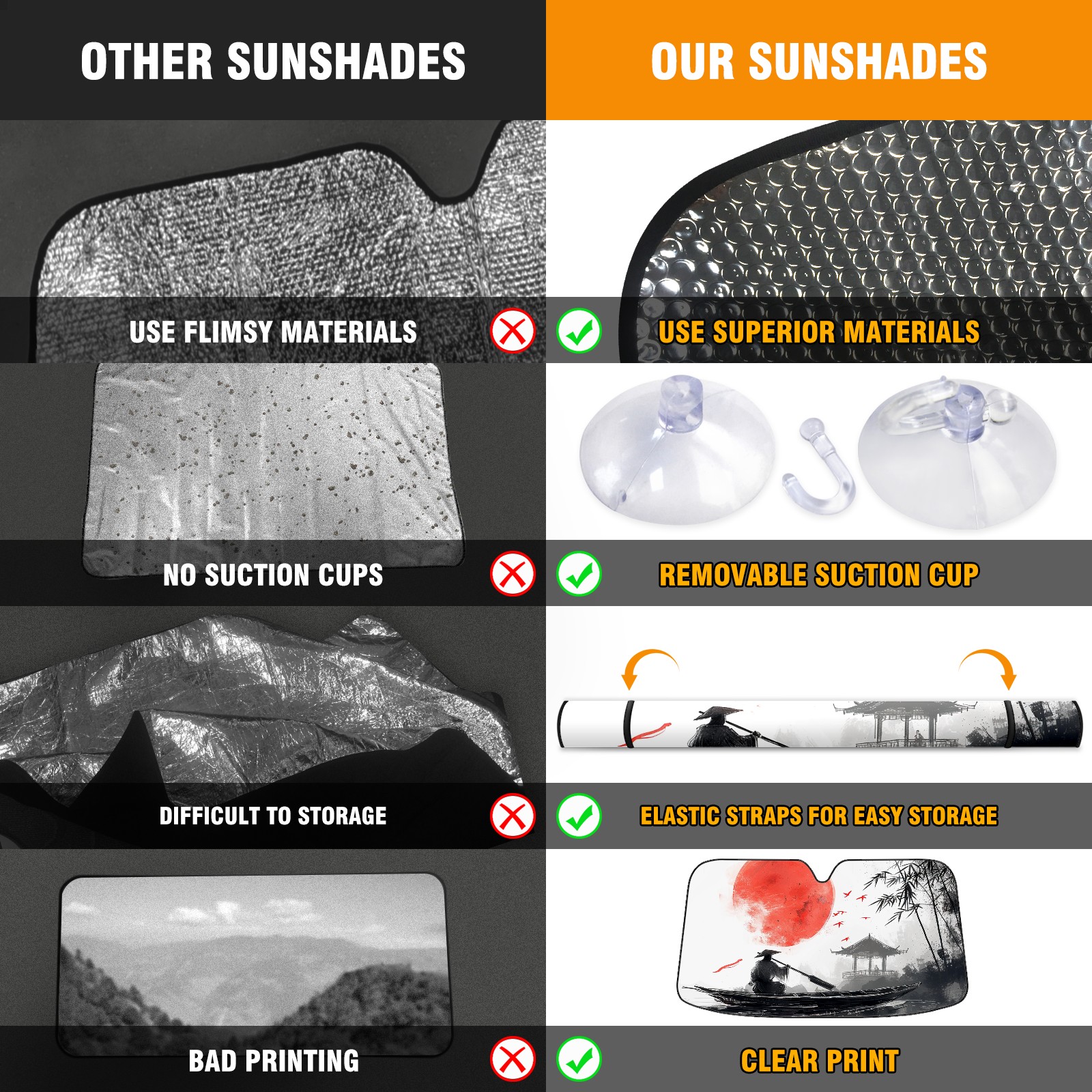 • Diameter /Size 63"L x 33.5"W Made from excellent materials which makes it sturdy and protects the car from the sun. Easy to use and pack. Makes the interior of the car cooler.You can easily stash the sunshade in the storage bag or store long term.It open and closes easy. Also the leather storage bag is durable and easy to put the umbrella back into.This windshield sunshade provides complete coverage and keeps your car interior cool under direct sun. It is easy to open and position under the windshield and around the rear-view mirror. Makes Your Car Easy To Identify, Perfect For Finding Your Car In Crowded Parking Lots And Garages.Great Choice: It Is A Great Gift For Dad, Boyfriend, Brother, Brother And Uncle, Friends, Classmates, Family And So On. Notice: Due To Difference Computer Monitors, The Color Maybe Slightly Different From Picture. As Different Measurement Methods, Measurement Data Will Float Within 2%.I Hope You Understand. If You Have Any Question About The Item Please Do Not Hesitate To Contact Us Immediately And We Will Give You A Satisfactory Reply Within 24 Hours.