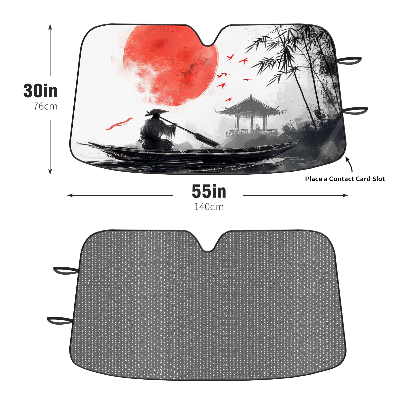 Diameter /Size 63"L x 33.5"W Made from excellent materials which makes it sturdy and protects the car from the sun. Easy to use and pack. Makes the interior of the car cooler.You can easily stash the sunshade in the storage bag or store long term.It open and closes easy. Also the leather storage bag is durable and easy to put the umbrella back into.This windshield sunshade provides complete coverage and keeps your car interior cool under direct sun. It is easy to open and position under the windshield and around the rear-view mirror. Makes Your Car Easy To Identify, Perfect For Finding Your Car In Crowded Parking Lots And Garages.Great Choice: It Is A Great Gift For Dad, Boyfriend, Brother, Brother And Uncle, Friends, Classmates, Family And So On. Notice: Due To Difference Computer Monitors, The Color Maybe Slightly Different From Picture. As Different Measurement Methods, Measurement Data Will Float Within 2%.I Hope You Understand. If You Have Any Question About The Item Please Do Not Hesitate To Contact Us Immediately And We Will Give You A Satisfactory Reply Within 24 Hours.