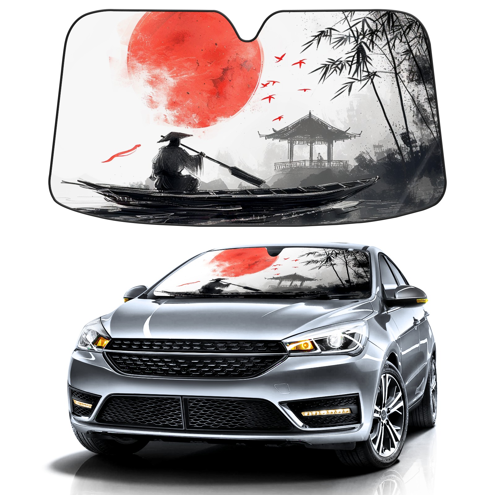 Car Windshield Sun Shade For Front Window Painting (1) Foldable Vehicle Windshield Car Sun Visor Covers Automotive Window Protector Car Camping Privacy Sun Blocker