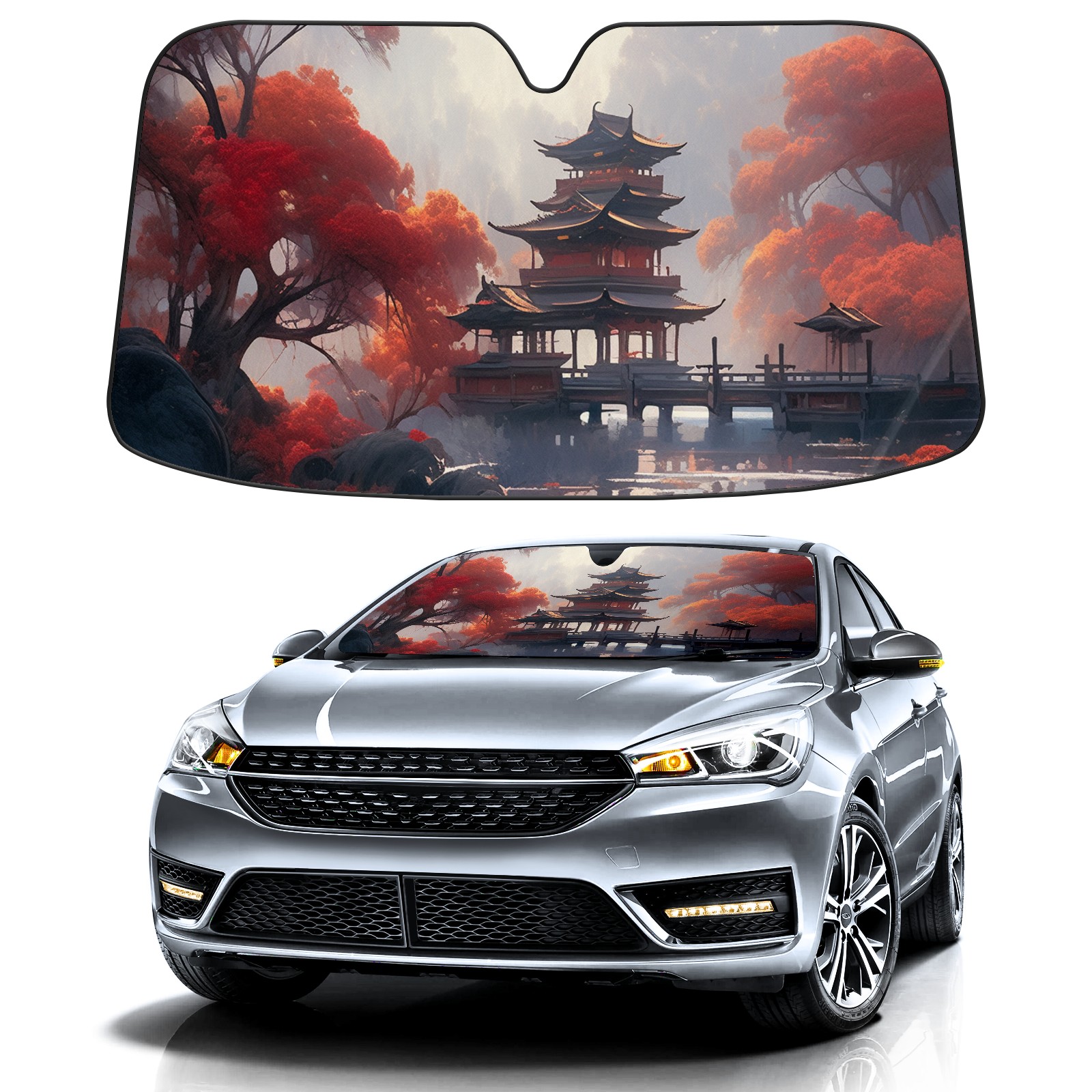 • Diameter /Size 63"L x 33.5"W Made from excellent materials which makes it sturdy and protects the car from the sun. Easy to use and pack. Makes the interior of the car cooler.You can easily stash the sunshade in the storage bag or store long term.It open and closes easy. Also the leather storage bag is durable and easy to put the umbrella back into.This windshield sunshade provides complete coverage and keeps your car interior cool under direct sun. It is easy to open and position under the windshield and around the rear-view mirror. Makes Your Car Easy To Identify, Perfect For Finding Your Car In Crowded Parking Lots And Garages.Great Choice: It Is A Great Gift For Dad, Boyfriend, Brother, Brother And Uncle, Friends, Classmates, Family And So On. Notice: Due To Difference Computer Monitors, The Color Maybe Slightly Different From Picture. As Different Measurement Methods, Measurement Data Will Float Within 2%.I Hope You Understand. If You Have Any Question About The Item Please Do Not Hesitate To Contact Us Immediately And We Will Give You A Satisfactory Reply Within 24 Hours.