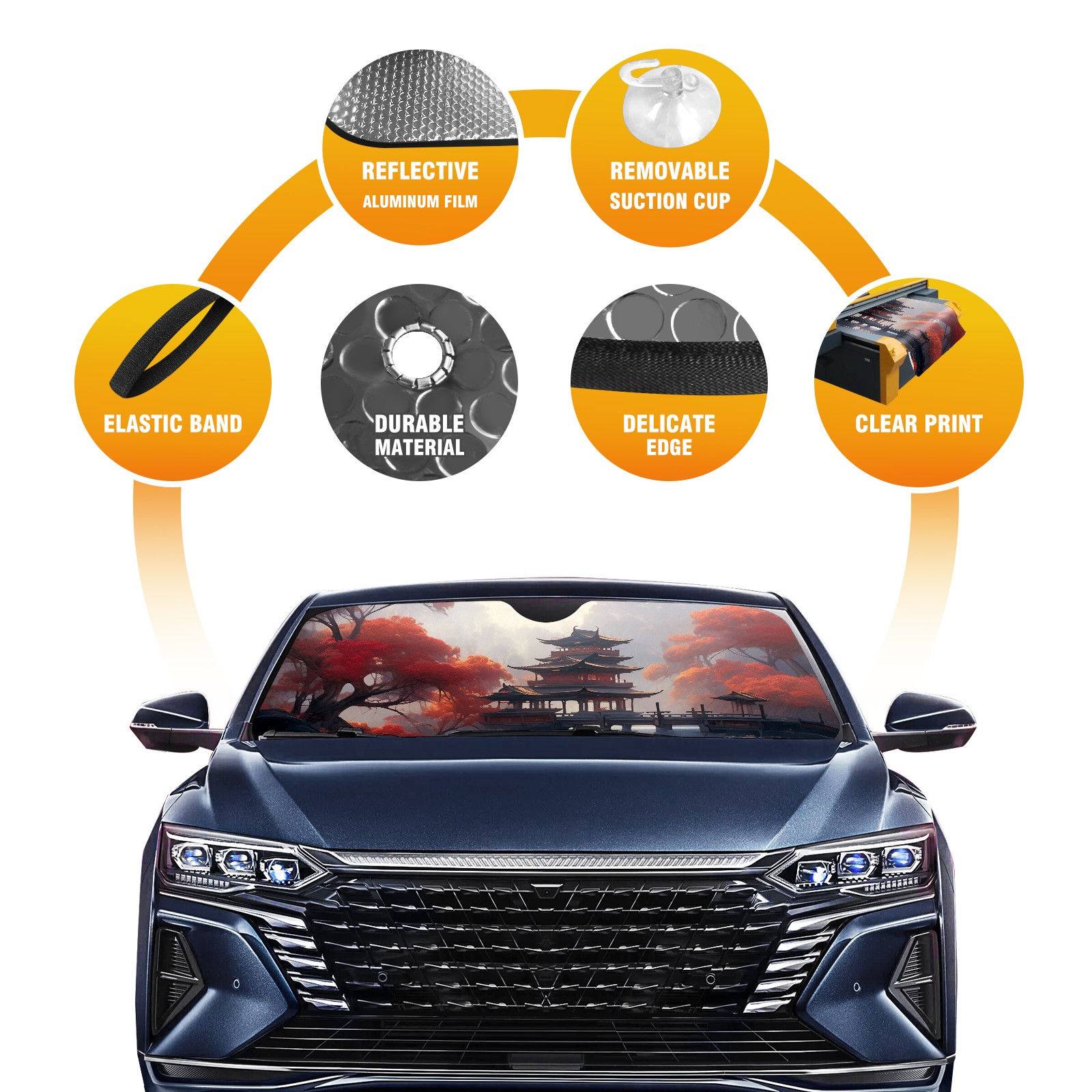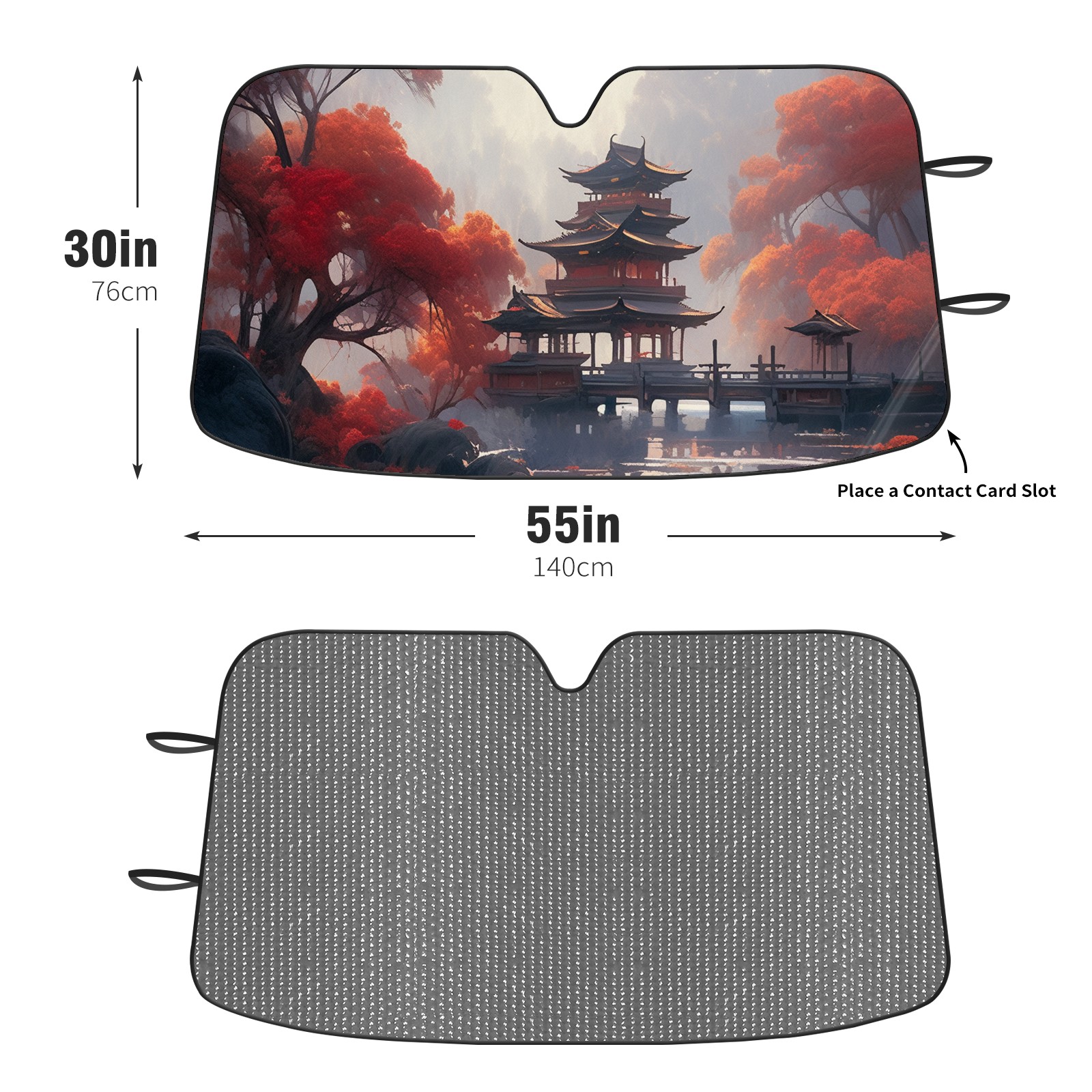 Diameter /Size 63"L x 33.5"W Made from excellent materials which makes it sturdy and protects the car from the sun. Easy to use and pack. Makes the interior of the car cooler.You can easily stash the sunshade in the storage bag or store long term.It open and closes easy. Also the leather storage bag is durable and easy to put the umbrella back into.This windshield sunshade provides complete coverage and keeps your car interior cool under direct sun. It is easy to open and position under the windshield and around the rear-view mirror. Makes Your Car Easy To Identify, Perfect For Finding Your Car In Crowded Parking Lots And Garages.Great Choice: It Is A Great Gift For Dad, Boyfriend, Brother, Brother And Uncle, Friends, Classmates, Family And So On. Notice: Due To Difference Computer Monitors, The Color Maybe Slightly Different From Picture. As Different Measurement Methods, Measurement Data Will Float Within 2%.I Hope You Understand. If You Have Any Question About The Item Please Do Not Hesitate To Contact Us Immediately And We Will Give You A Satisfactory Reply Within 24 Hours.