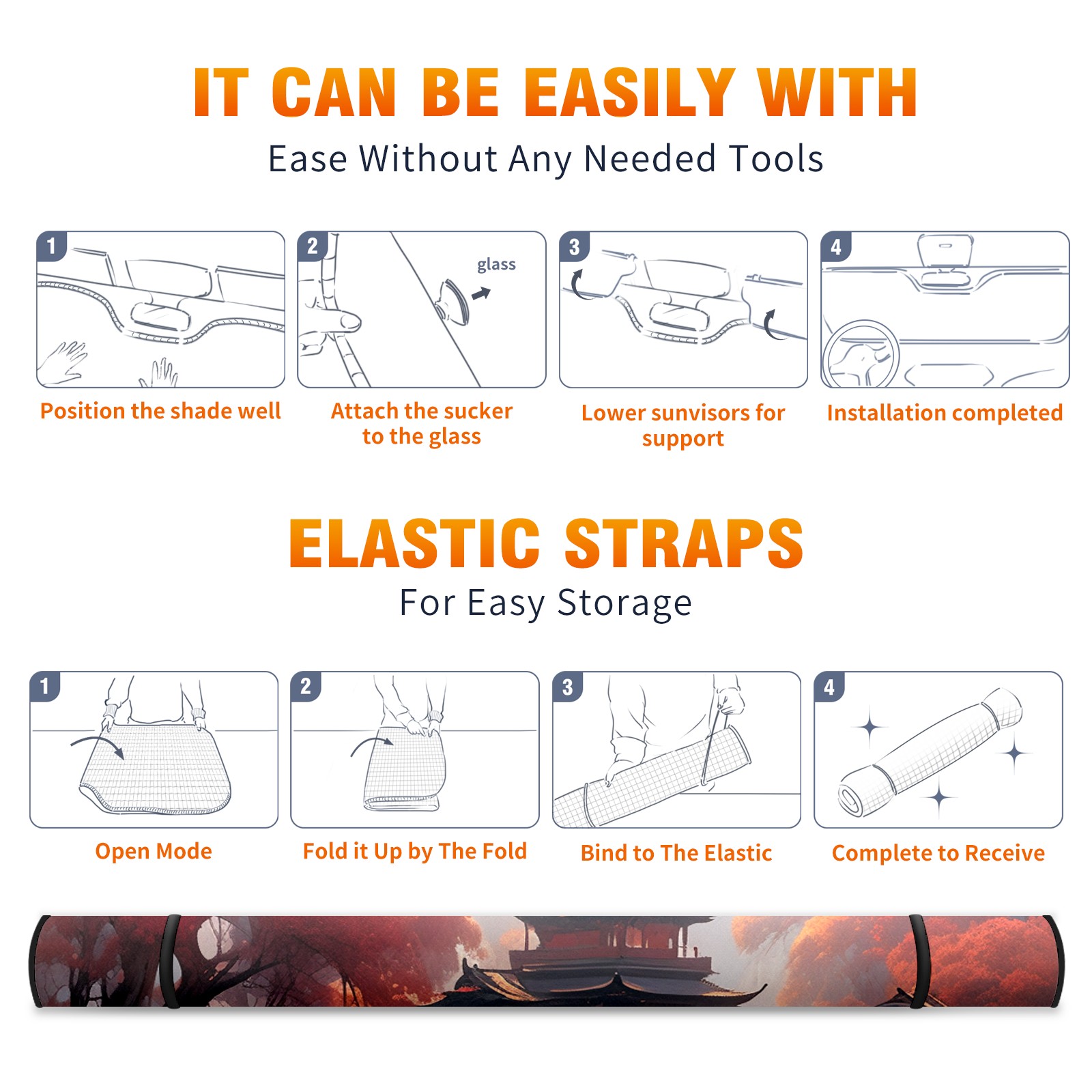 Car Windshield Sun Shade For Front Window Oil Painting_ (4) Foldable Vehicle Windshield Car Sun Visor Covers Automotive Window Protector Car Camping Privacy Sun Blocker