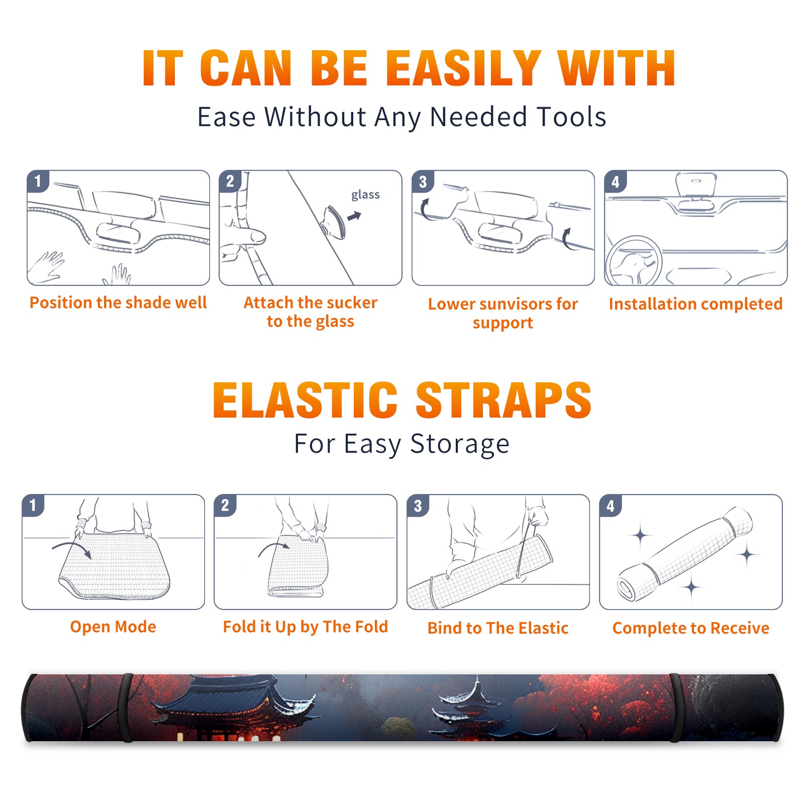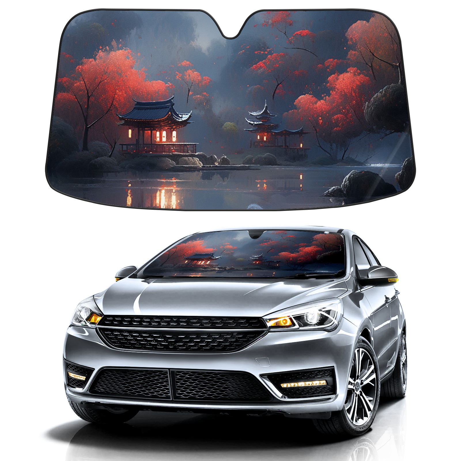 Car Windshield Sun Shade For Front Window Oil Painting_ (3) Foldable Vehicle Windshield Car Sun Visor Covers Automotive Window Protector Car Camping Privacy Sun Blocker