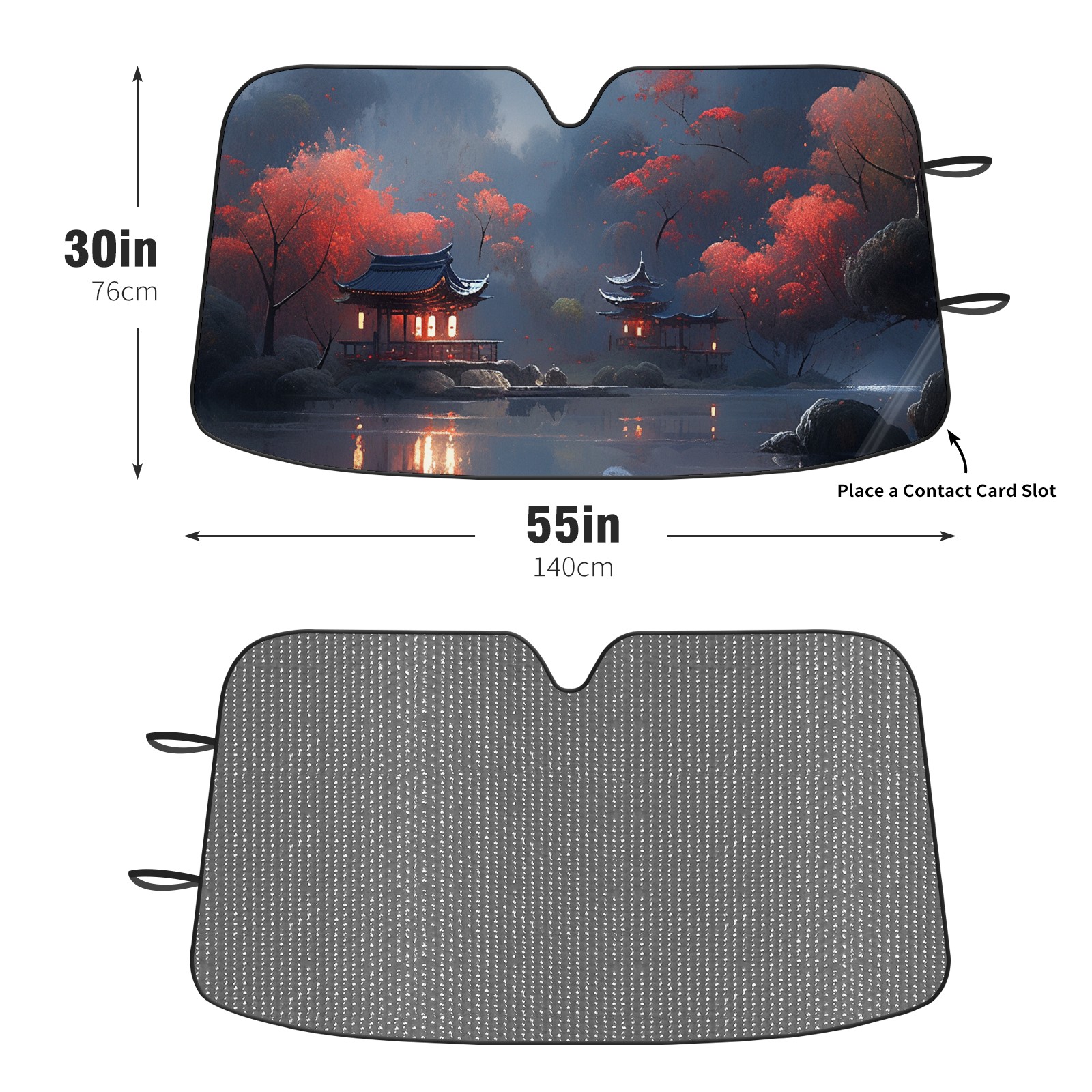 Diameter /Size 63"L x 33.5"W Made from excellent materials which makes it sturdy and protects the car from the sun. Easy to use and pack. Makes the interior of the car cooler.You can easily stash the sunshade in the storage bag or store long term.It open and closes easy. Also the leather storage bag is durable and easy to put the umbrella back into.This windshield sunshade provides complete coverage and keeps your car interior cool under direct sun. It is easy to open and position under the windshield and around the rear-view mirror. Makes Your Car Easy To Identify, Perfect For Finding Your Car In Crowded Parking Lots And Garages.Great Choice: It Is A Great Gift For Dad, Boyfriend, Brother, Brother And Uncle, Friends, Classmates, Family And So On. Notice: Due To Difference Computer Monitors, The Color Maybe Slightly Different From Picture. As Different Measurement Methods, Measurement Data Will Float Within 2%.I Hope You Understand. If You Have Any Question About The Item Please Do Not Hesitate To Contact Us Immediately And We Will Give You A Satisfactory Reply Within 24 Hours.