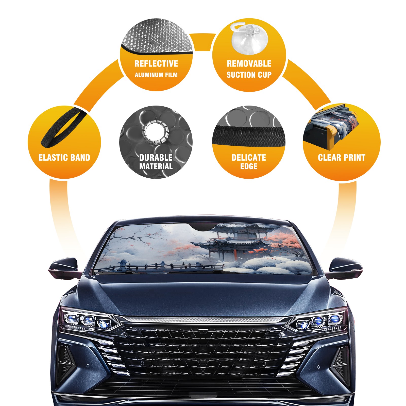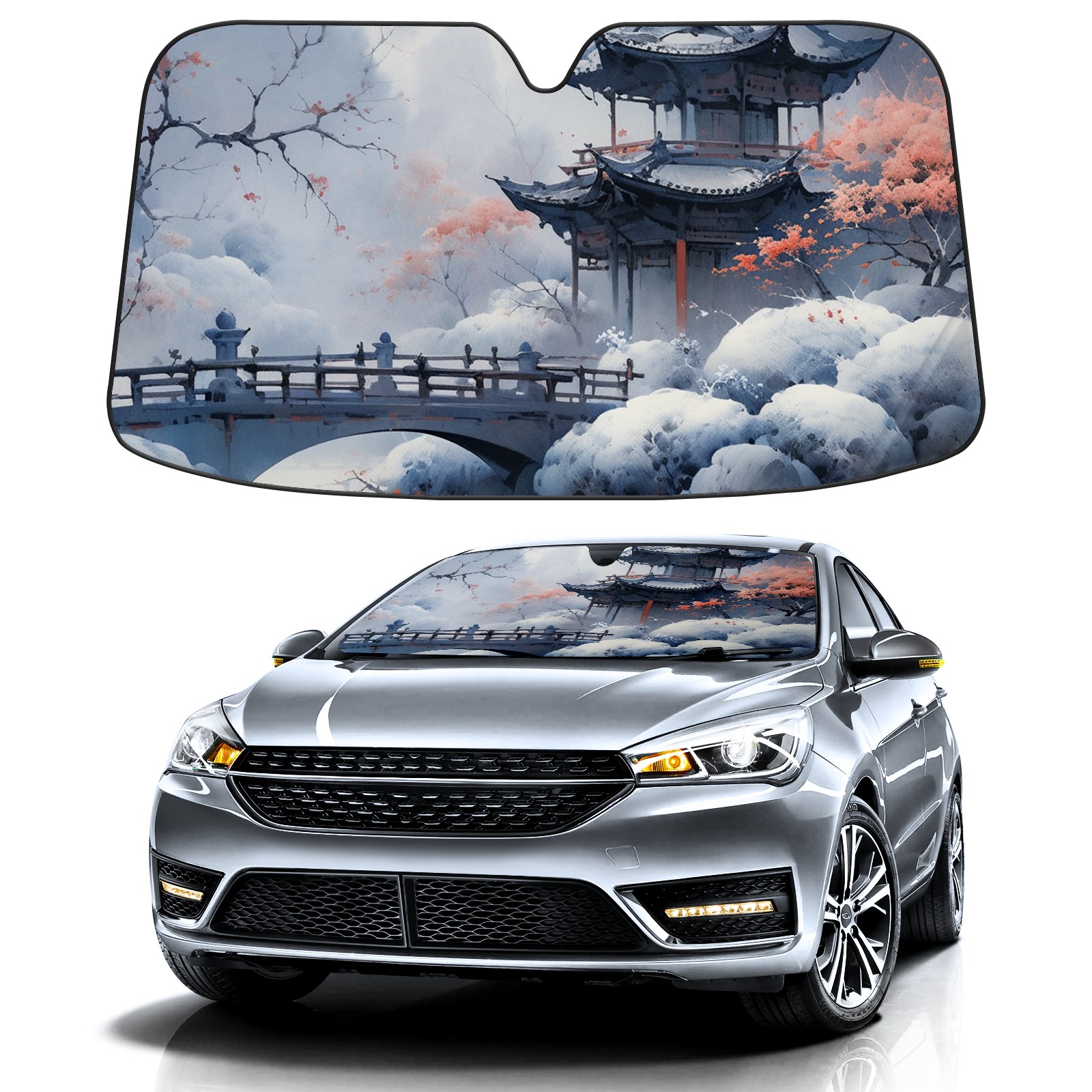 Car Windshield Sun Shade For Front Window Oil Painting_ (1) Foldable Vehicle Windshield Car Sun Visor Covers Automotive Window Protector Car Camping Privacy Sun Blocker