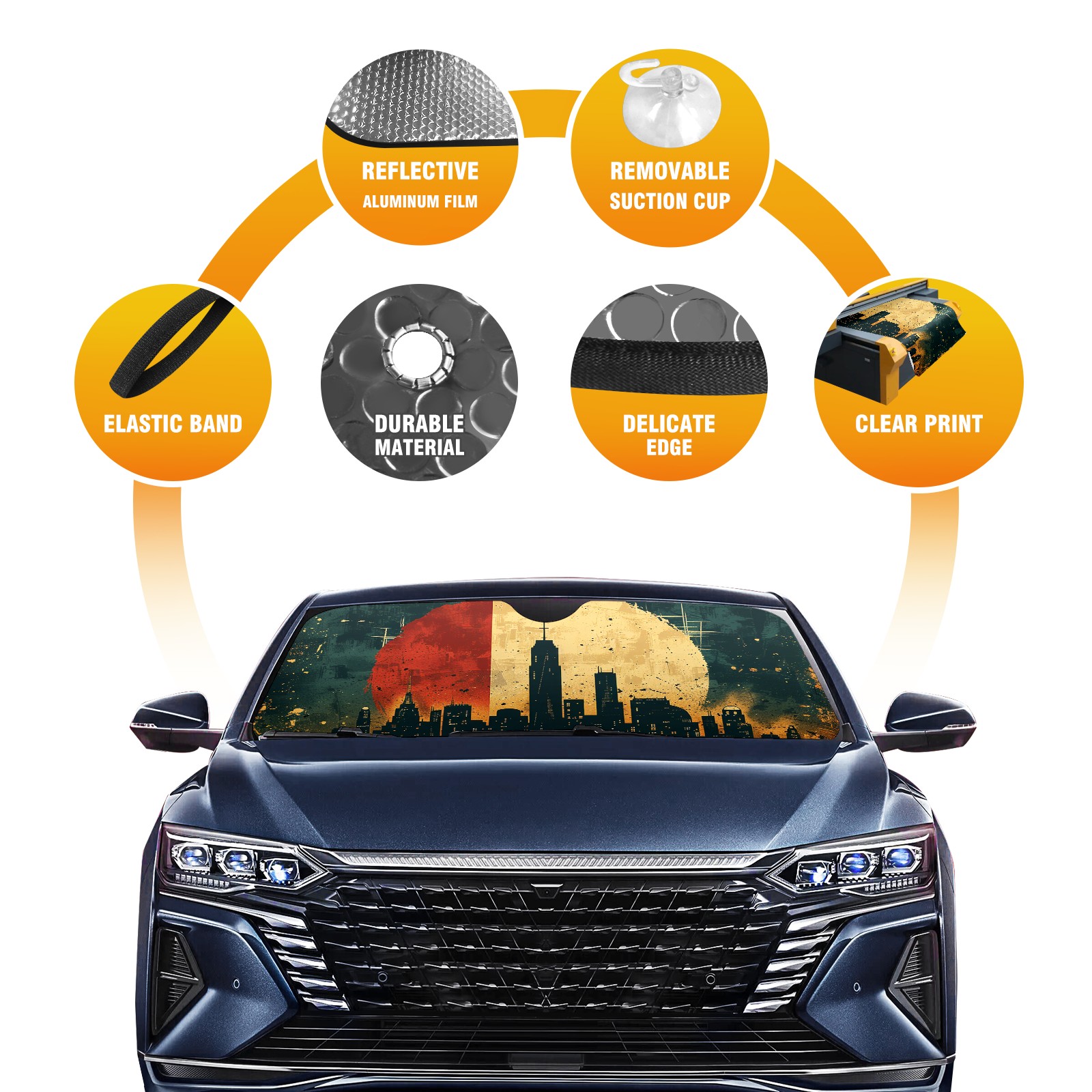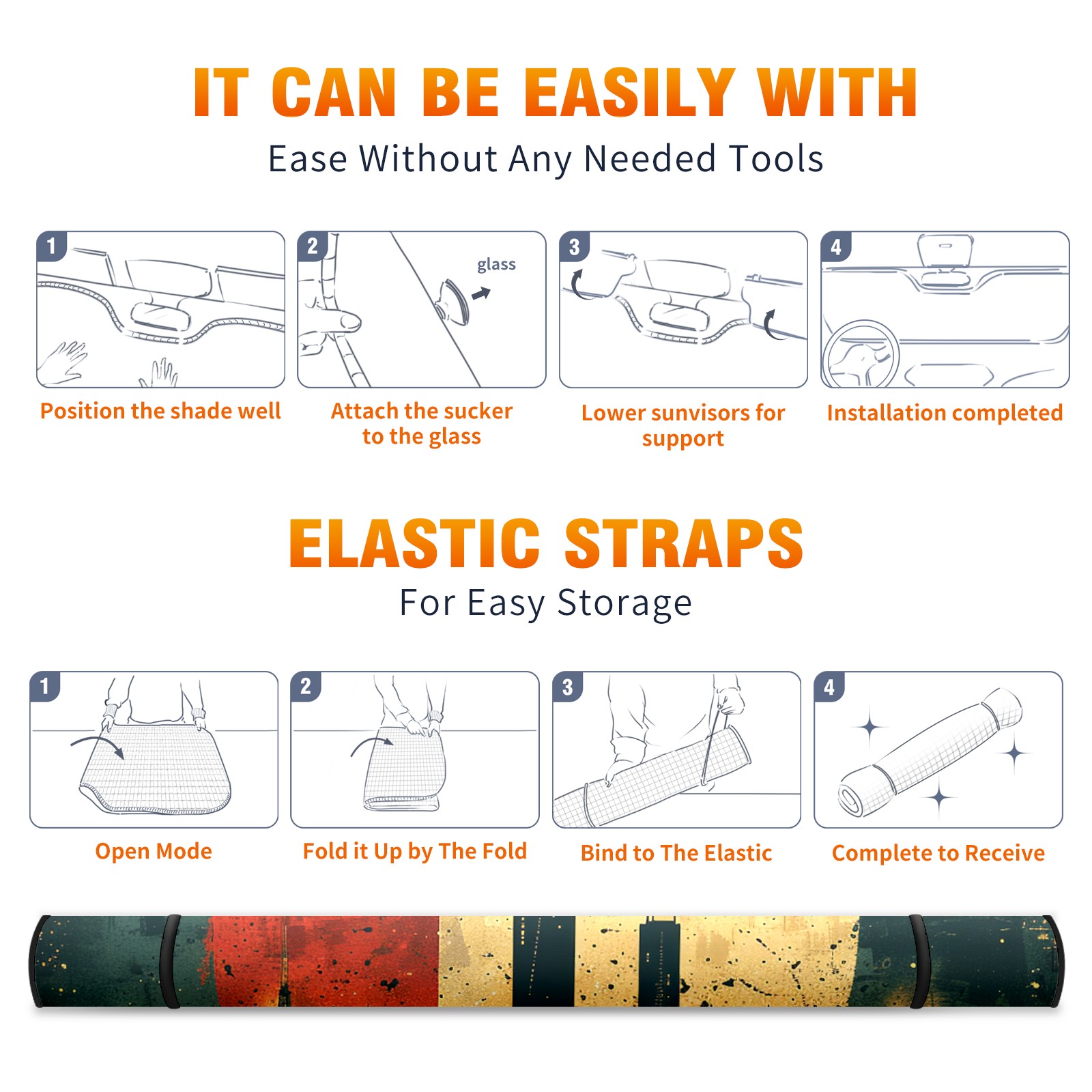 • Diameter /Size 63"L x 33.5"W Made from excellent materials which makes it sturdy and protects the car from the sun. Easy to use and pack. Makes the interior of the car cooler.You can easily stash the sunshade in the storage bag or store long term.It open and closes easy. Also the leather storage bag is durable and easy to put the umbrella back into.This windshield sunshade provides complete coverage and keeps your car interior cool under direct sun. It is easy to open and position under the windshield and around the rear-view mirror. Makes Your Car Easy To Identify, Perfect For Finding Your Car In Crowded Parking Lots And Garages.Great Choice: It Is A Great Gift For Dad, Boyfriend, Brother, Brother And Uncle, Friends, Classmates, Family And So On. Notice: Due To Difference Computer Monitors, The Color Maybe Slightly Different From Picture. As Different Measurement Methods, Measurement Data Will Float Within 2%.I Hope You Understand. If You Have Any Question About The Item Please Do Not Hesitate To Contact Us Immediately And We Will Give You A Satisfactory Reply Within 24 Hours.