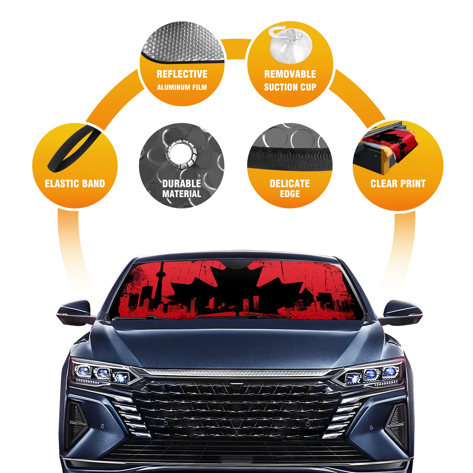 • Diameter /Size 63"L x 33.5"W Made from excellent materials which makes it sturdy and protects the car from the sun. Easy to use and pack. Makes the interior of the car cooler.You can easily stash the sunshade in the storage bag or store long term.It open and closes easy. Also the leather storage bag is durable and easy to put the umbrella back into.This windshield sunshade provides complete coverage and keeps your car interior cool under direct sun. It is easy to open and position under the windshield and around the rear-view mirror. Makes Your Car Easy To Identify, Perfect For Finding Your Car In Crowded Parking Lots And Garages.Great Choice: It Is A Great Gift For Dad, Boyfriend, Brother, Brother And Uncle, Friends, Classmates, Family And So On. Notice: Due To Difference Computer Monitors, The Color Maybe Slightly Different From Picture. As Different Measurement Methods, Measurement Data Will Float Within 2%.I Hope You Understand. If You Have Any Question About The Item Please Do Not Hesitate To Contact Us Immediately And We Will Give You A Satisfactory Reply Within 24 Hours.