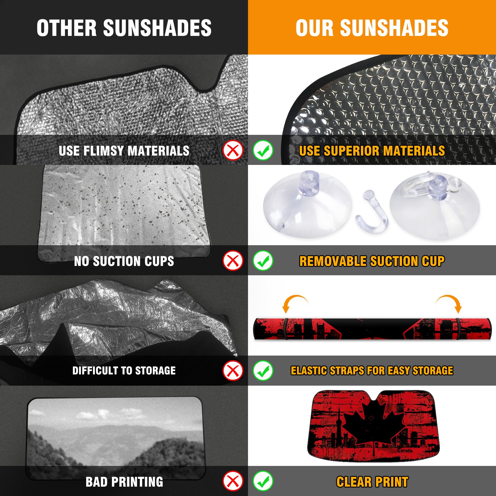• Diameter /Size 63"L x 33.5"W Made from excellent materials which makes it sturdy and protects the car from the sun. Easy to use and pack. Makes the interior of the car cooler.You can easily stash the sunshade in the storage bag or store long term.It open and closes easy. Also the leather storage bag is durable and easy to put the umbrella back into.This windshield sunshade provides complete coverage and keeps your car interior cool under direct sun. It is easy to open and position under the windshield and around the rear-view mirror. Makes Your Car Easy To Identify, Perfect For Finding Your Car In Crowded Parking Lots And Garages.Great Choice: It Is A Great Gift For Dad, Boyfriend, Brother, Brother And Uncle, Friends, Classmates, Family And So On. Notice: Due To Difference Computer Monitors, The Color Maybe Slightly Different From Picture. As Different Measurement Methods, Measurement Data Will Float Within 2%.I Hope You Understand. If You Have Any Question About The Item Please Do Not Hesitate To Contact Us Immediately And We Will Give You A Satisfactory Reply Within 24 Hours.