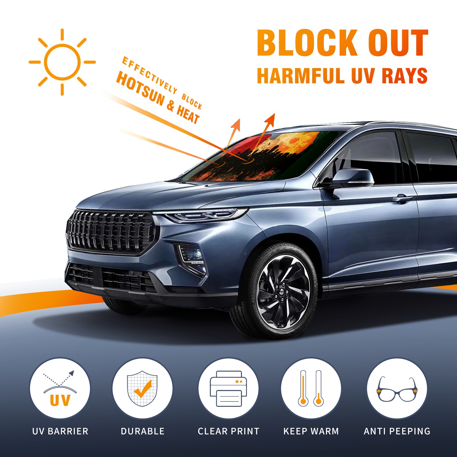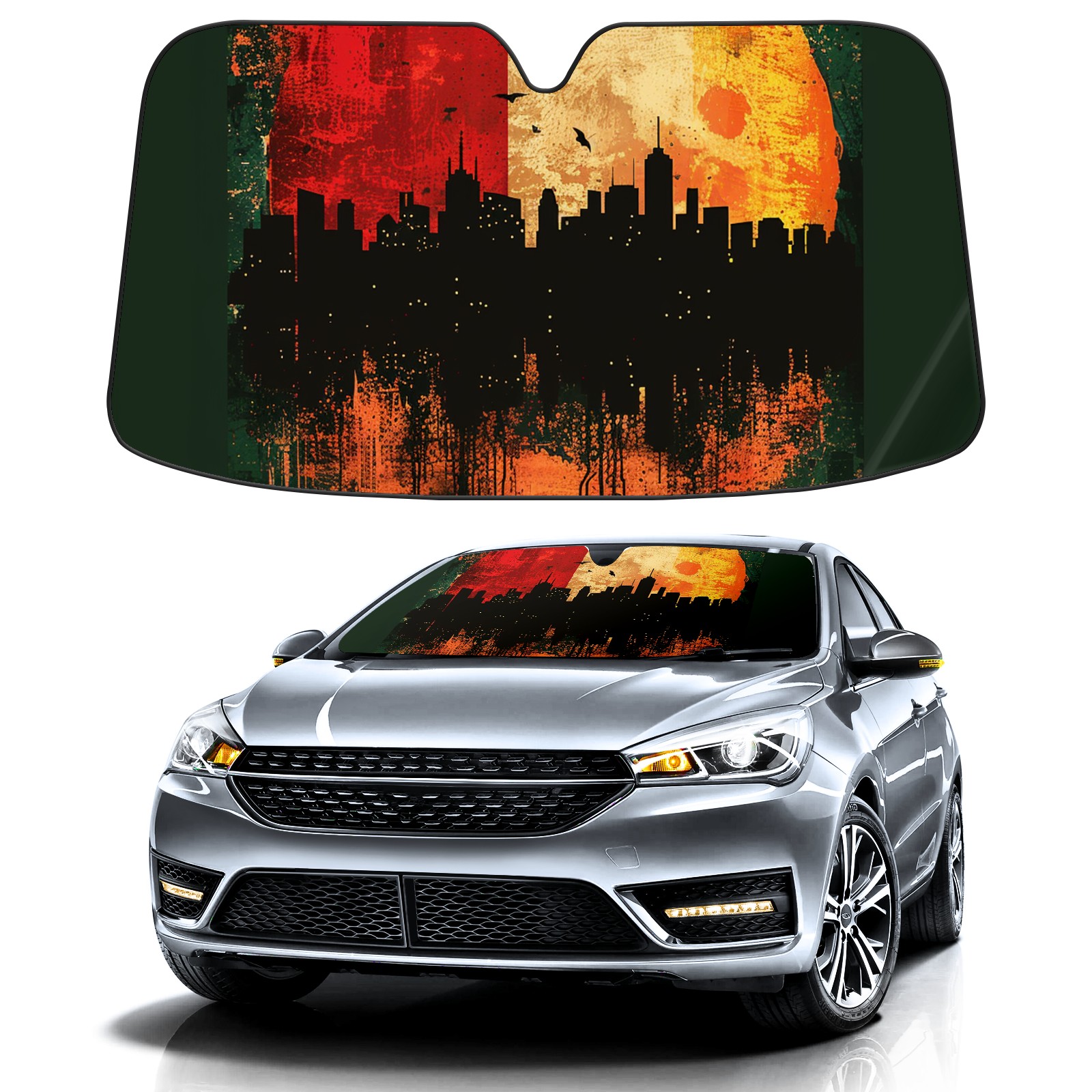 • Diameter /Size 63"L x 33.5"W Made from excellent materials which makes it sturdy and protects the car from the sun. Easy to use and pack. Makes the interior of the car cooler.You can easily stash the sunshade in the storage bag or store long term.It open and closes easy. Also the leather storage bag is durable and easy to put the umbrella back into.This windshield sunshade provides complete coverage and keeps your car interior cool under direct sun. It is easy to open and position under the windshield and around the rear-view mirror. Makes Your Car Easy To Identify, Perfect For Finding Your Car In Crowded Parking Lots And Garages.Great Choice: It Is A Great Gift For Dad, Boyfriend, Brother, Brother And Uncle, Friends, Classmates, Family And So On. Notice: Due To Difference Computer Monitors, The Color Maybe Slightly Different From Picture. As Different Measurement Methods, Measurement Data Will Float Within 2%.I Hope You Understand. If You Have Any Question About The Item Please Do Not Hesitate To Contact Us Immediately And We Will Give You A Satisfactory Reply Within 24 Hours.