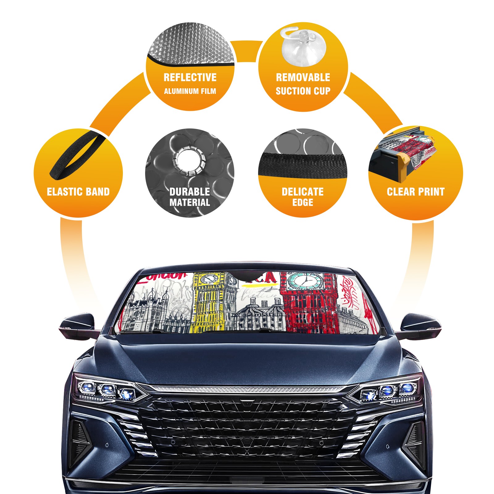 Car Windshield Sun Shade For Front Window London Landmarks (6) Foldable Vehicle Windshield Car Sun Visor Covers Automotive Window Protector Car Camping Privacy Sun Blocker