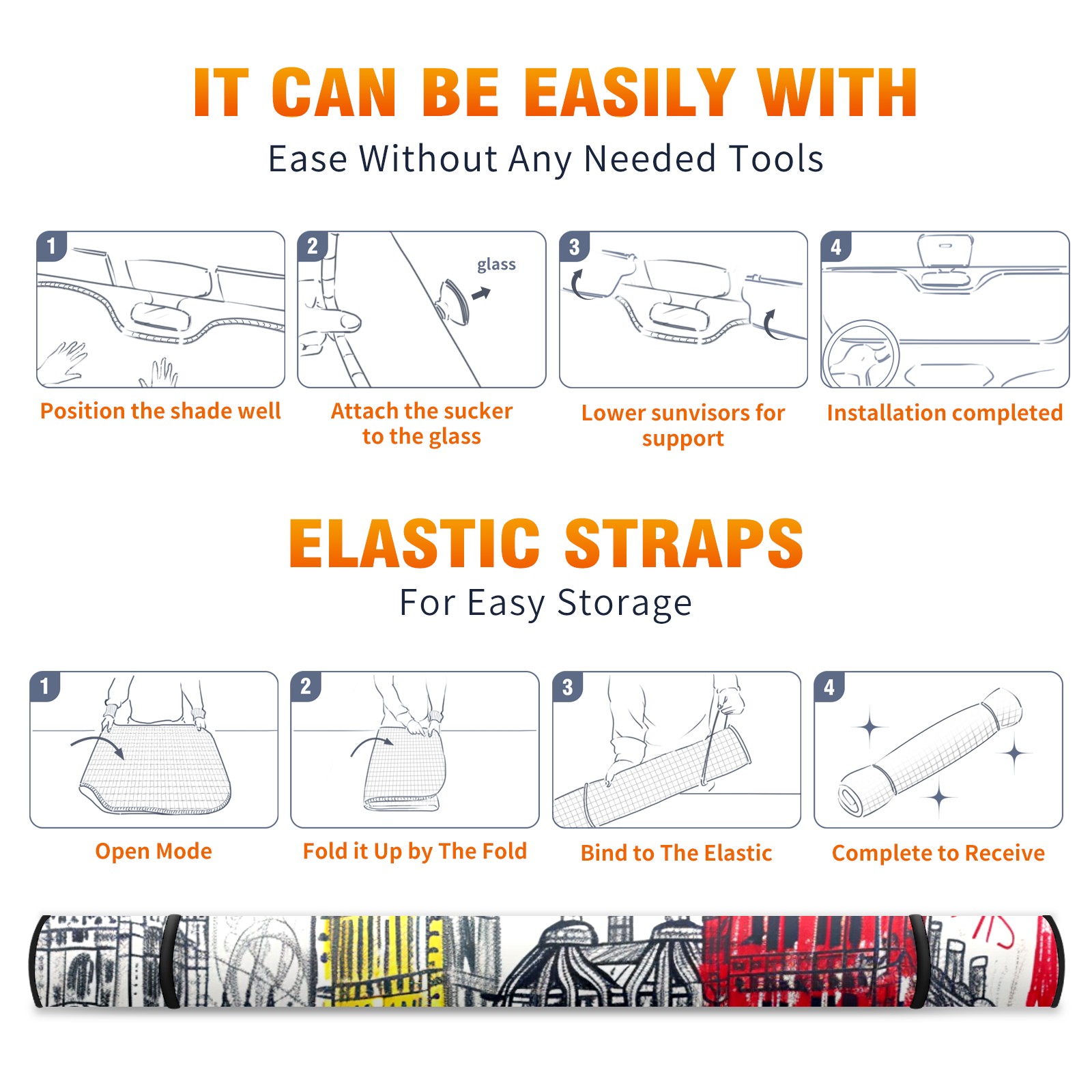 • Diameter /Size 63"L x 33.5"W Made from excellent materials which makes it sturdy and protects the car from the sun. Easy to use and pack. Makes the interior of the car cooler.You can easily stash the sunshade in the storage bag or store long term.It open and closes easy. Also the leather storage bag is durable and easy to put the umbrella back into.This windshield sunshade provides complete coverage and keeps your car interior cool under direct sun. It is easy to open and position under the windshield and around the rear-view mirror. Makes Your Car Easy To Identify, Perfect For Finding Your Car In Crowded Parking Lots And Garages.Great Choice: It Is A Great Gift For Dad, Boyfriend, Brother, Brother And Uncle, Friends, Classmates, Family And So On. Notice: Due To Difference Computer Monitors, The Color Maybe Slightly Different From Picture. As Different Measurement Methods, Measurement Data Will Float Within 2%.I Hope You Understand. If You Have Any Question About The Item Please Do Not Hesitate To Contact Us Immediately And We Will Give You A Satisfactory Reply Within 24 Hours.