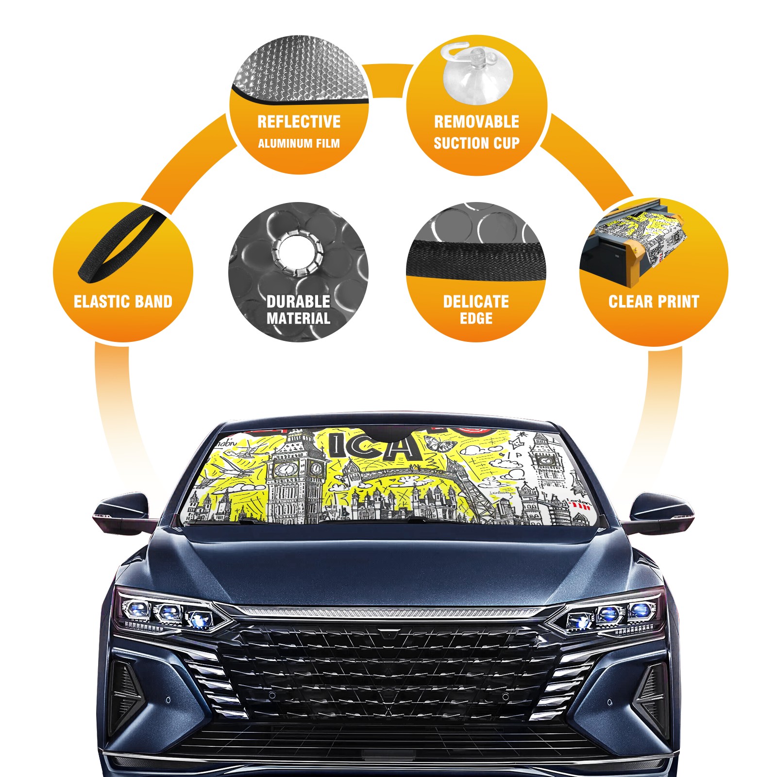 Car Windshield Sun Shade For Front Window London Landmarks (5) Foldable Vehicle Windshield Car Sun Visor Covers Automotive Window Protector Car Camping Privacy Sun Blocker