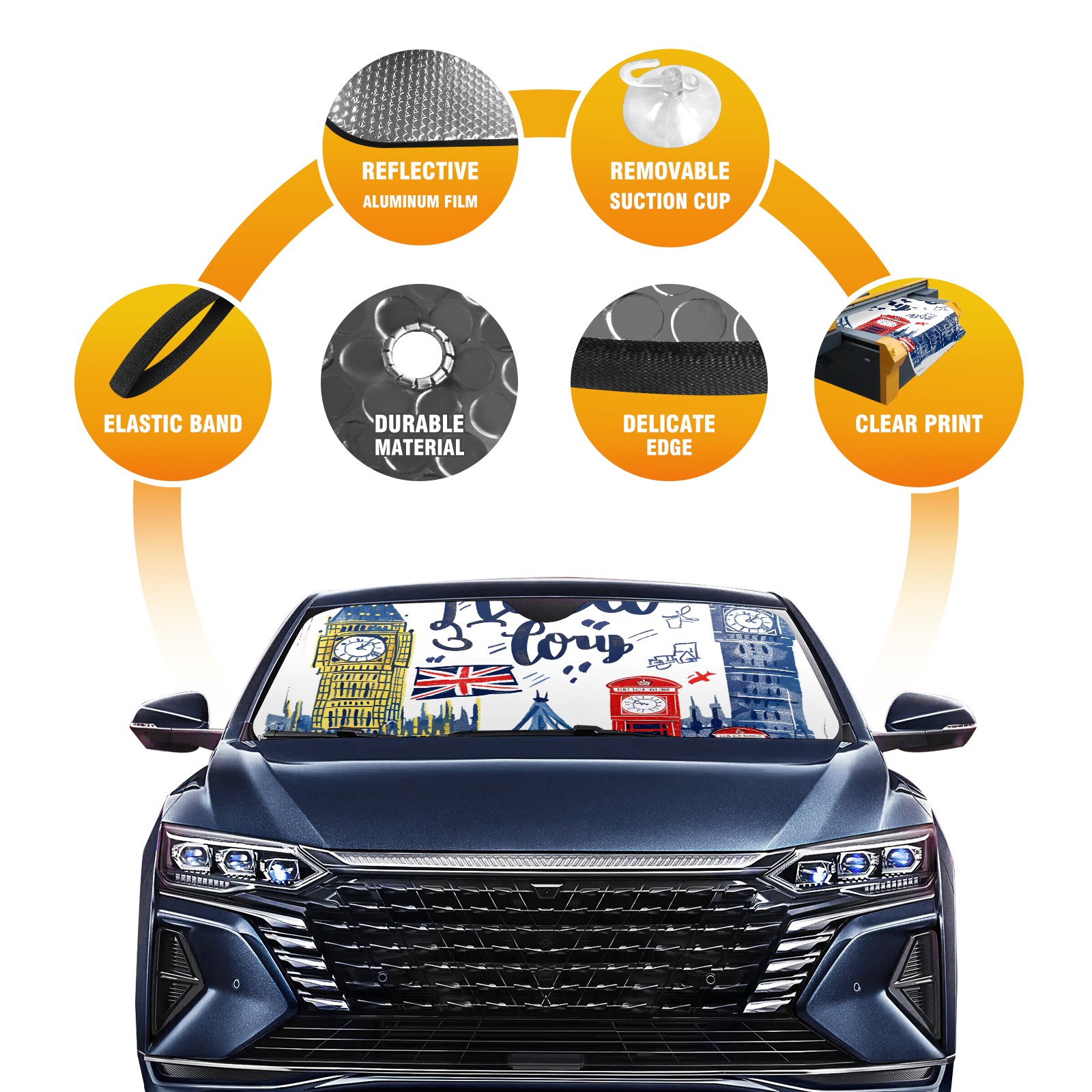 Car Windshield Sun Shade For Front Window London Landmarks (3) Foldable Vehicle Windshield Car Sun Visor Covers Automotive Window Protector Car Camping Privacy Sun Blocker