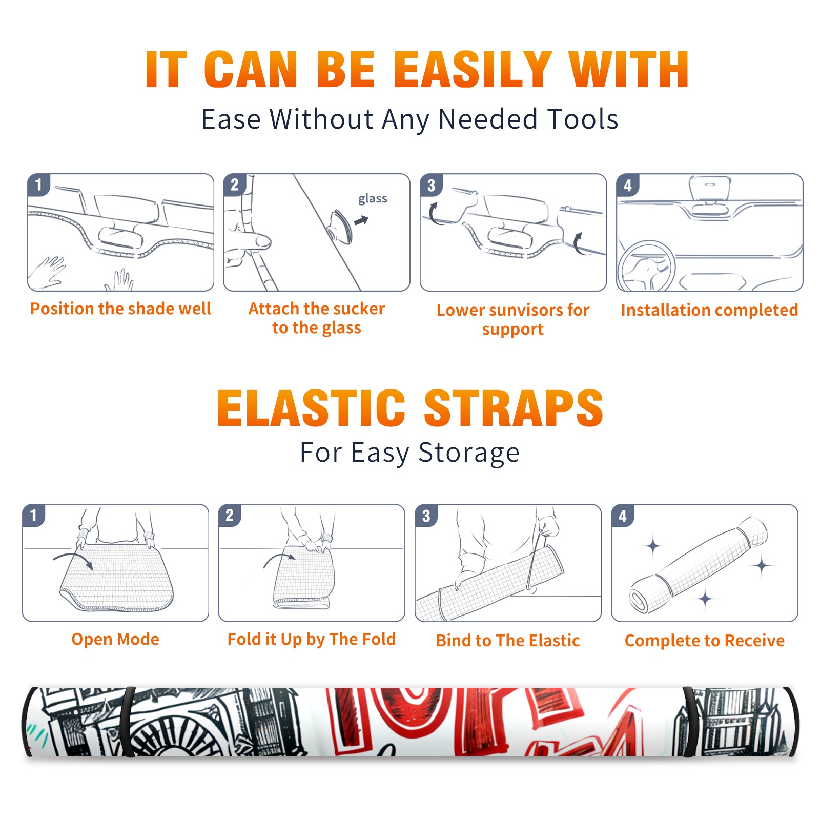 • Diameter /Size 63"L x 33.5"W Made from excellent materials which makes it sturdy and protects the car from the sun. Easy to use and pack. Makes the interior of the car cooler.You can easily stash the sunshade in the storage bag or store long term.It open and closes easy. Also the leather storage bag is durable and easy to put the umbrella back into.This windshield sunshade provides complete coverage and keeps your car interior cool under direct sun. It is easy to open and position under the windshield and around the rear-view mirror. Makes Your Car Easy To Identify, Perfect For Finding Your Car In Crowded Parking Lots And Garages.Great Choice: It Is A Great Gift For Dad, Boyfriend, Brother, Brother And Uncle, Friends, Classmates, Family And So On. Notice: Due To Difference Computer Monitors, The Color Maybe Slightly Different From Picture. As Different Measurement Methods, Measurement Data Will Float Within 2%.I Hope You Understand. If You Have Any Question About The Item Please Do Not Hesitate To Contact Us Immediately And We Will Give You A Satisfactory Reply Within 24 Hours.
