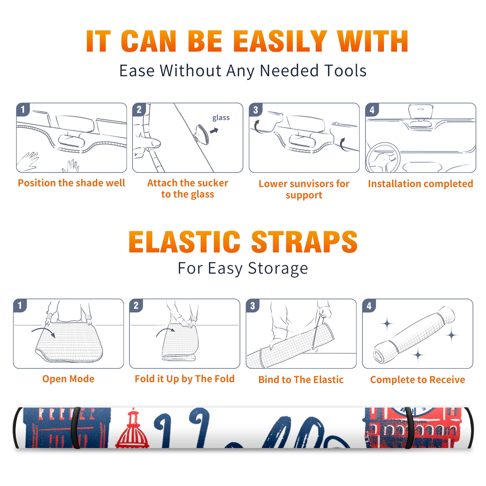• Diameter /Size 63"L x 33.5"W Made from excellent materials which makes it sturdy and protects the car from the sun. Easy to use and pack. Makes the interior of the car cooler.You can easily stash the sunshade in the storage bag or store long term.It open and closes easy. Also the leather storage bag is durable and easy to put the umbrella back into.This windshield sunshade provides complete coverage and keeps your car interior cool under direct sun. It is easy to open and position under the windshield and around the rear-view mirror. Makes Your Car Easy To Identify, Perfect For Finding Your Car In Crowded Parking Lots And Garages.Great Choice: It Is A Great Gift For Dad, Boyfriend, Brother, Brother And Uncle, Friends, Classmates, Family And So On. Notice: Due To Difference Computer Monitors, The Color Maybe Slightly Different From Picture. As Different Measurement Methods, Measurement Data Will Float Within 2%.I Hope You Understand. If You Have Any Question About The Item Please Do Not Hesitate To Contact Us Immediately And We Will Give You A Satisfactory Reply Within 24 Hours.