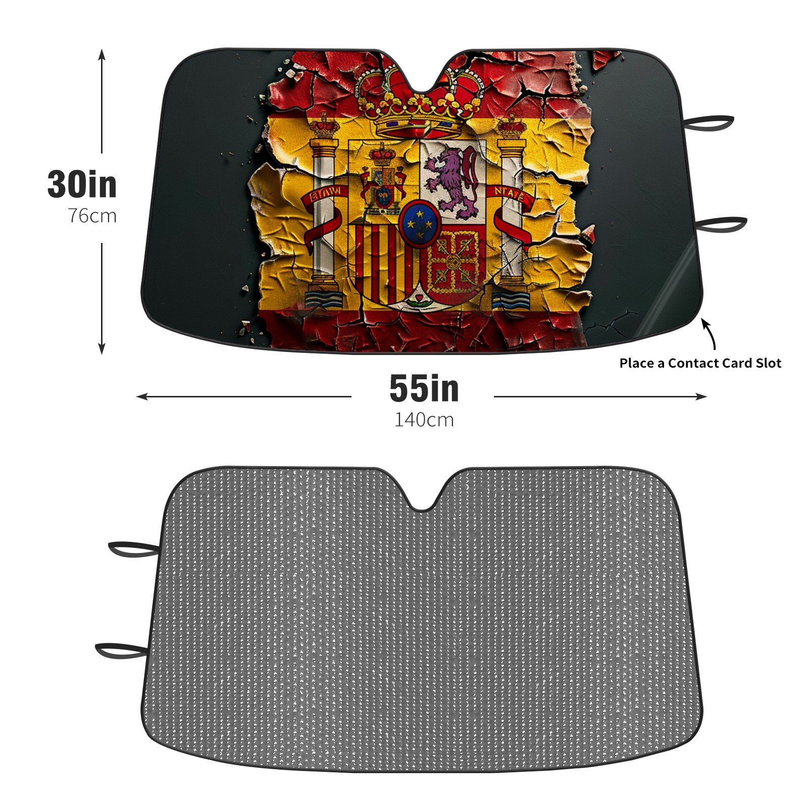 Diameter /Size 63"L x 33.5"W Made from excellent materials which makes it sturdy and protects the car from the sun. Easy to use and pack. Makes the interior of the car cooler.You can easily stash the sunshade in the storage bag or store long term.It open and closes easy. Also the leather storage bag is durable and easy to put the umbrella back into.This windshield sunshade provides complete coverage and keeps your car interior cool under direct sun. It is easy to open and position under the windshield and around the rear-view mirror. Makes Your Car Easy To Identify, Perfect For Finding Your Car In Crowded Parking Lots And Garages.Great Choice: It Is A Great Gift For Dad, Boyfriend, Brother, Brother And Uncle, Friends, Classmates, Family And So On. Notice: Due To Difference Computer Monitors, The Color Maybe Slightly Different From Picture. As Different Measurement Methods, Measurement Data Will Float Within 2%.I Hope You Understand. If You Have Any Question About The Item Please Do Not Hesitate To Contact Us Immediately And We Will Give You A Satisfactory Reply Within 24 Hours.