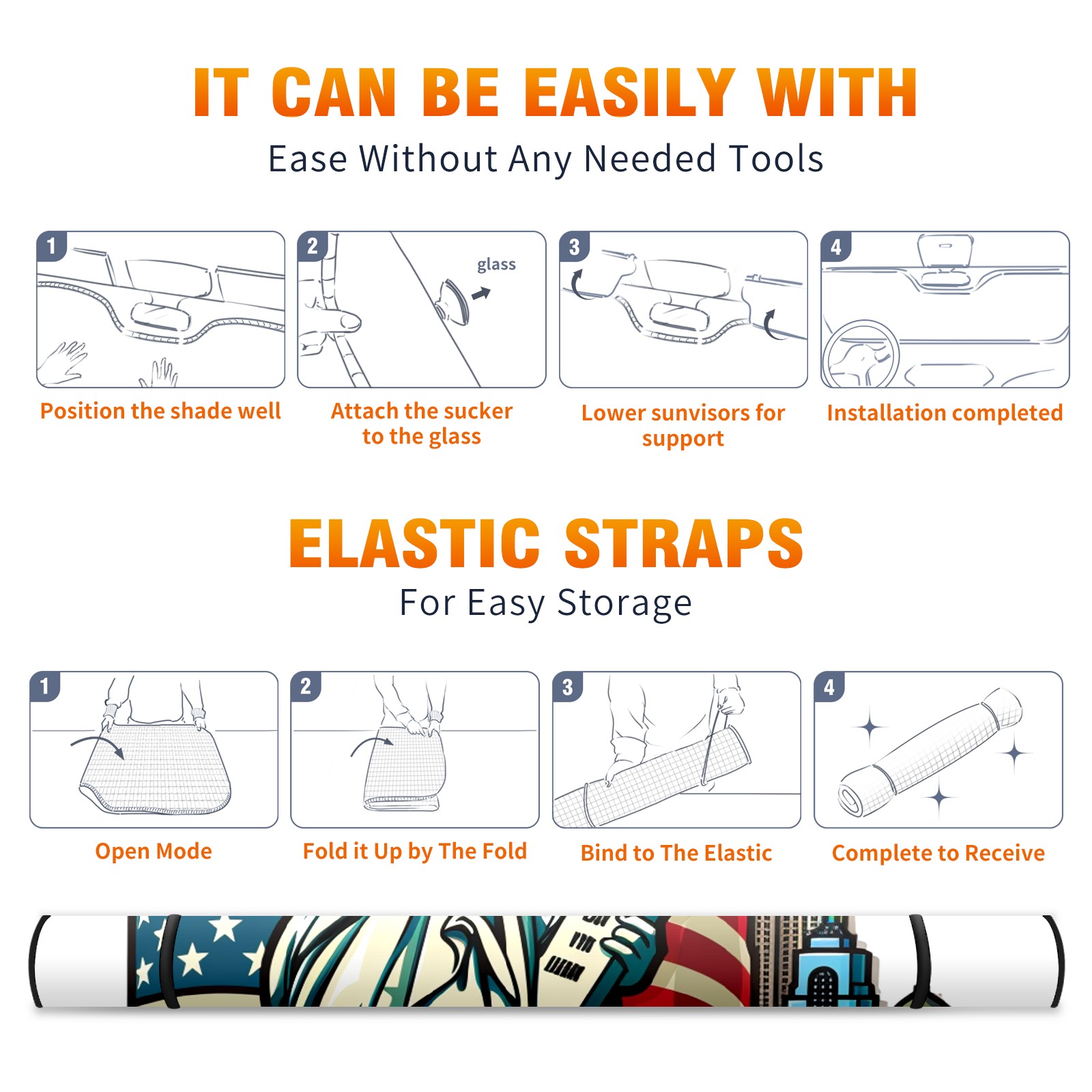 Car Windshield Sun Shade For Front Window Flag (8) Foldable Vehicle Windshield Car Sun Visor Covers Automotive Window Protector Car Camping Privacy Sun Blocker