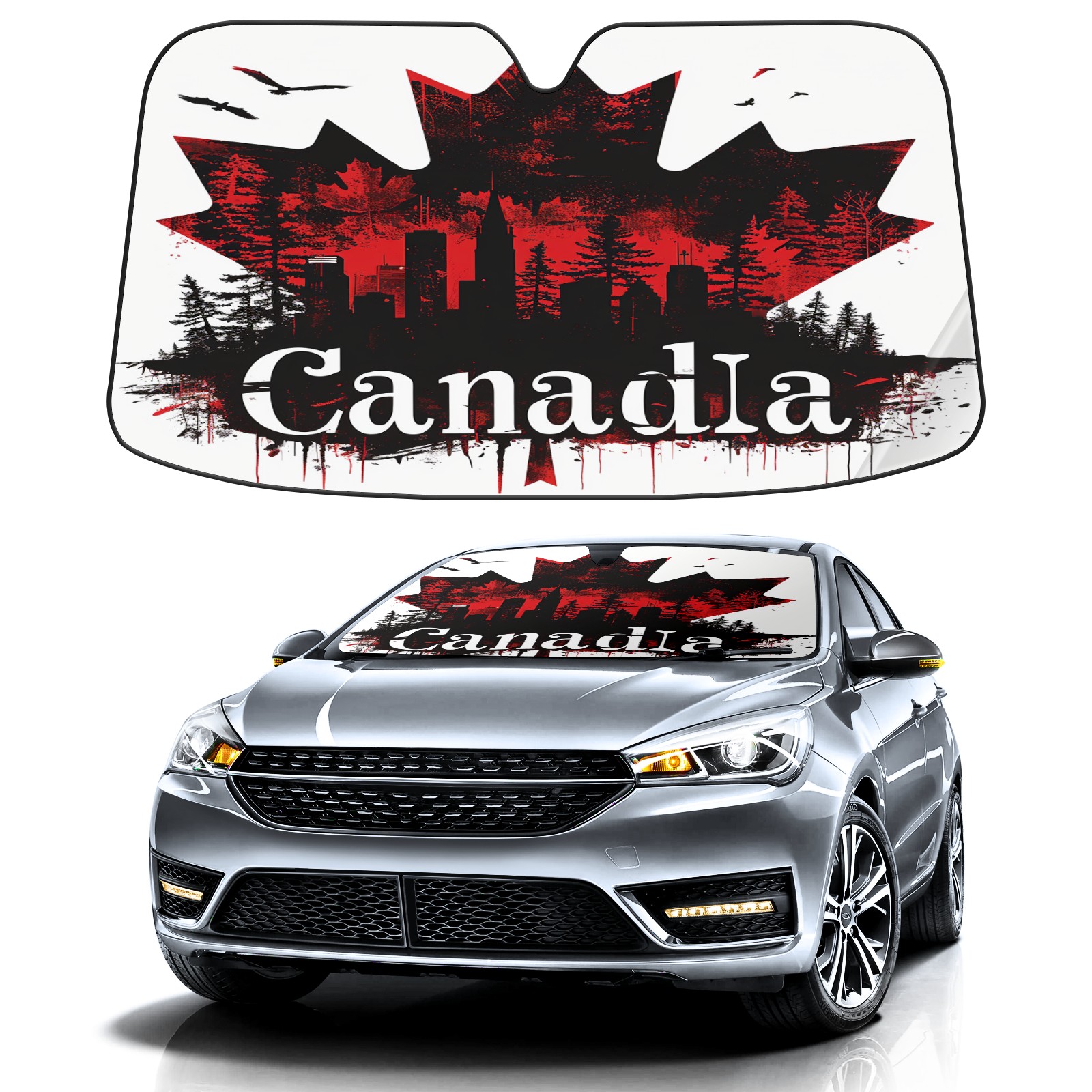 Diameter /Size 63"L x 33.5"W Made from excellent materials which makes it sturdy and protects the car from the sun. Easy to use and pack. Makes the interior of the car cooler.You can easily stash the sunshade in the storage bag or store long term.It open and closes easy. Also the leather storage bag is durable and easy to put the umbrella back into.This windshield sunshade provides complete coverage and keeps your car interior cool under direct sun. It is easy to open and position under the windshield and around the rear-view mirror. Makes Your Car Easy To Identify, Perfect For Finding Your Car In Crowded Parking Lots And Garages.Great Choice: It Is A Great Gift For Dad, Boyfriend, Brother, Brother And Uncle, Friends, Classmates, Family And So On. Notice: Due To Difference Computer Monitors, The Color Maybe Slightly Different From Picture. As Different Measurement Methods, Measurement Data Will Float Within 2%.I Hope You Understand. If You Have Any Question About The Item Please Do Not Hesitate To Contact Us Immediately And We Will Give You A Satisfactory Reply Within 24 Hours.