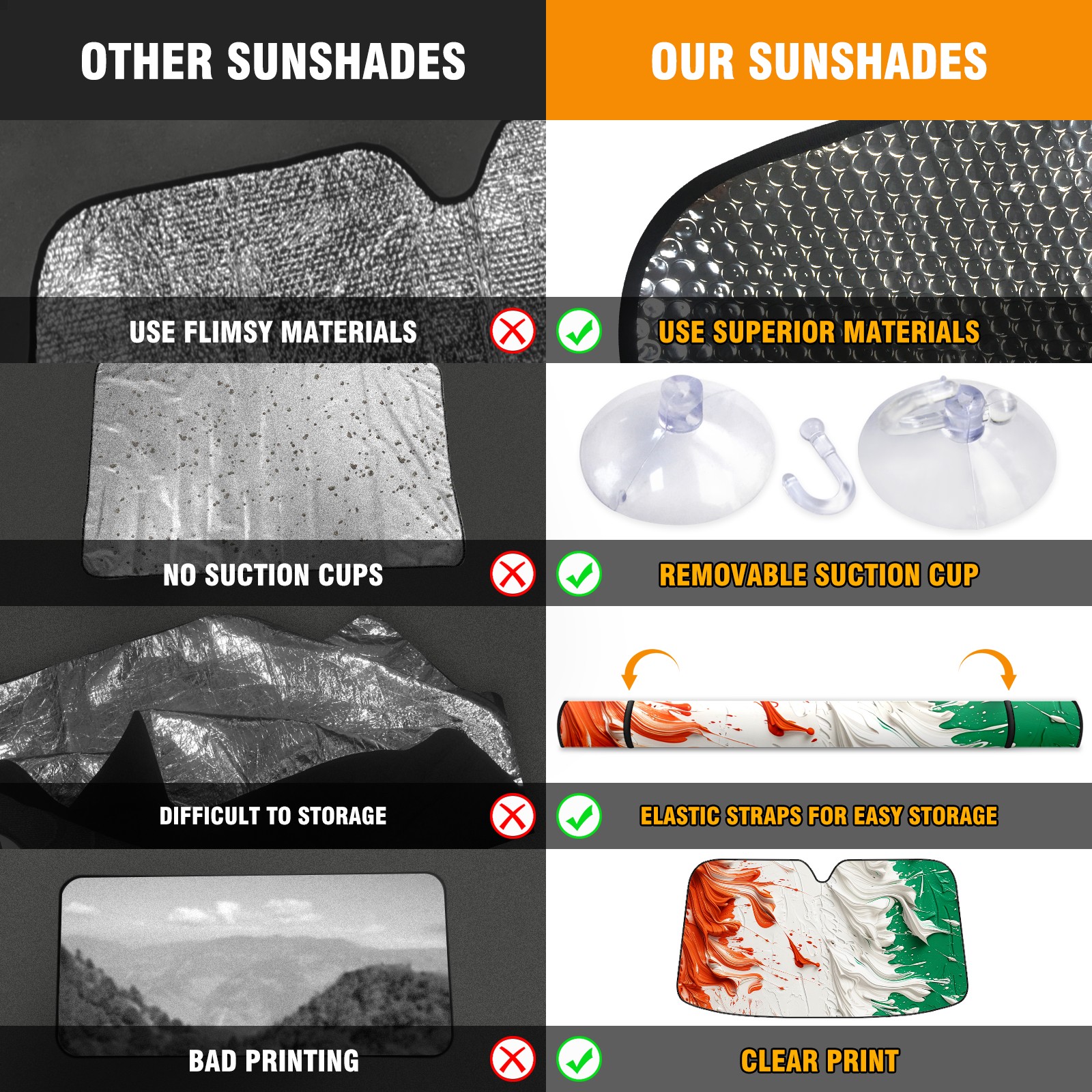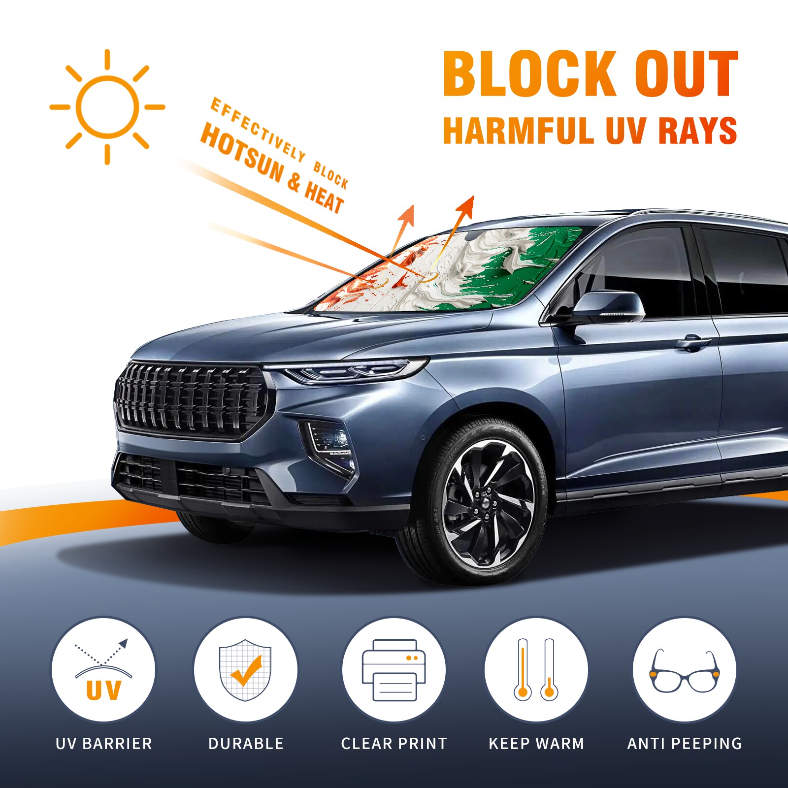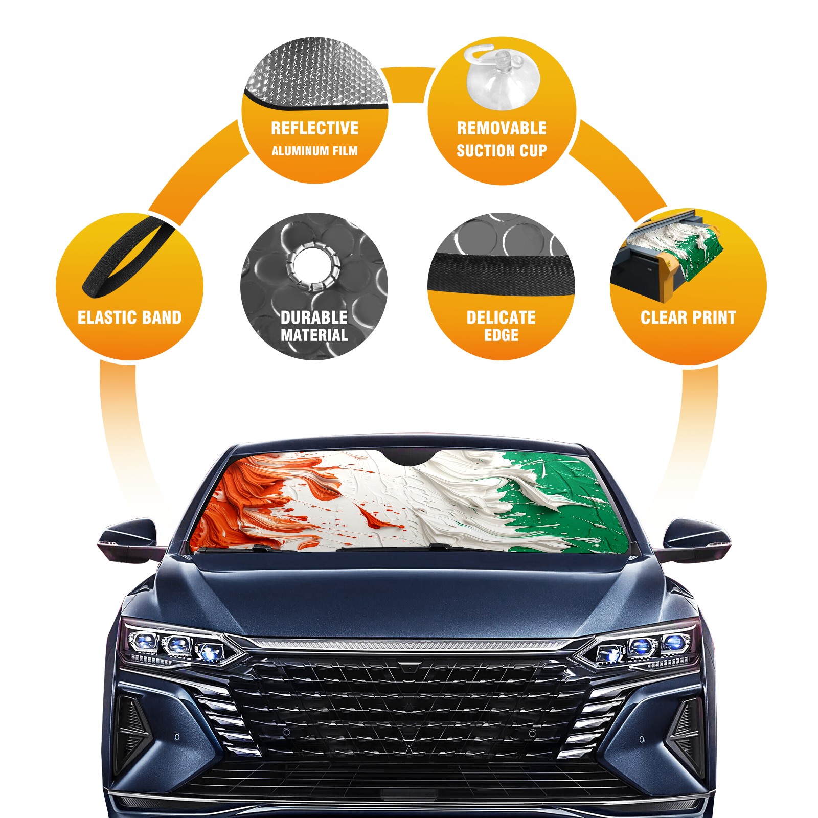 Car Windshield Sun Shade For Front Window Flag (4) Foldable Vehicle Windshield Car Sun Visor Covers Automotive Window Protector Car Camping Privacy Sun Blocker