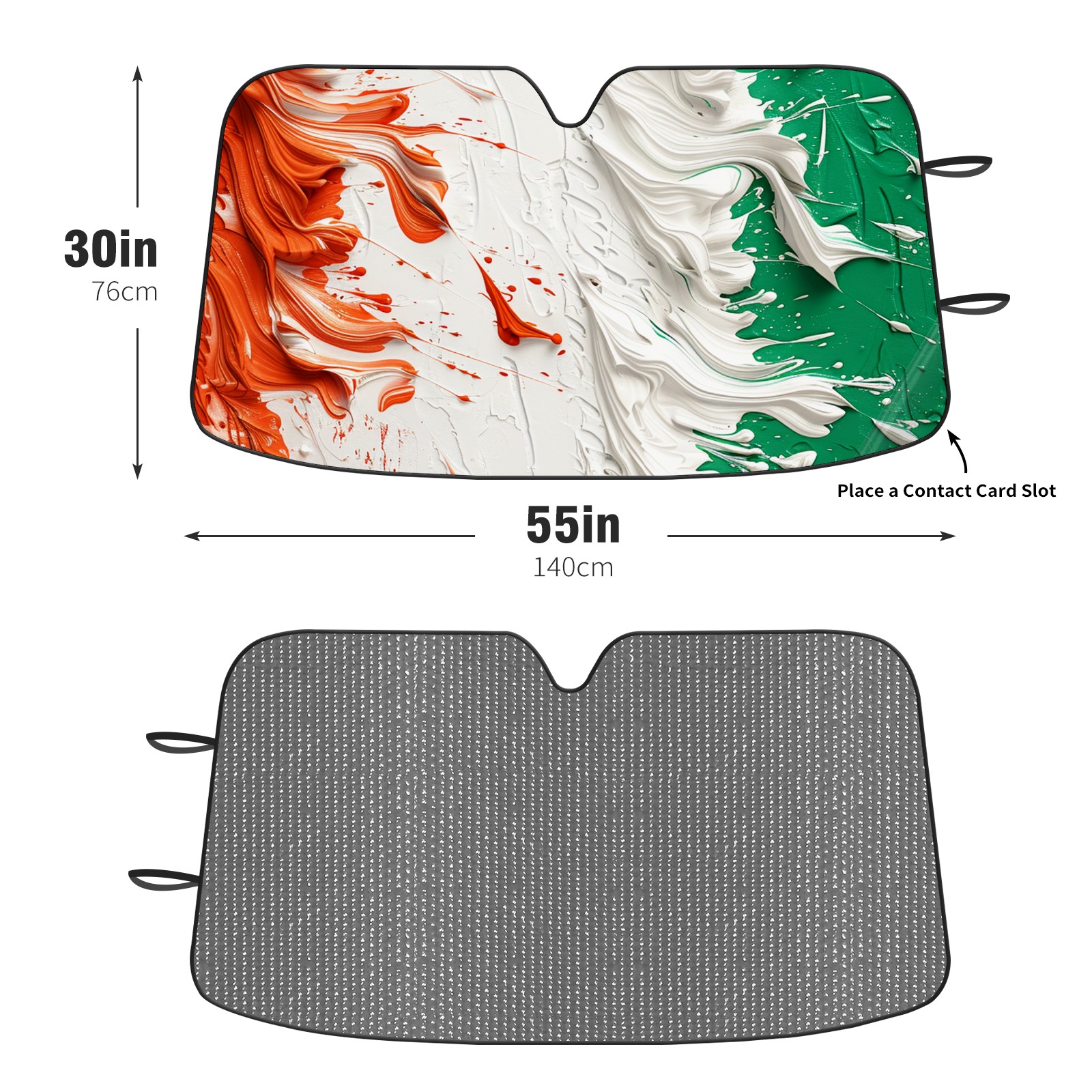 Diameter /Size 63"L x 33.5"W Made from excellent materials which makes it sturdy and protects the car from the sun. Easy to use and pack. Makes the interior of the car cooler.You can easily stash the sunshade in the storage bag or store long term.It open and closes easy. Also the leather storage bag is durable and easy to put the umbrella back into.This windshield sunshade provides complete coverage and keeps your car interior cool under direct sun. It is easy to open and position under the windshield and around the rear-view mirror. Makes Your Car Easy To Identify, Perfect For Finding Your Car In Crowded Parking Lots And Garages.Great Choice: It Is A Great Gift For Dad, Boyfriend, Brother, Brother And Uncle, Friends, Classmates, Family And So On. Notice: Due To Difference Computer Monitors, The Color Maybe Slightly Different From Picture. As Different Measurement Methods, Measurement Data Will Float Within 2%.I Hope You Understand. If You Have Any Question About The Item Please Do Not Hesitate To Contact Us Immediately And We Will Give You A Satisfactory Reply Within 24 Hours.