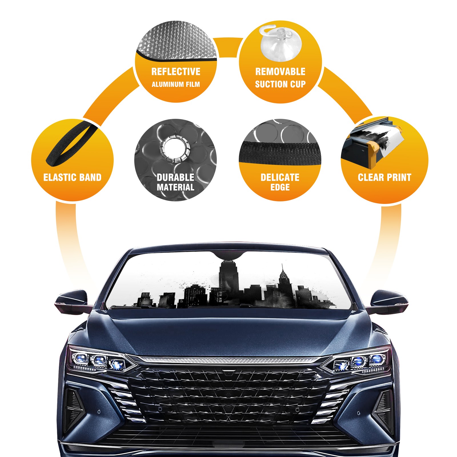 Car Windshield Sun Shade For Front Window Watercolor Drawing New York (3) Foldable Vehicle Windshield Car Sun Visor Covers Automotive Window Protector Car Camping Privacy Sun Blocker